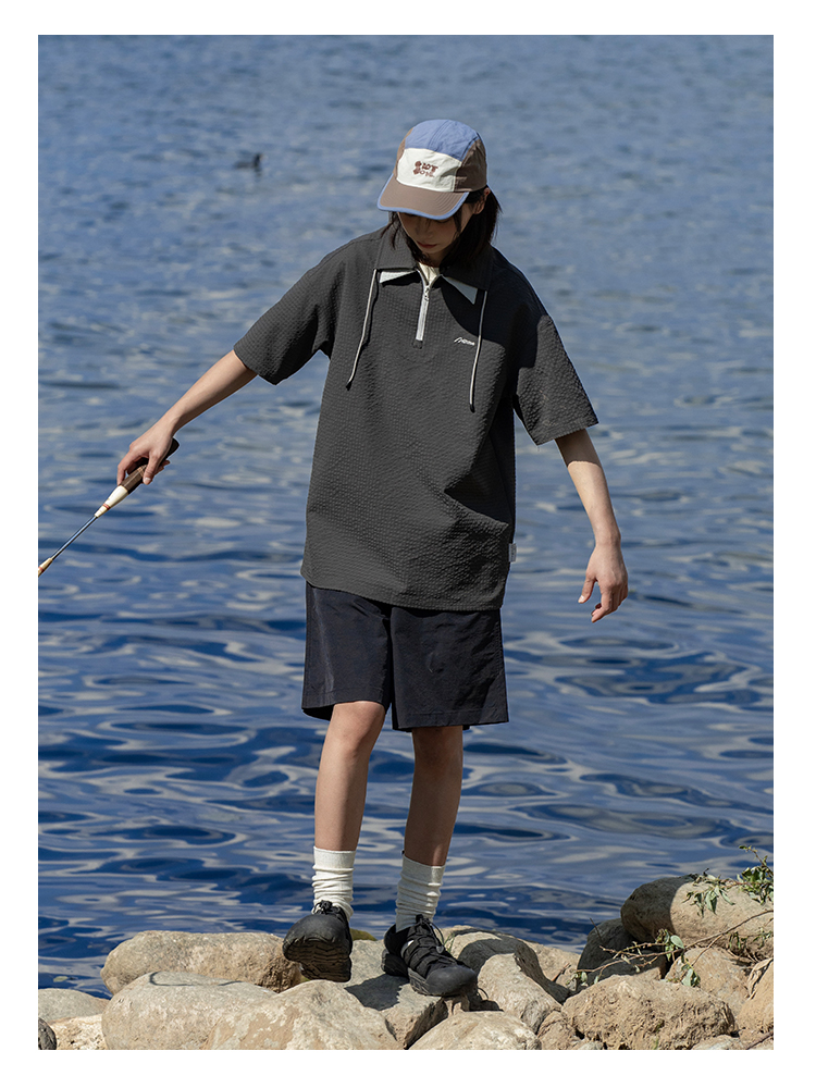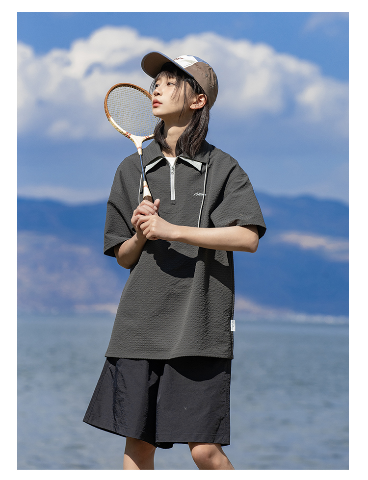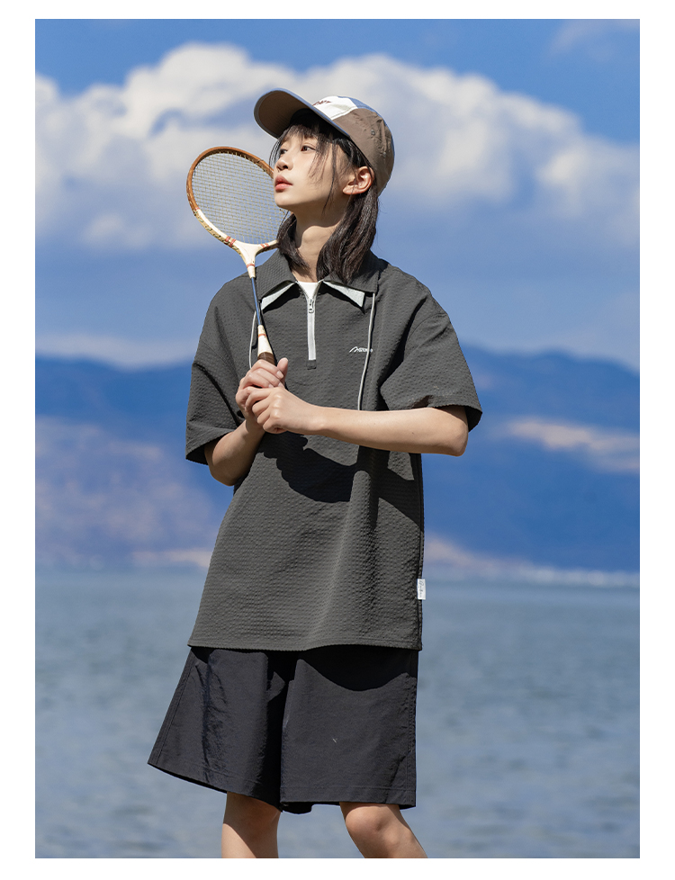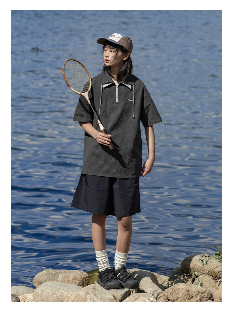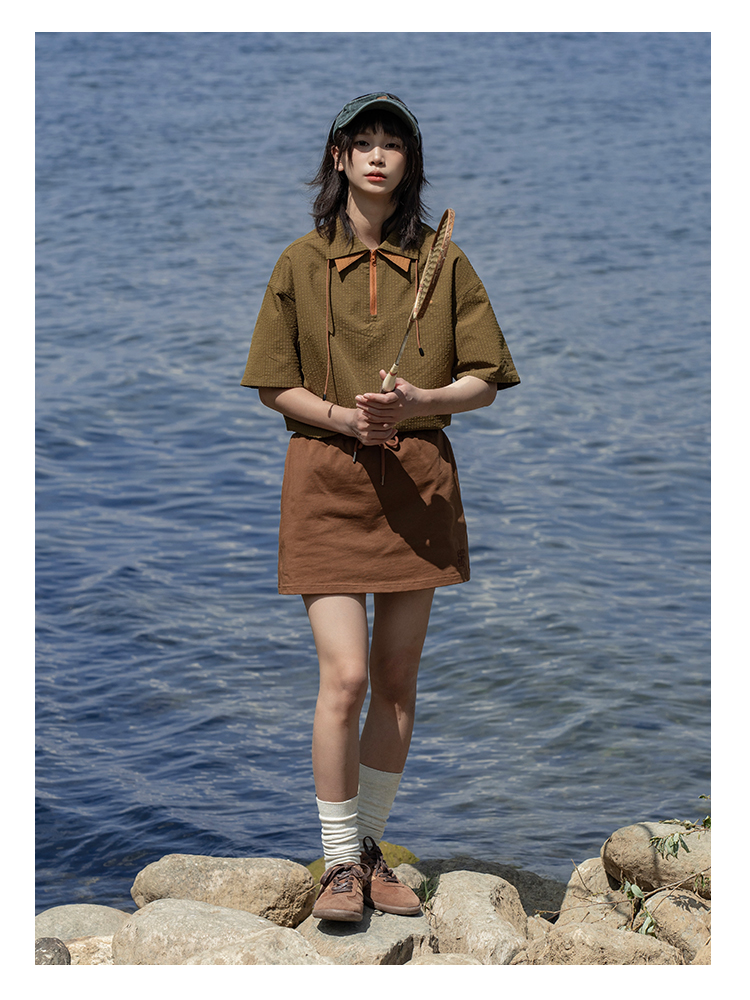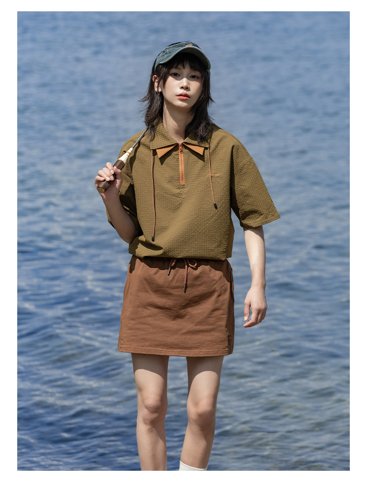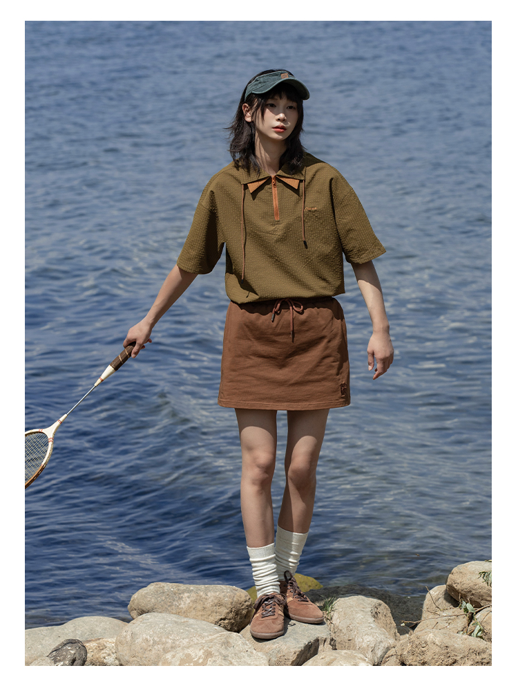 早乙女惠子saotome/STMPL242074/撞色立体绣花双层领polo短袖T恤