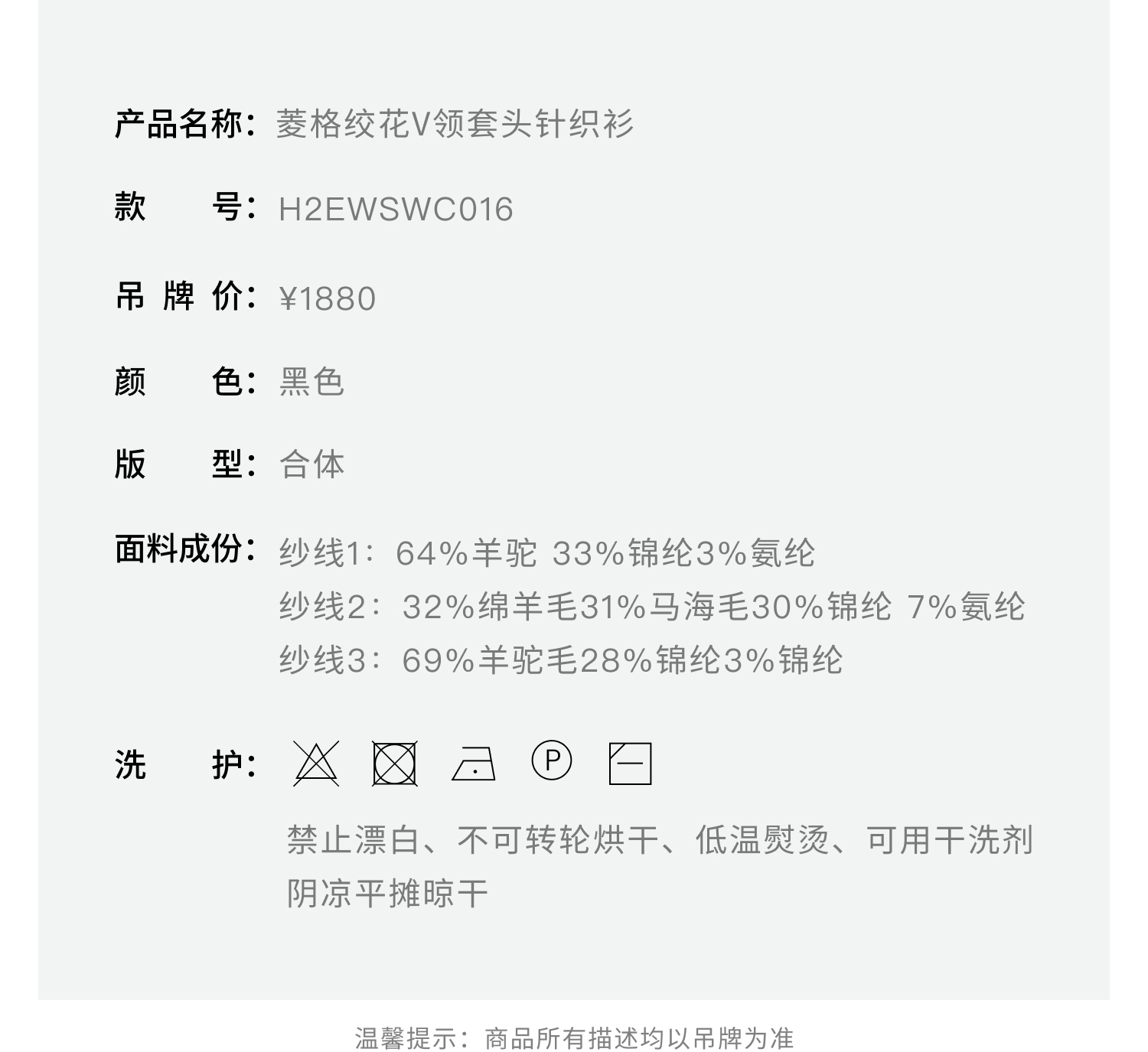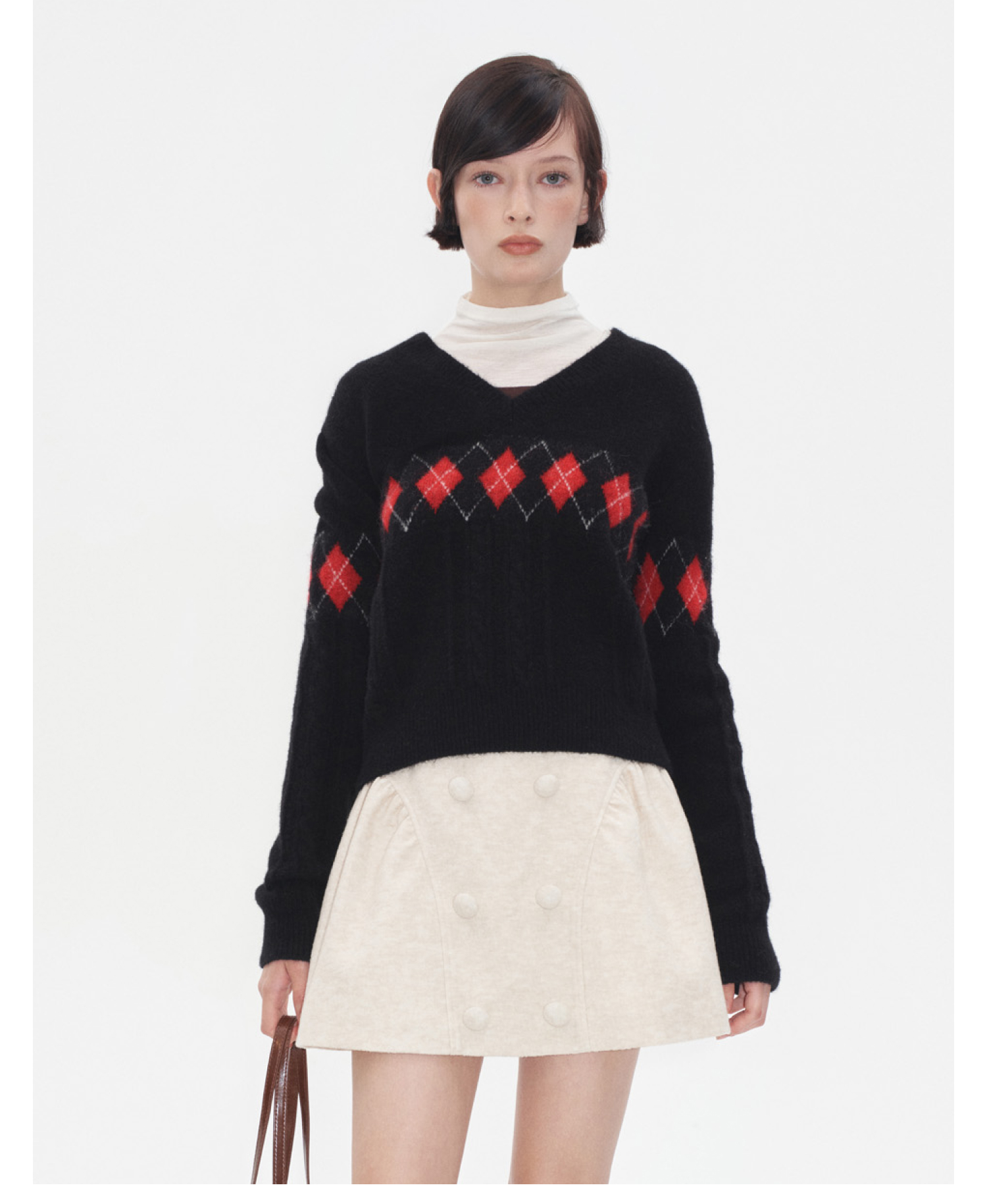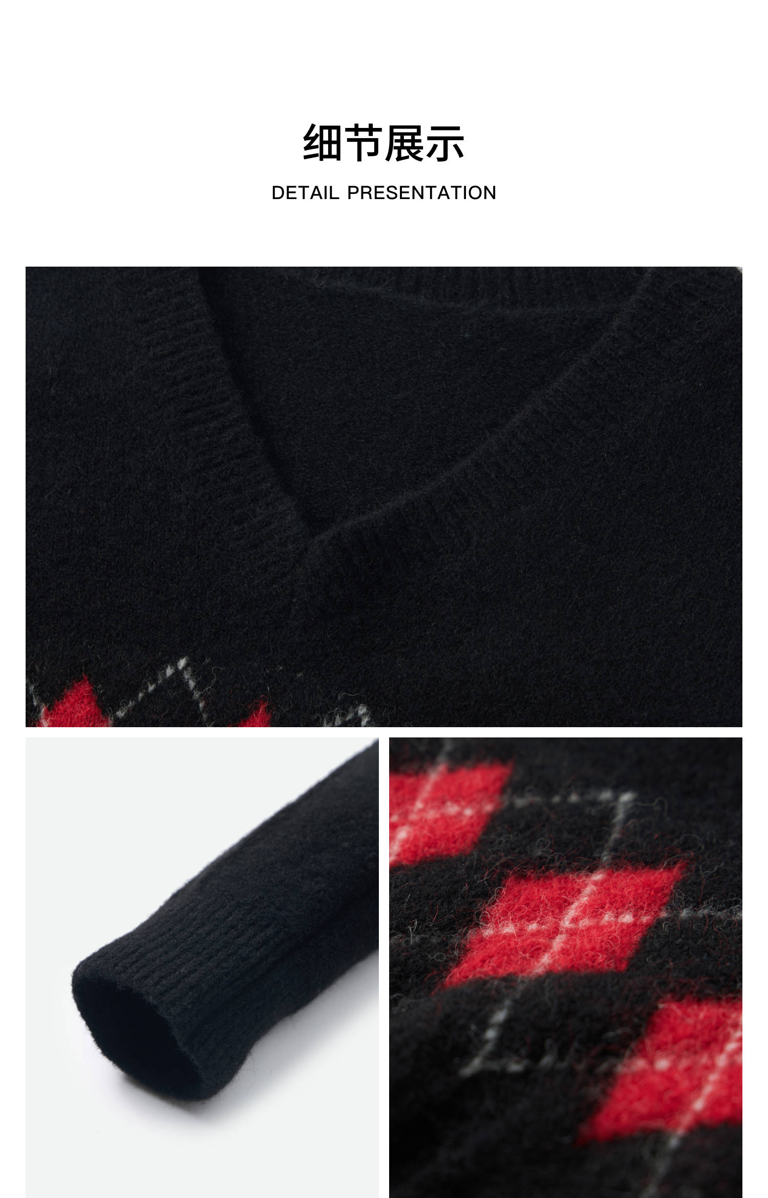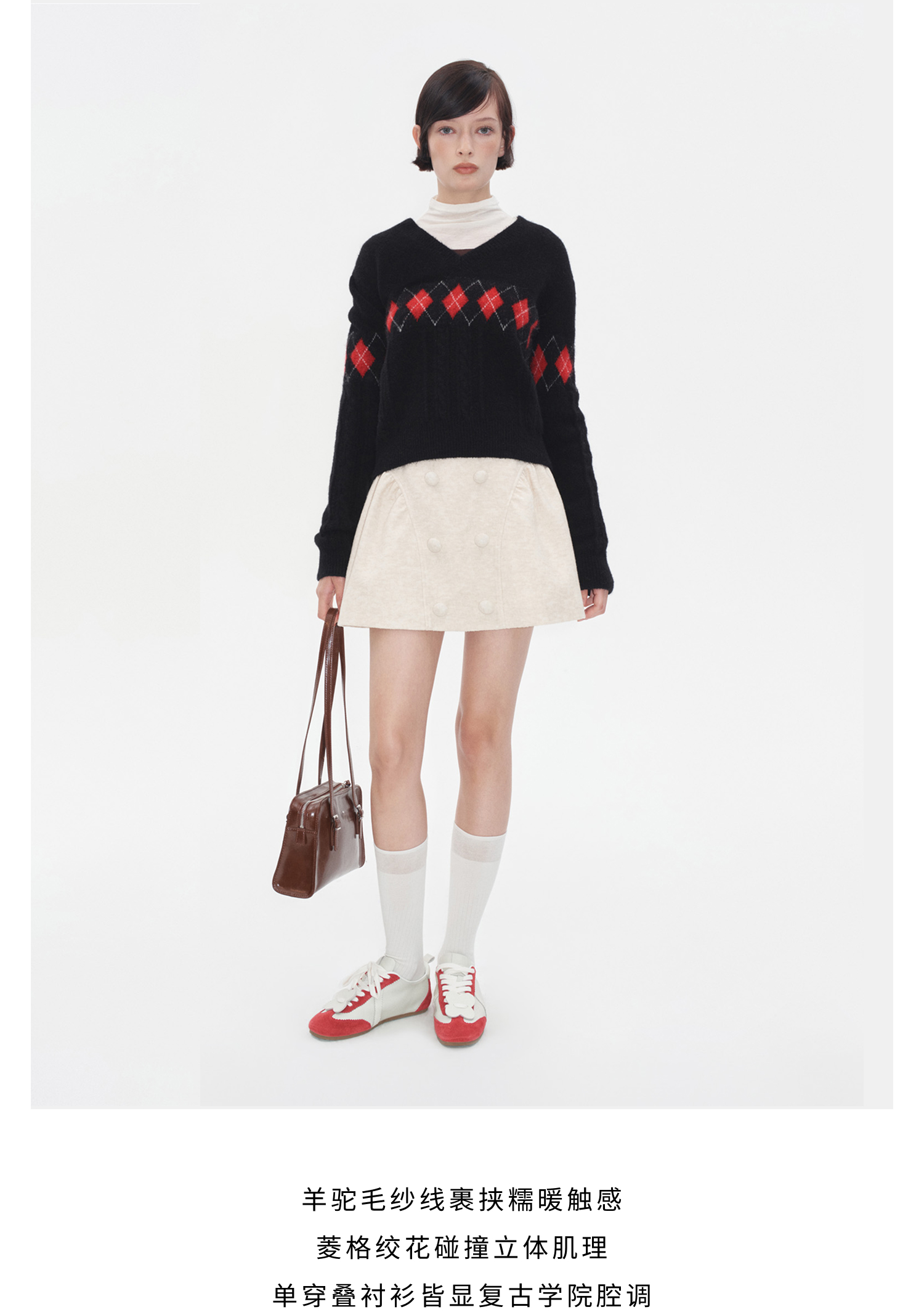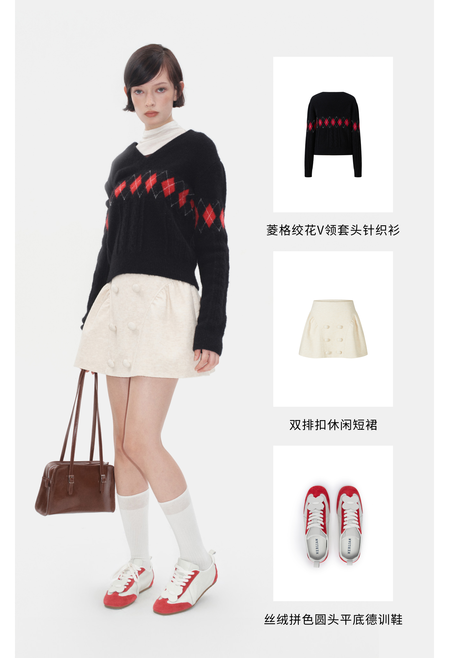 HERLIAN 2025秋冬新品菱格绞花V领套头衫
