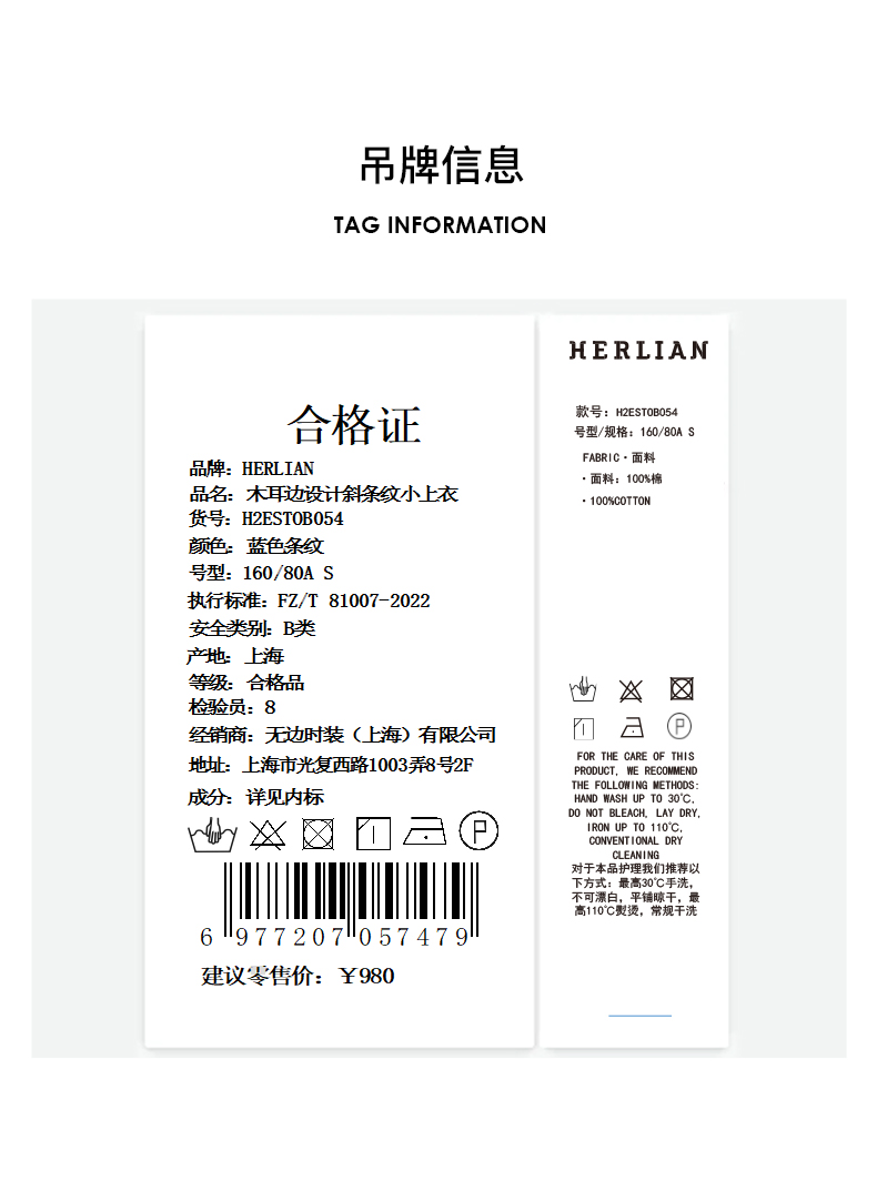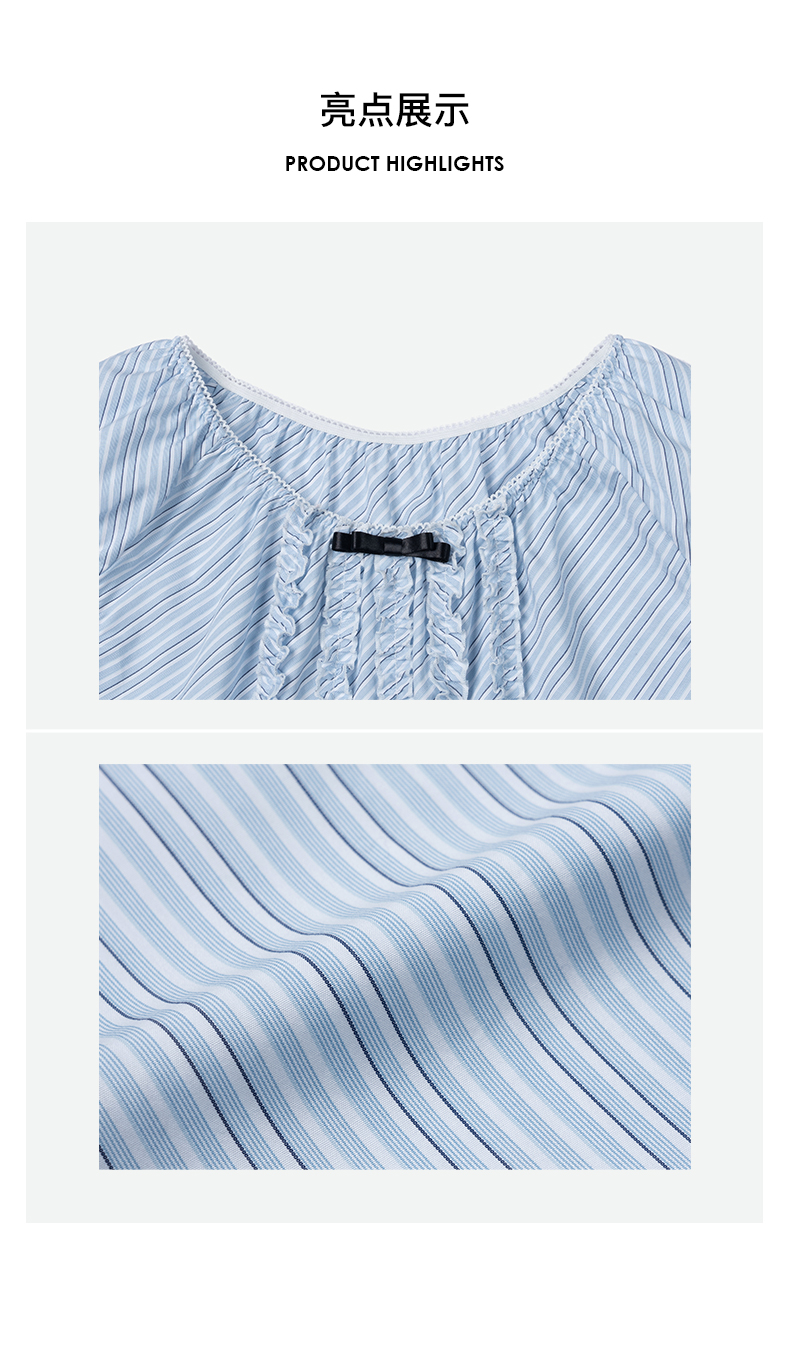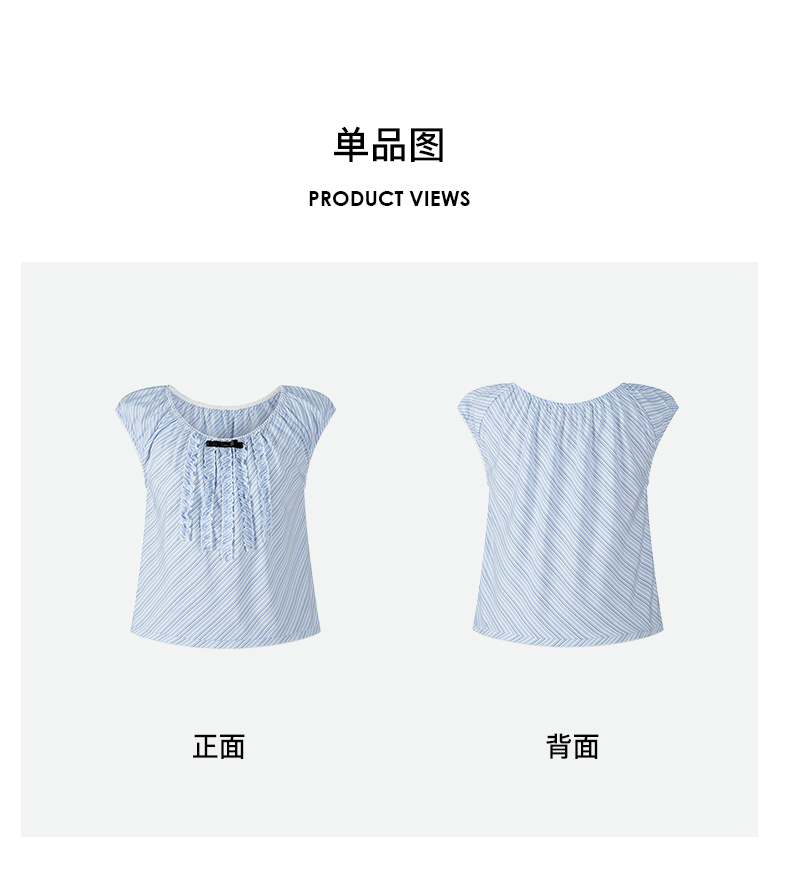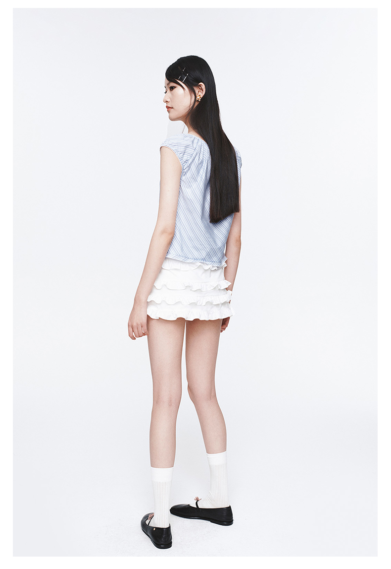 HERLIAN 2025夏季新品女士木耳边设计斜条纹小上衣