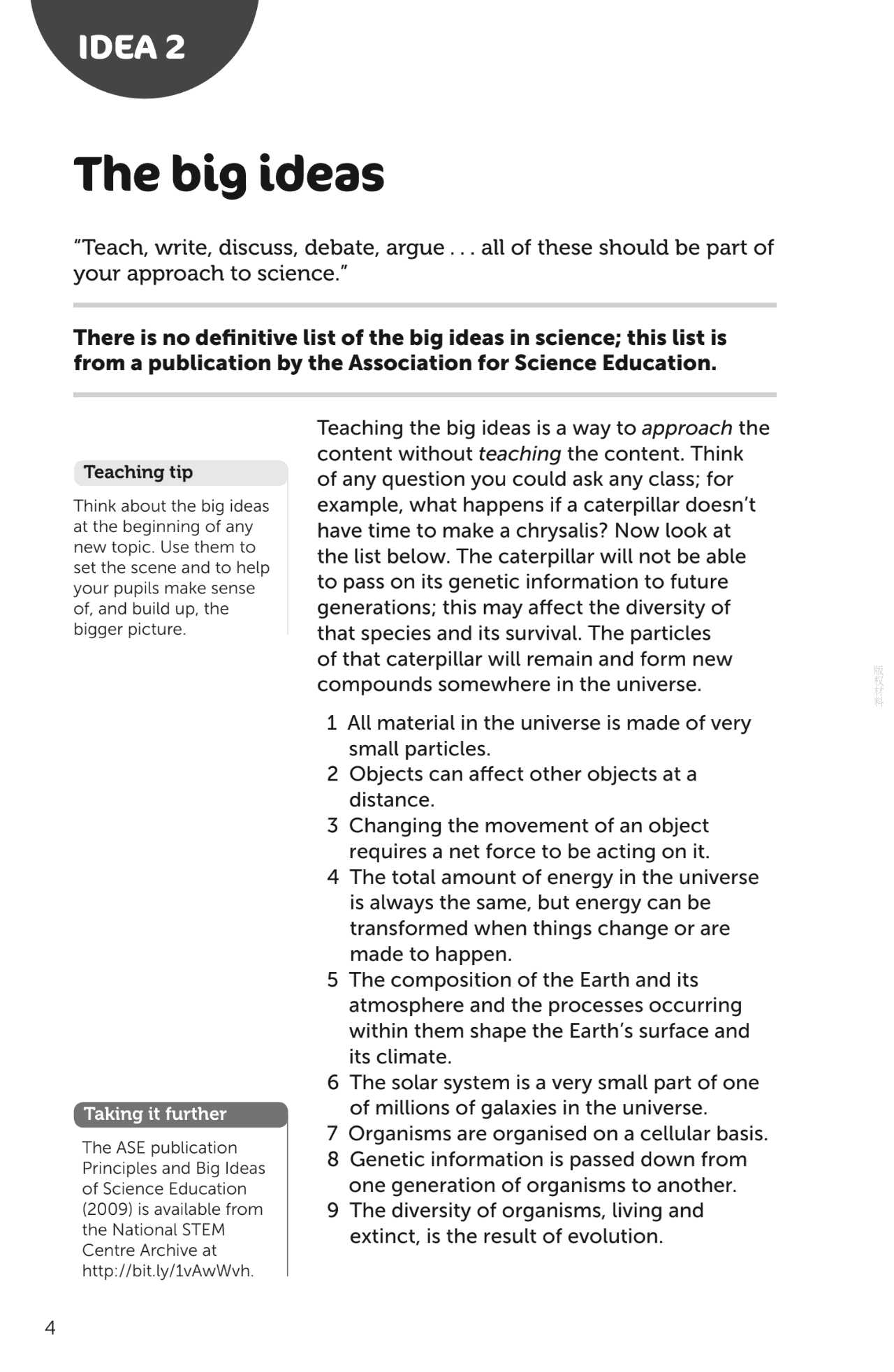 本书在2016年ERA奖项中获得中学非ICT资源奖,是100个想法系列中的一本,为中学科学教师提供实用的想法和活动以便在他们的课程中使用,并提供教学和计划策略帮助他们每天的课堂实践变得优秀。