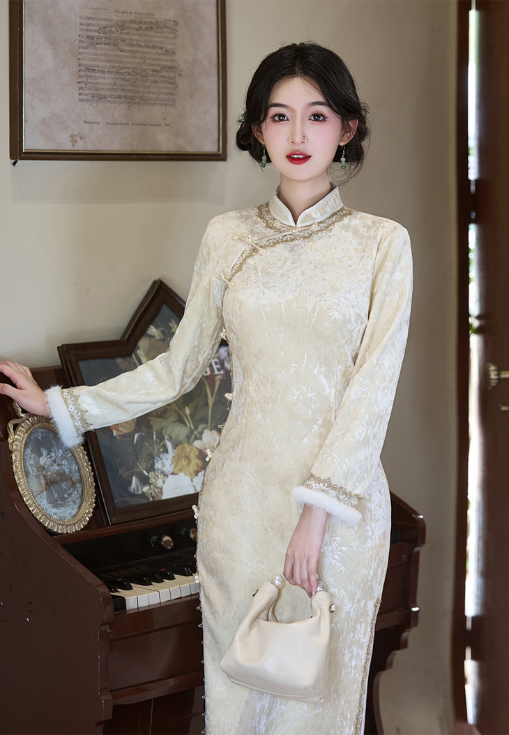 【预售5天】订婚新中式敬酒服新娘小个子结婚礼服裙长袖绝美冬季日常旗袍LSB4106 商品图2