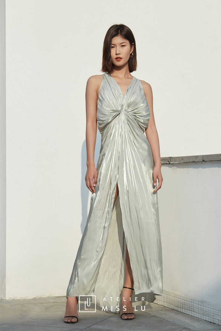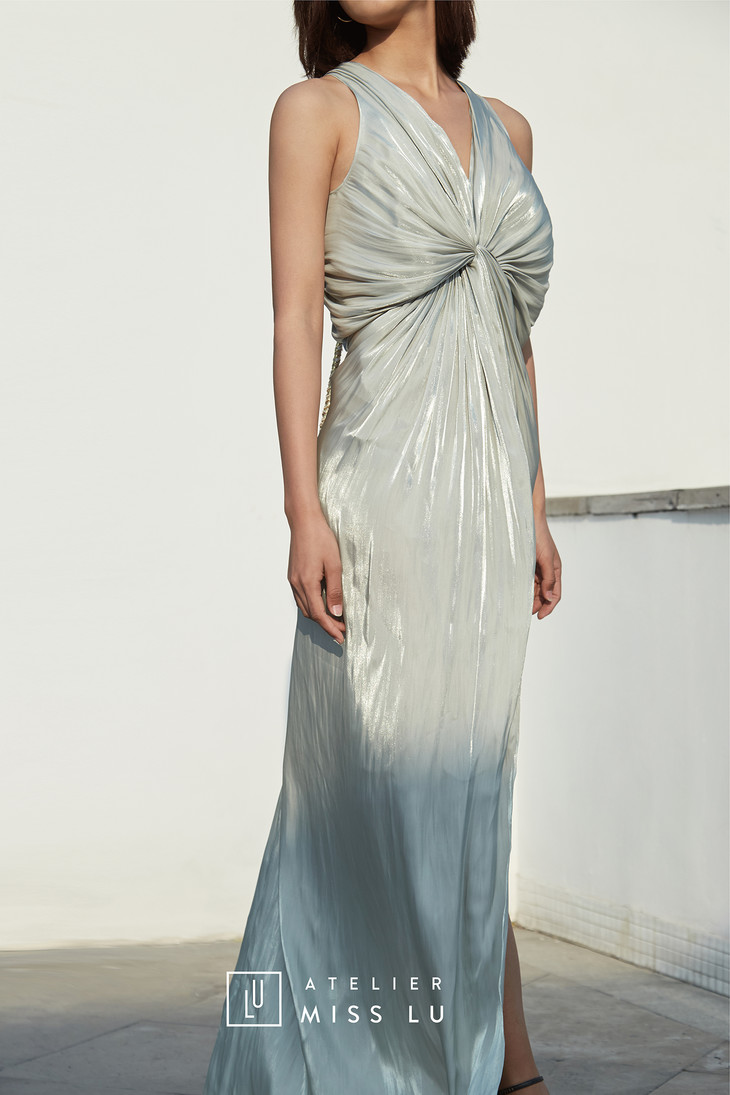 AtelierMissLu /Asteria-翡冷翠蓝绿褶皱晚礼服