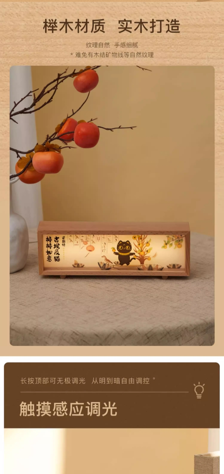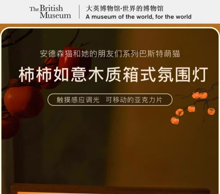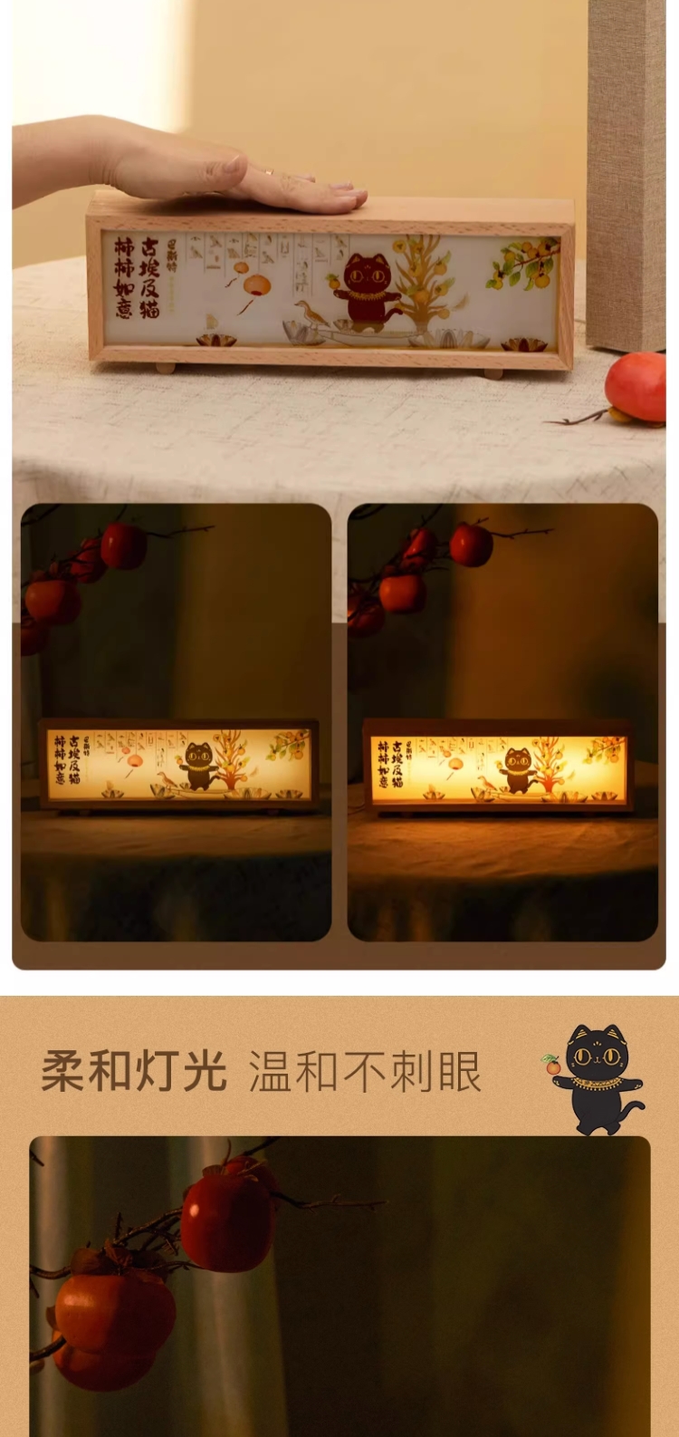 大英博物馆盖亚·安德森猫系列 萌猫可爱柿柿如意木质箱式氛围灯
