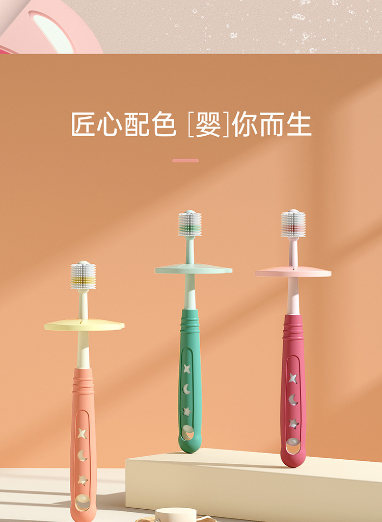 婴童牙刷牙杯组合360度旋转清洁软毛牙刷宝宝专用漱口喝水杯可爱