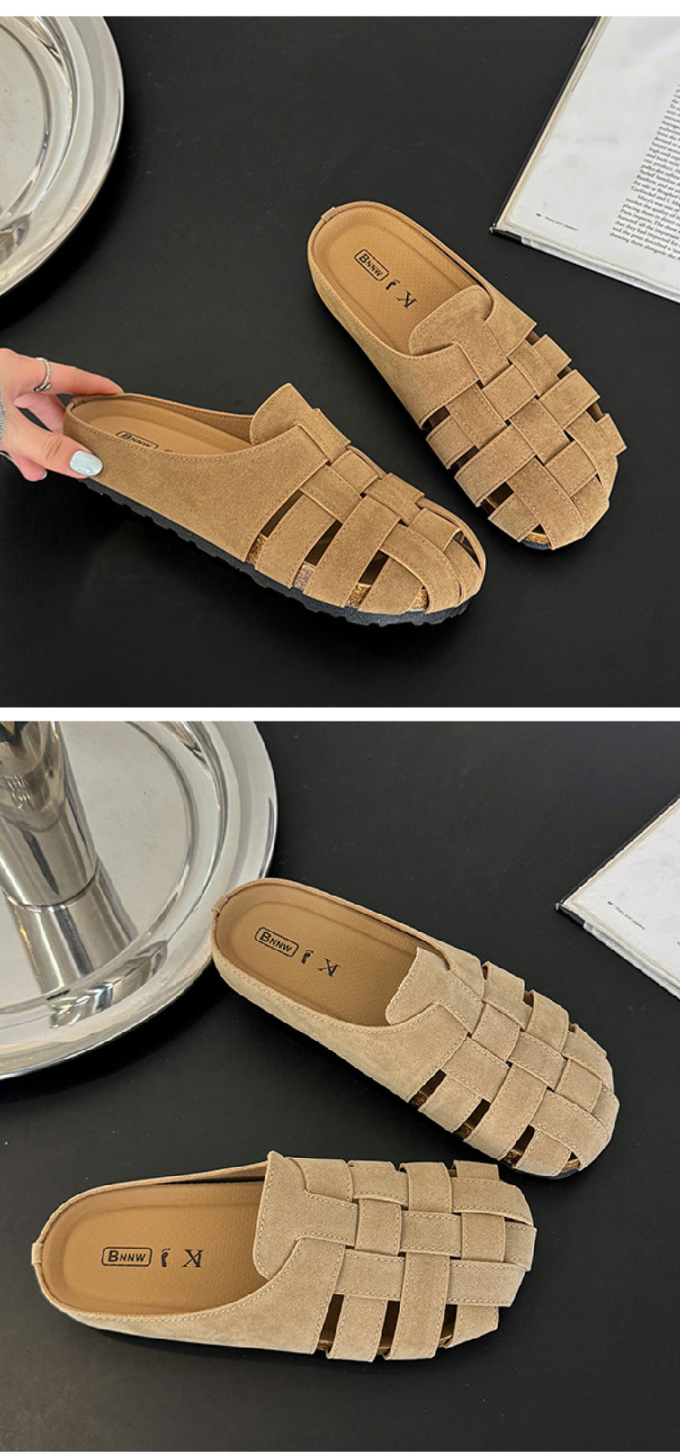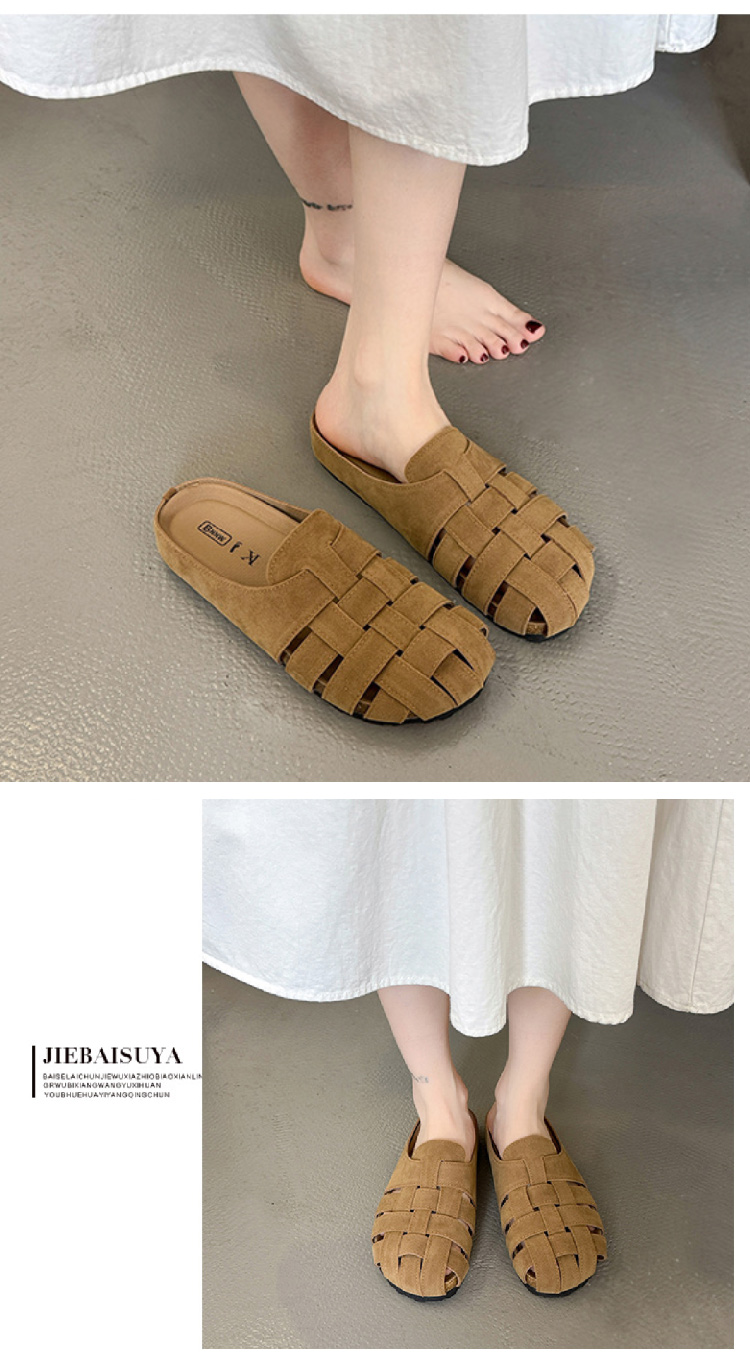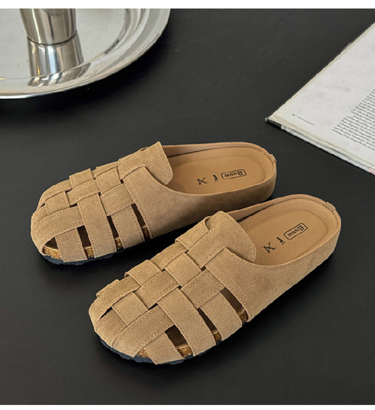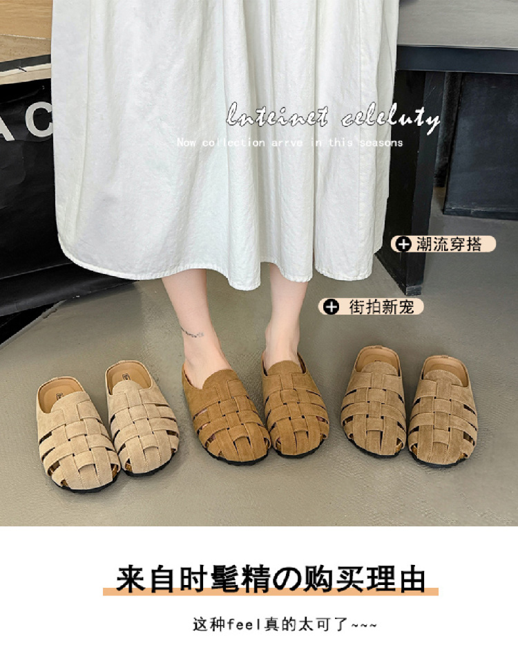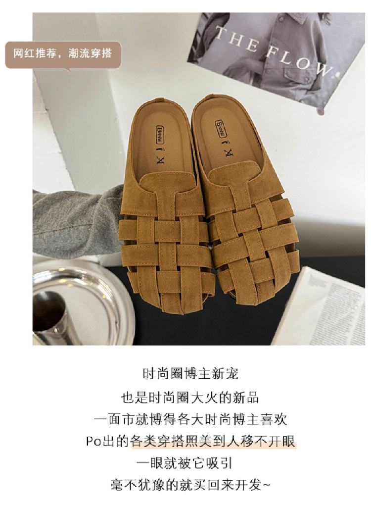 包头博肯鞋女2025春夏新款复古镂空休闲外穿勃肯凉拖鞋一脚蹬半托