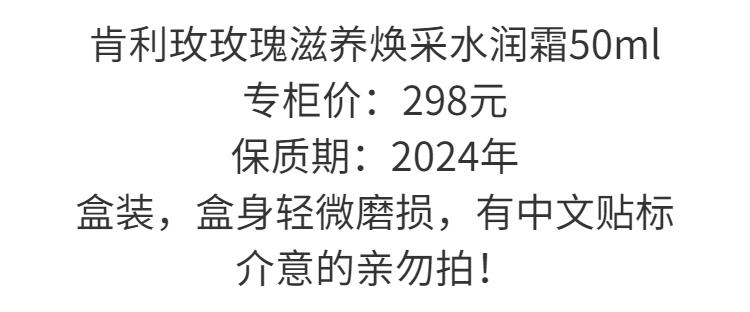 【爆款超低价预售 急单慎拍】运损捡漏 肯利玫玫瑰高保湿面霜女补水修护弹嫩紧致抗衰老敏感肌