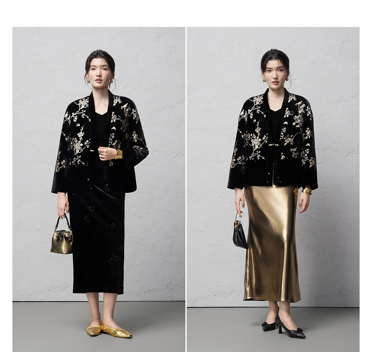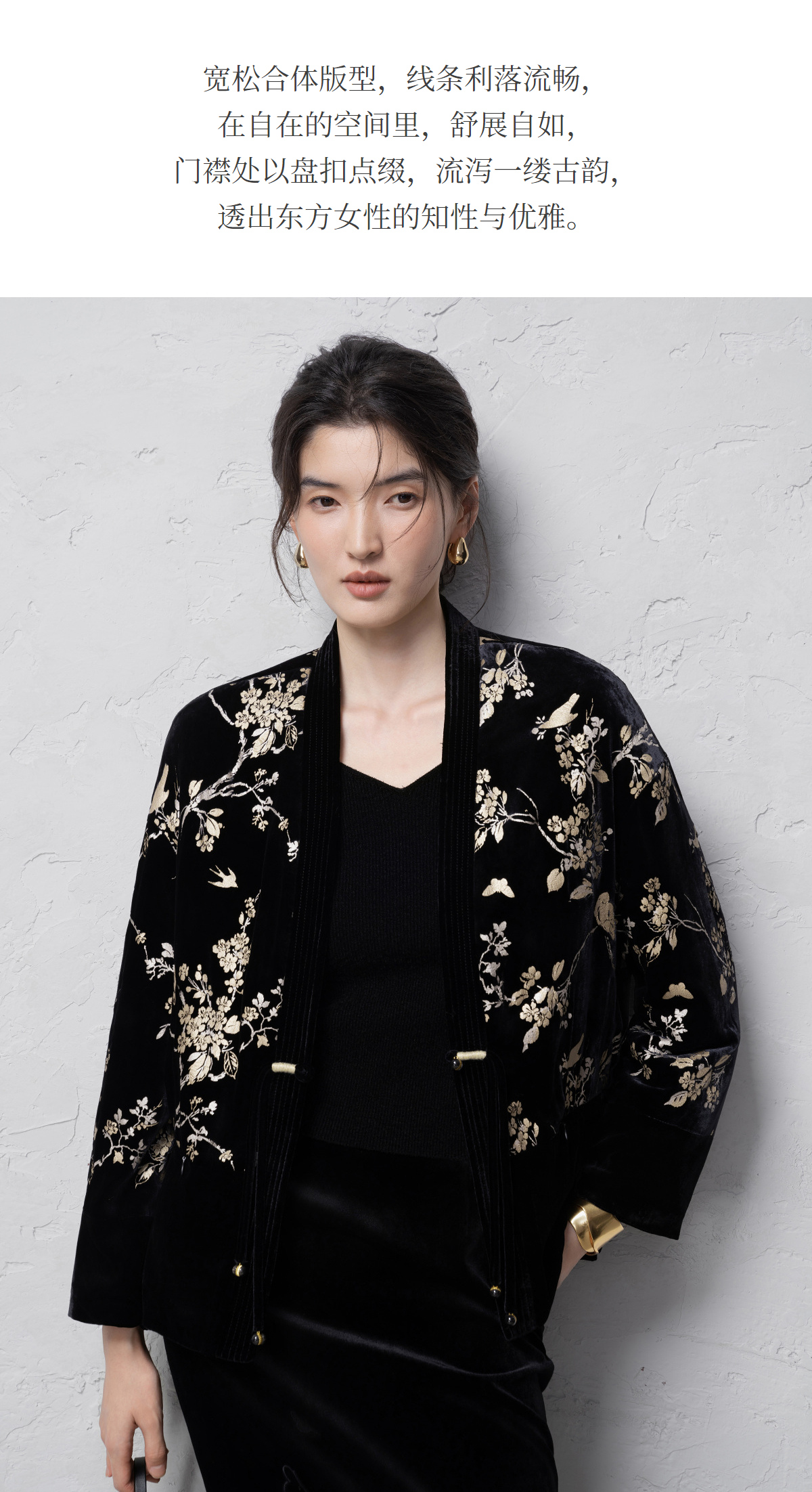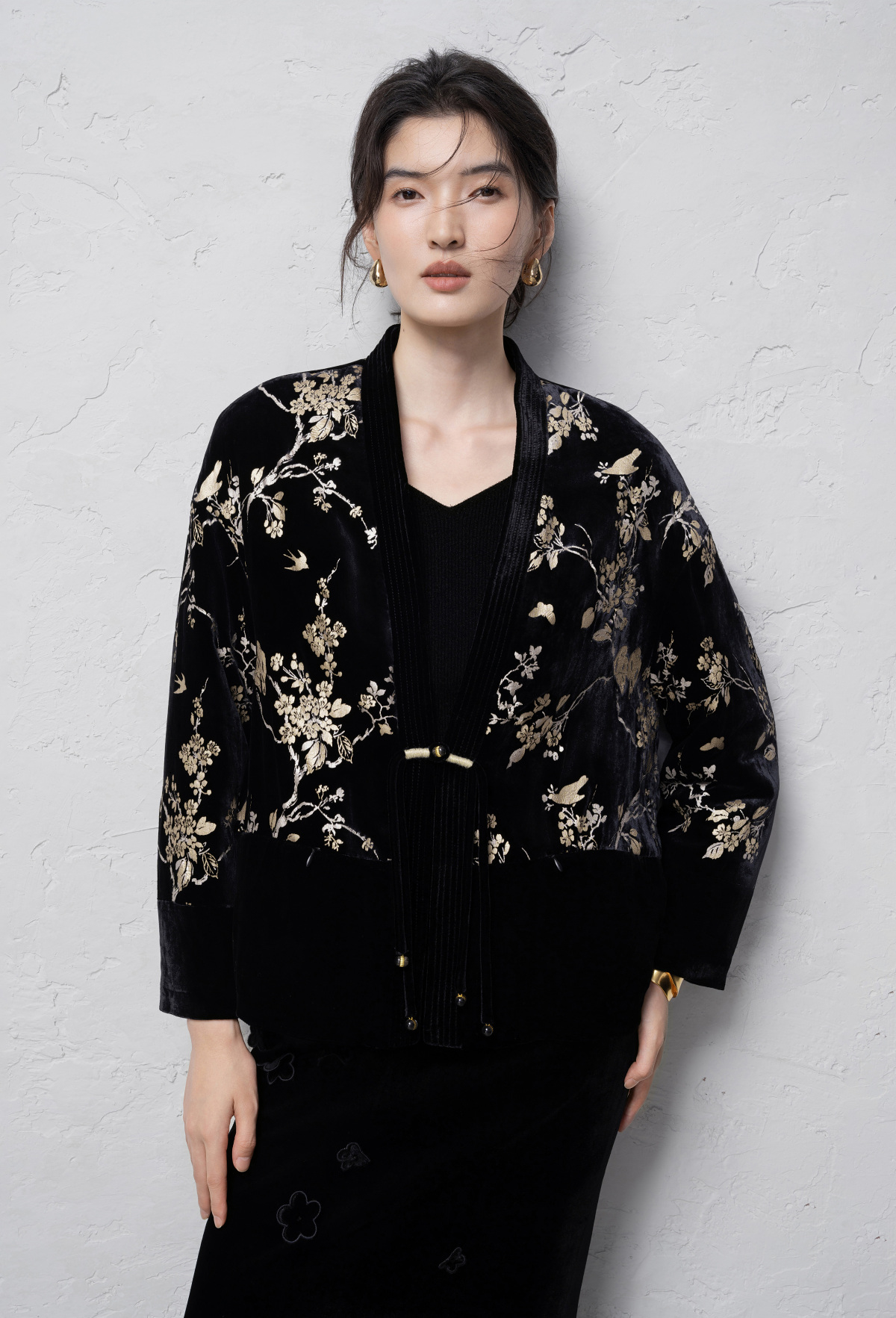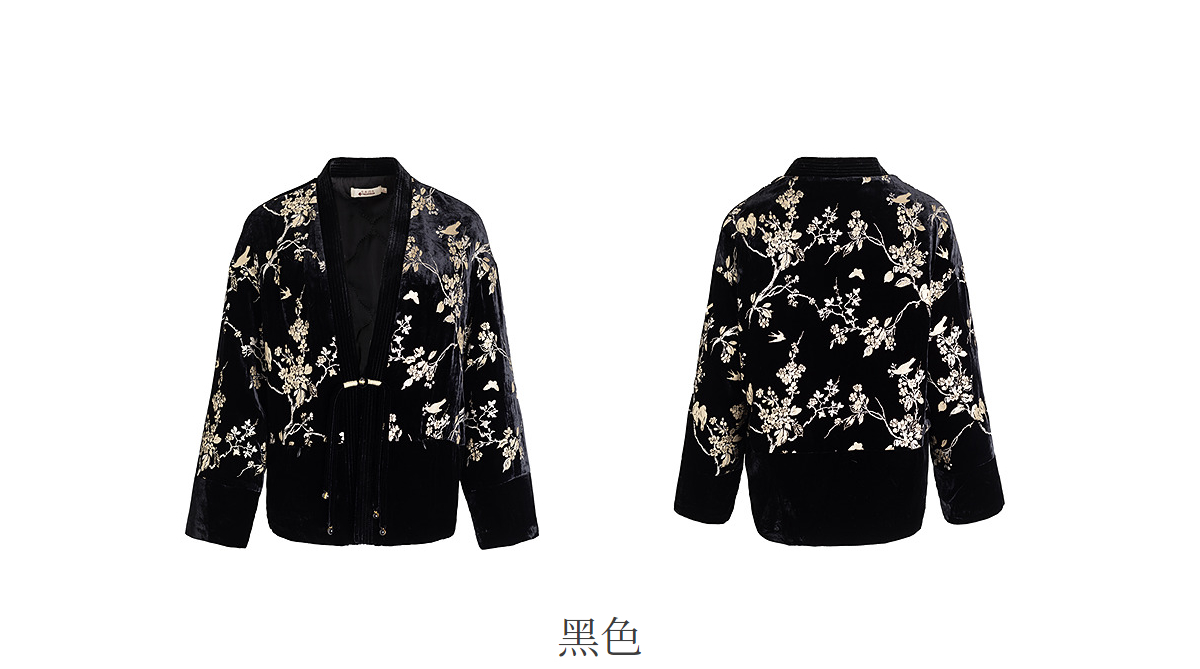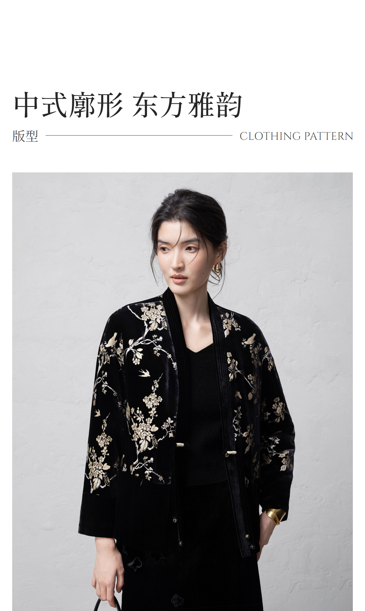 【林栖设计小店】真丝丝绒棉衣印花新中式国风盘扣2025秋冬新款外套上衣女1954193