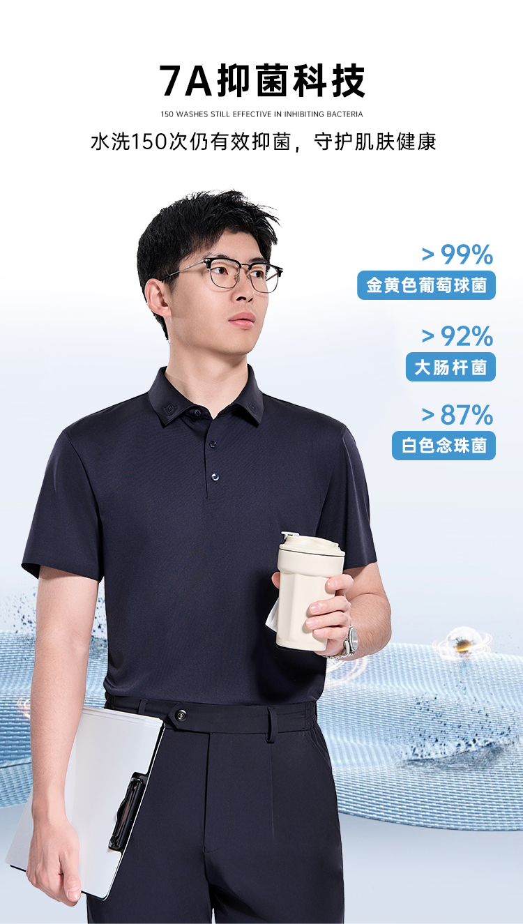 【专属领花7A抑菌短袖polo衫】无痕压胶通勤翻领T恤 凉感透气半袖上衣LZ501