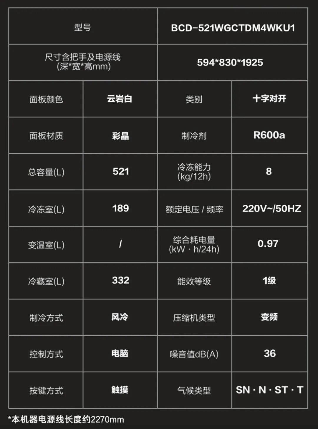 卡萨帝(Casarte)冰箱 BCD-521WGCTDM4WKU1