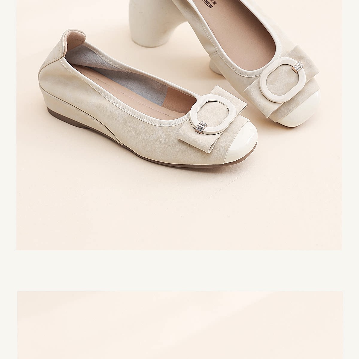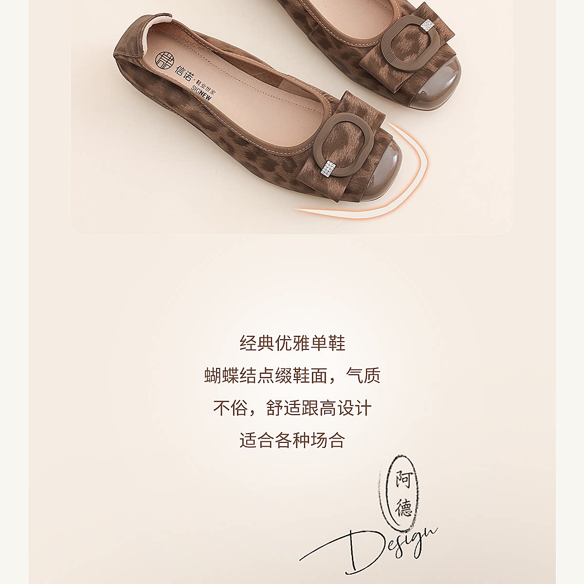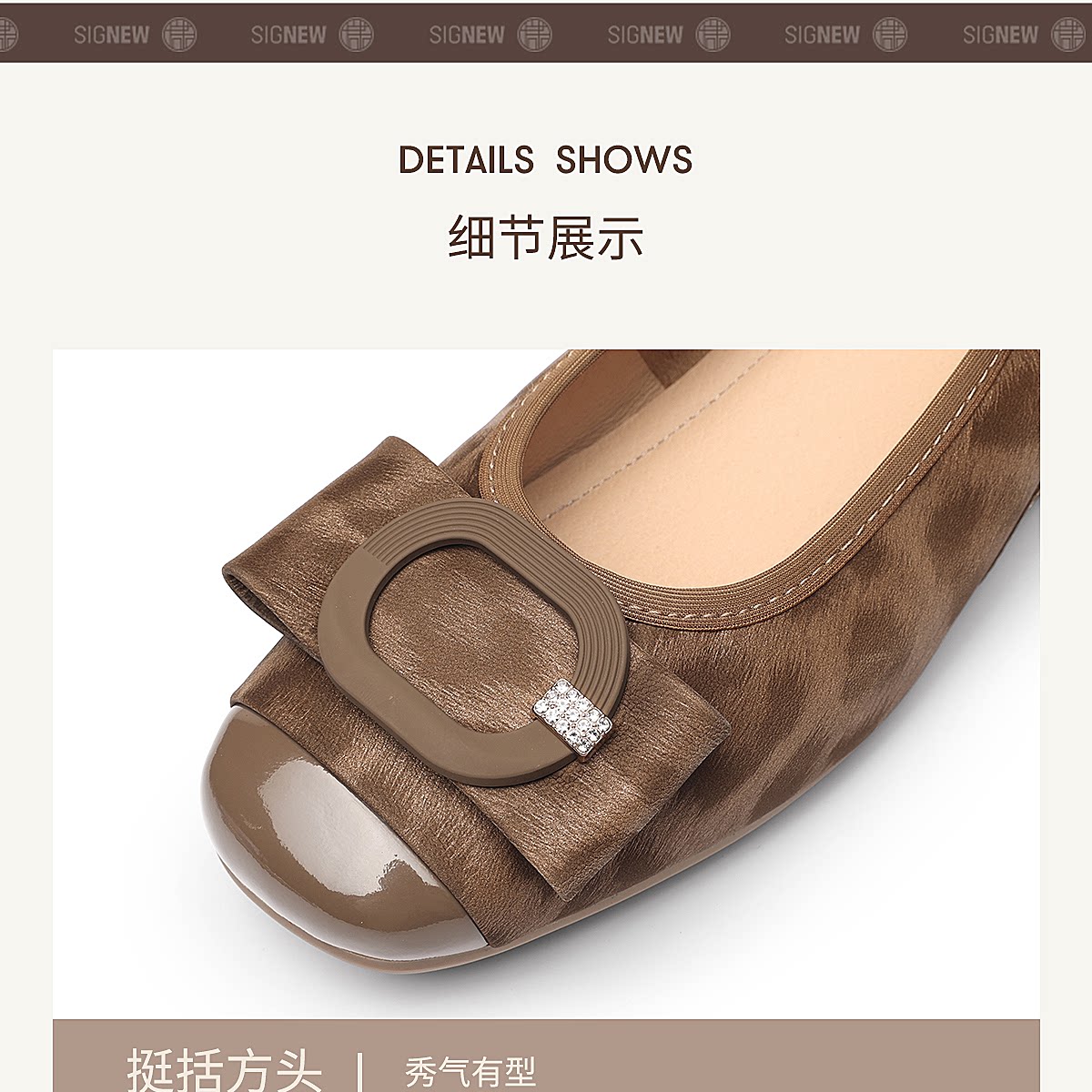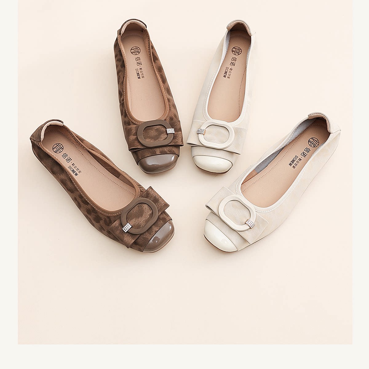 信诺方扣平底单鞋女软底舒适一脚蹬通勤风浅口鞋X6C092-48