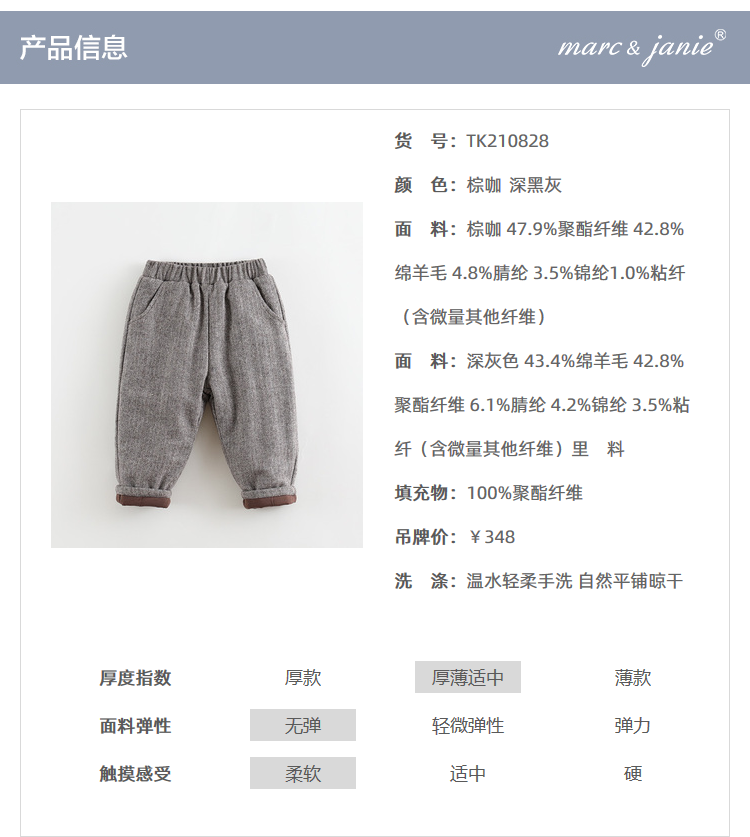 马克珍妮新款冬装 男童温暖绵羊毛萝卜裤 儿童棉裤210828