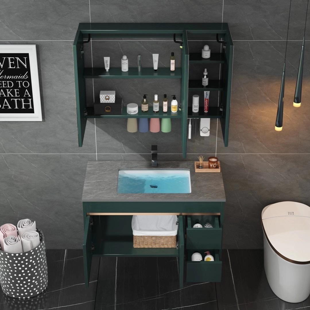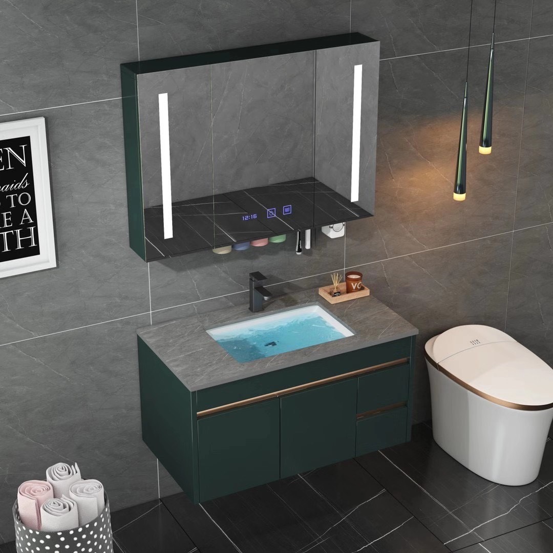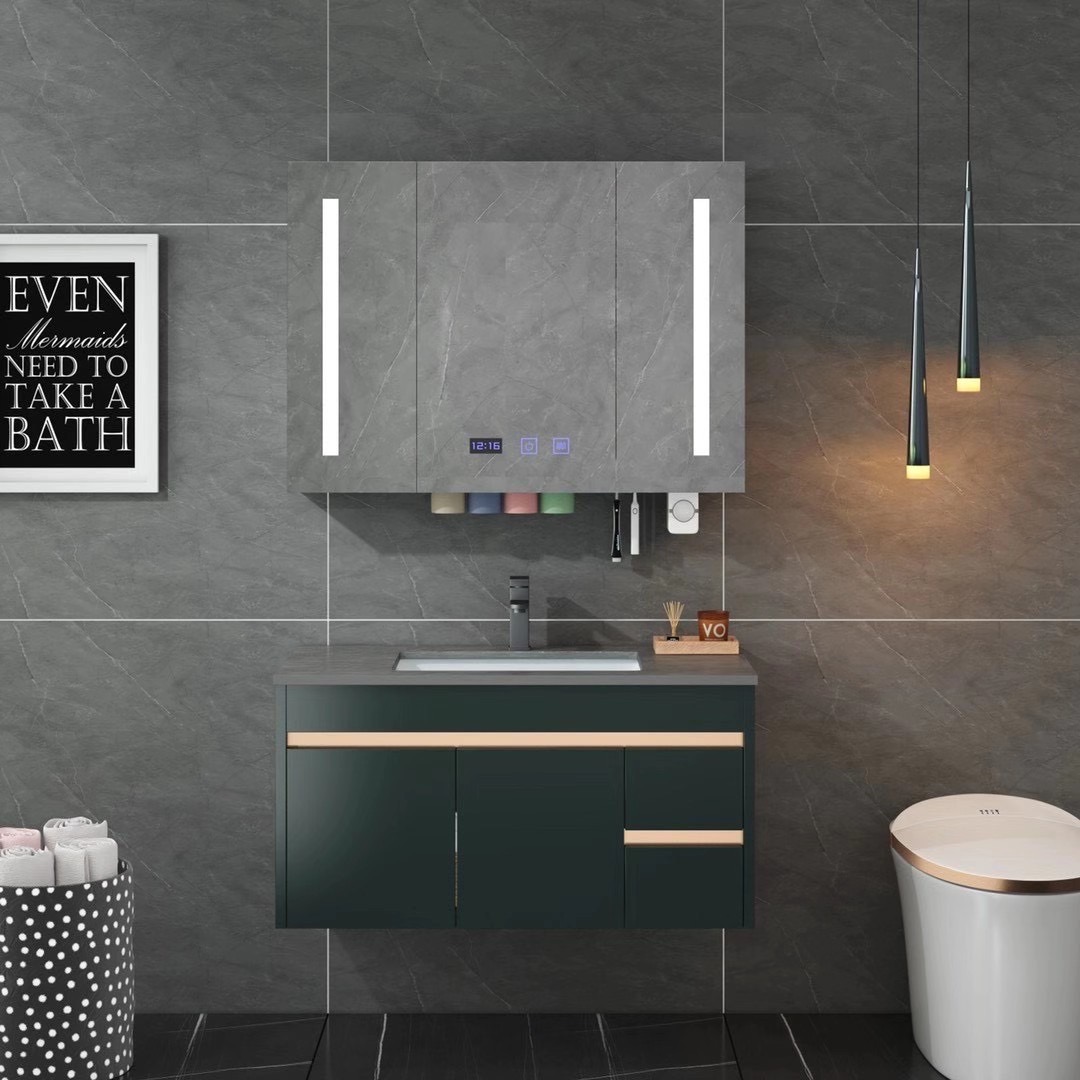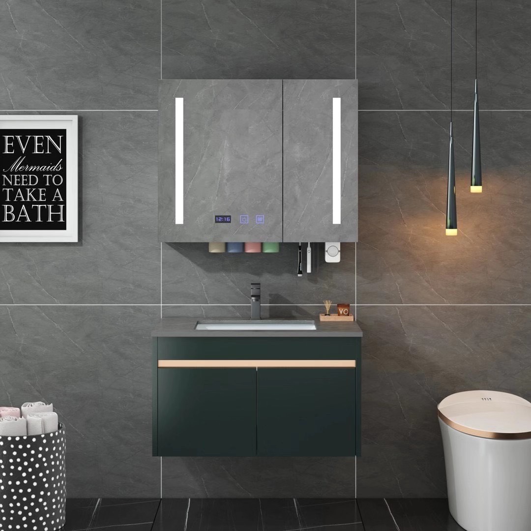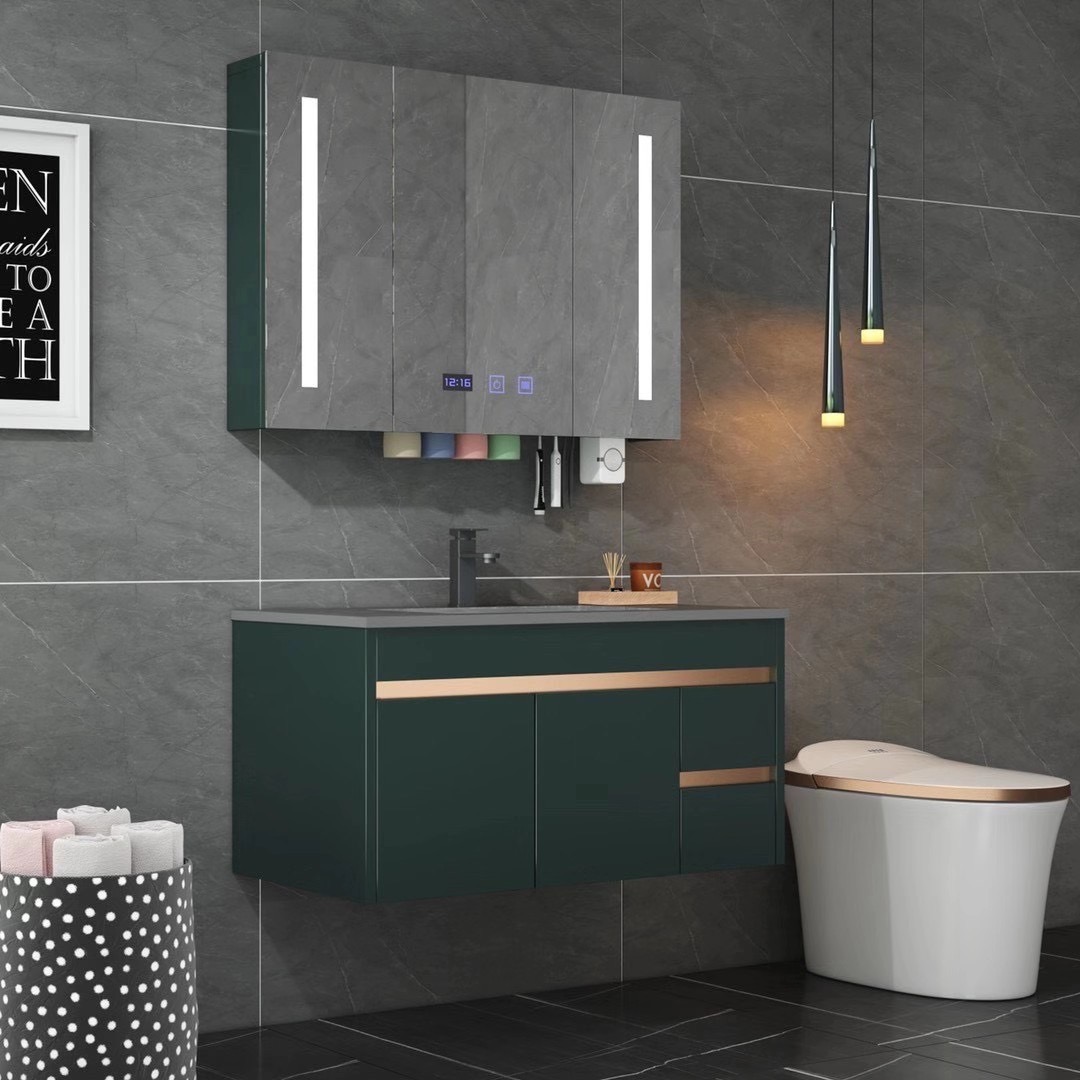 8090-60/70/80/90/100轻奢岩板墨绿色浴室柜