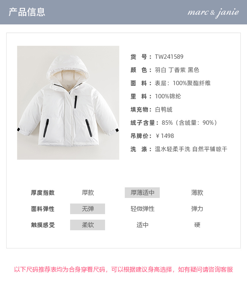 【三防】马克珍妮男女童加厚防寒中长款羽绒服2024秋冬新款241589