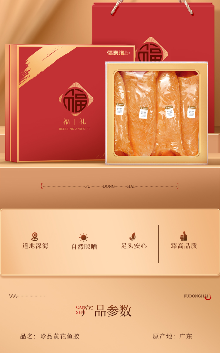 福东海 黄花鱼胶100克 甄选深海鱼胶胶原蛋白 孕妇女人滋补品 节日礼物 花胶干货礼盒装