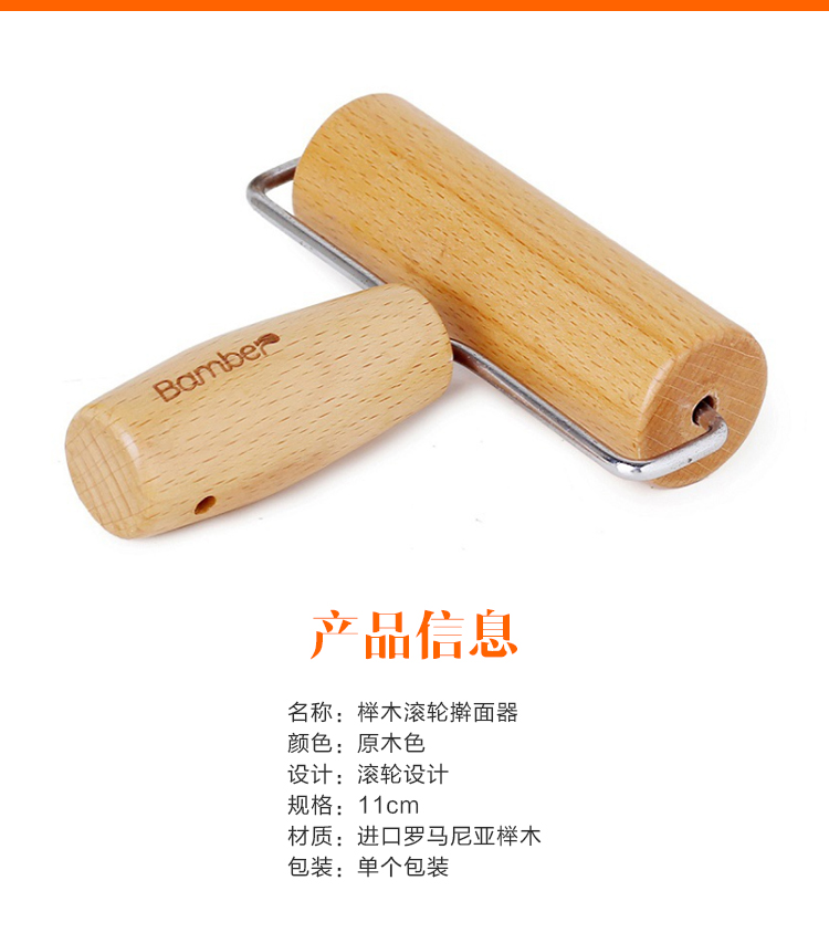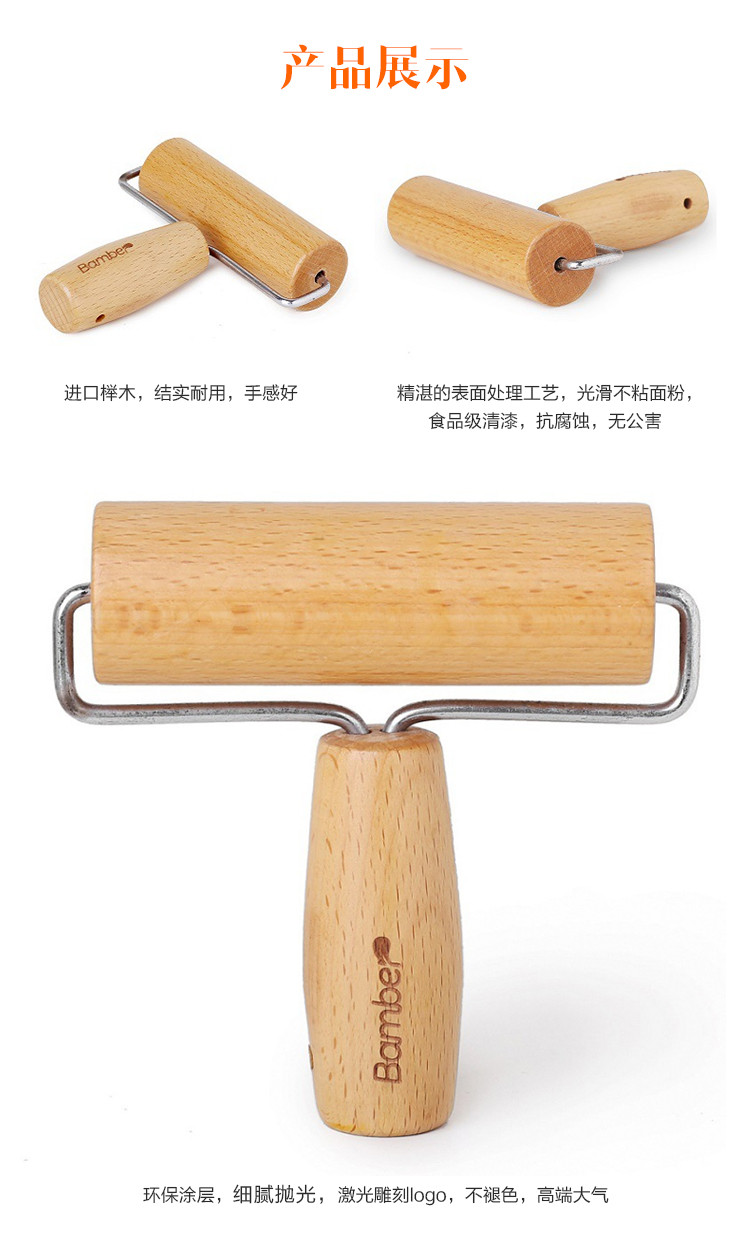 家用实木擀面杖手柄 烘焙工具 披萨饺子皮 滚轮带柄 杆面棍压面棍