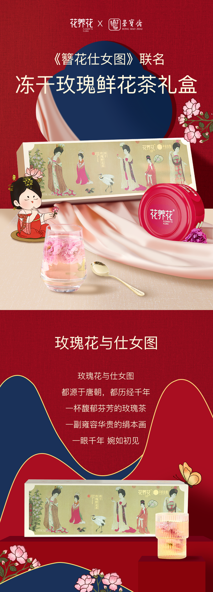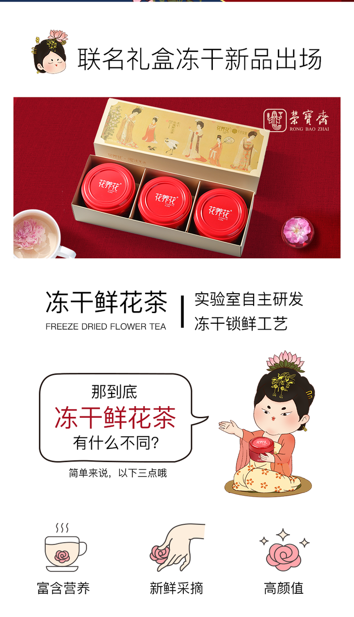 花养花 x 荣宝斋联名冻干玫瑰鲜花茶礼盒