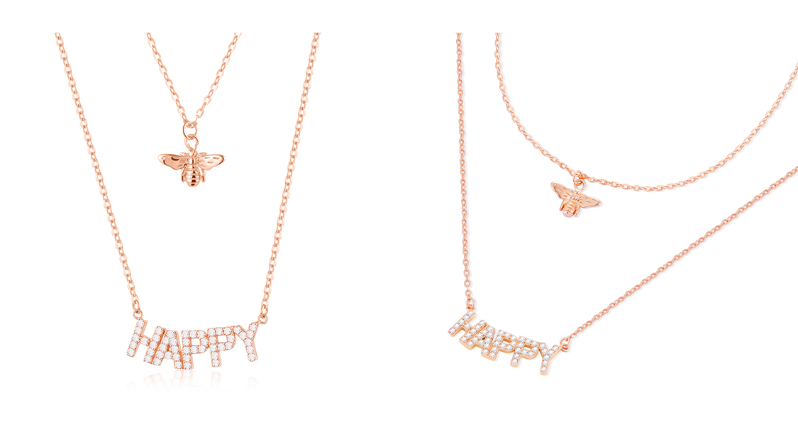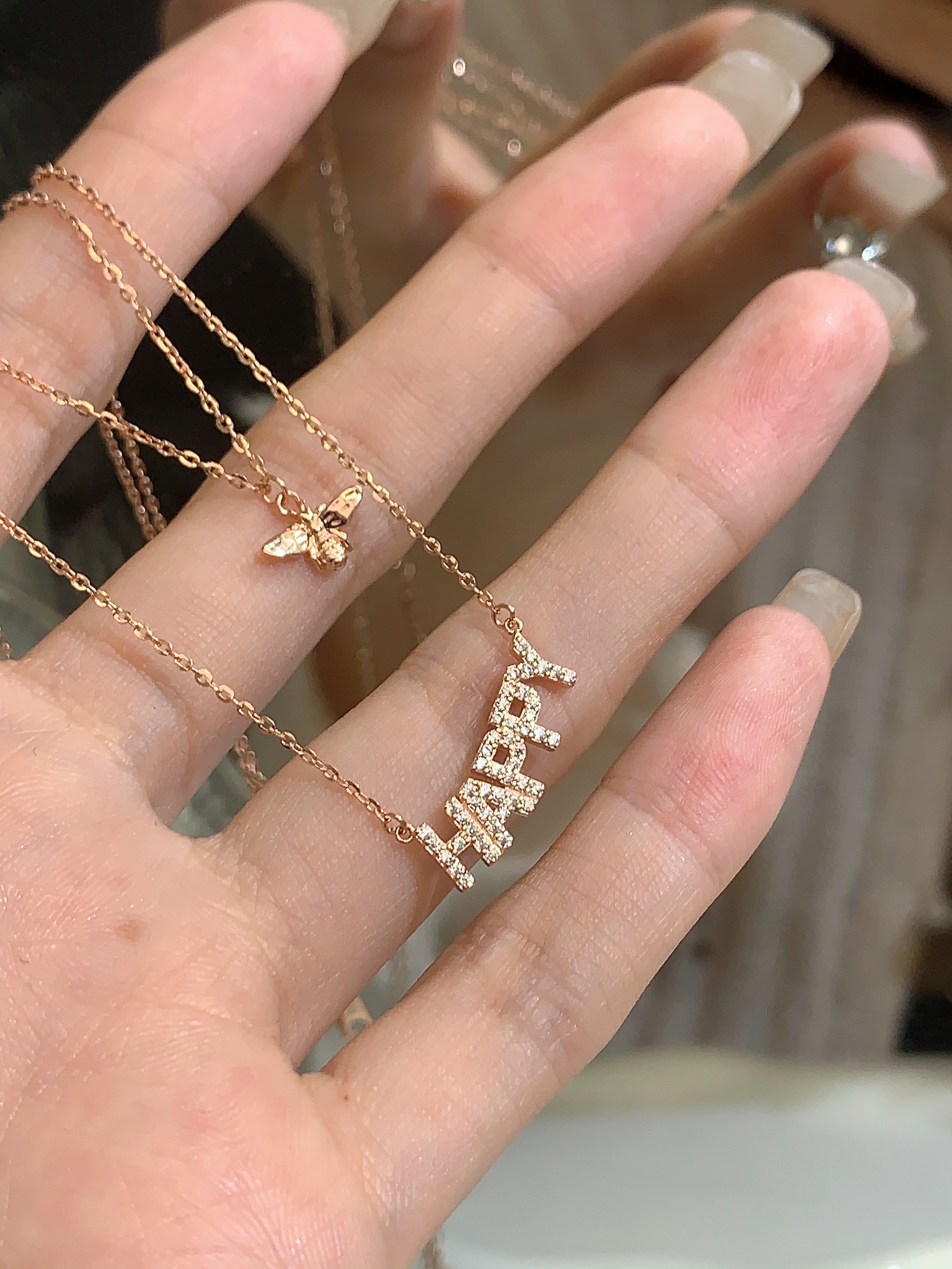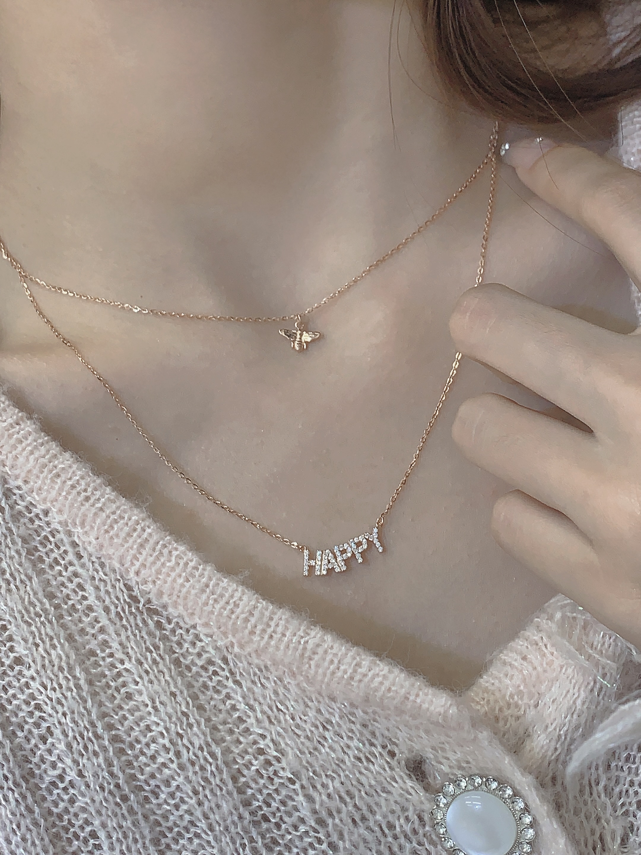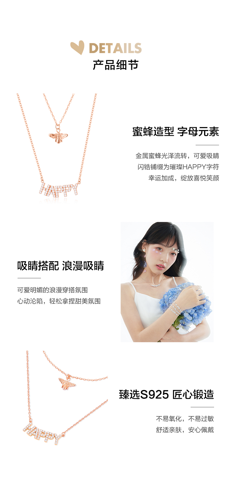 KADER卡蒂罗 幸运蜜蜂项链 S925萌趣Bee双链可爱设计happy锁骨链 浪漫吸睛圣诞配饰 闺蜜同款女生款 礼盒