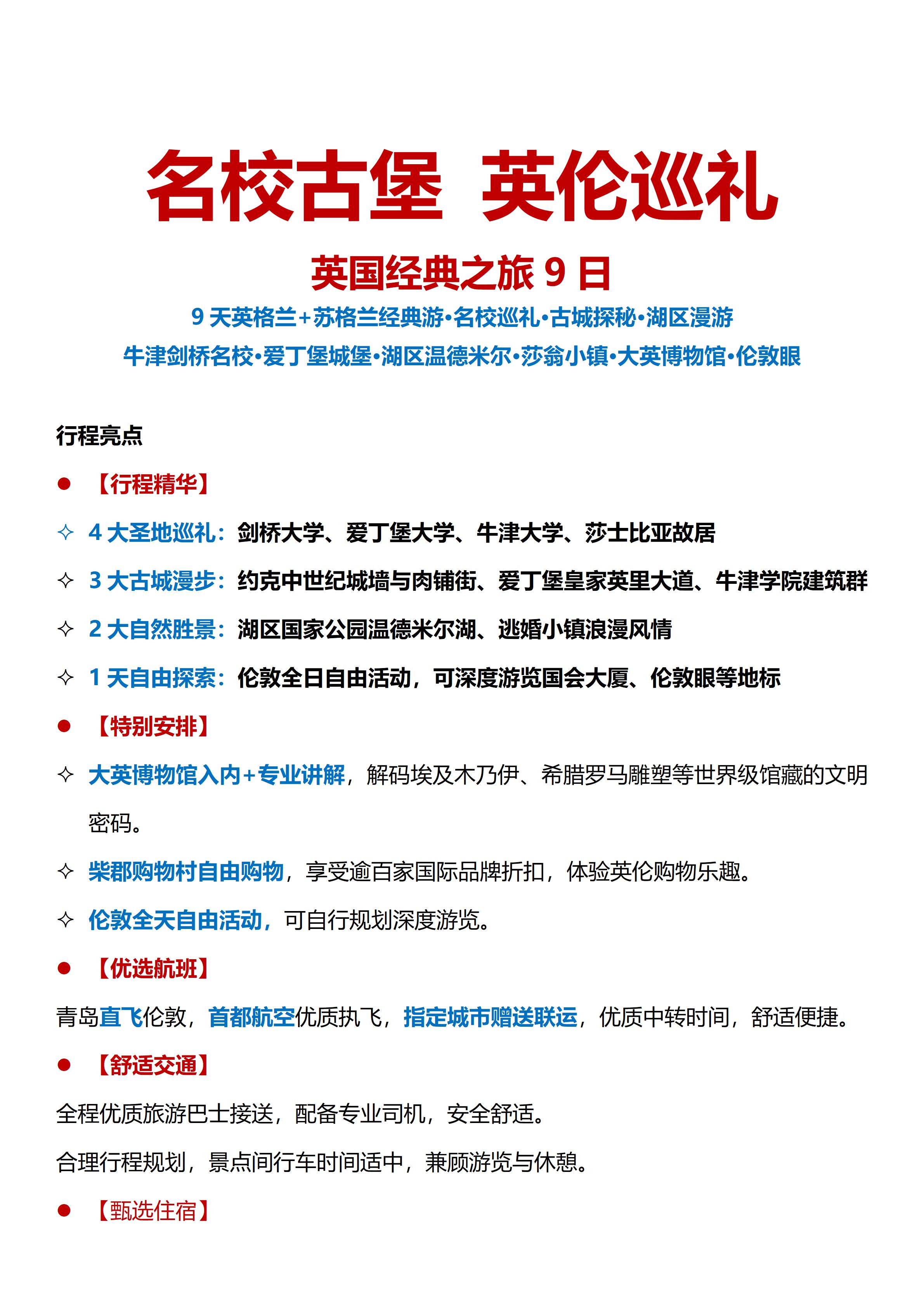 【名校古堡·英伦巡礼】英国经典之旅9日