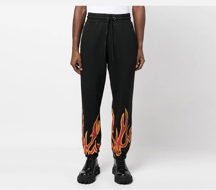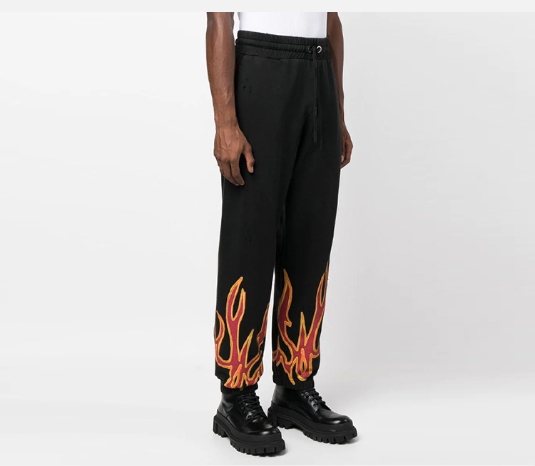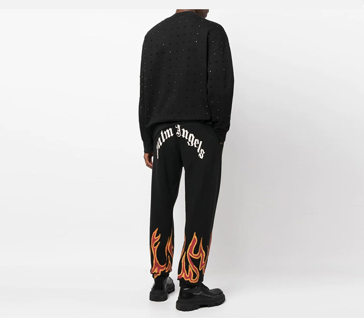 PALM ANGELS 棕榈天使 男士棉质火焰细节字母徽标印花休闲运动裤 黑色 PMCH011F22FLE002 1025