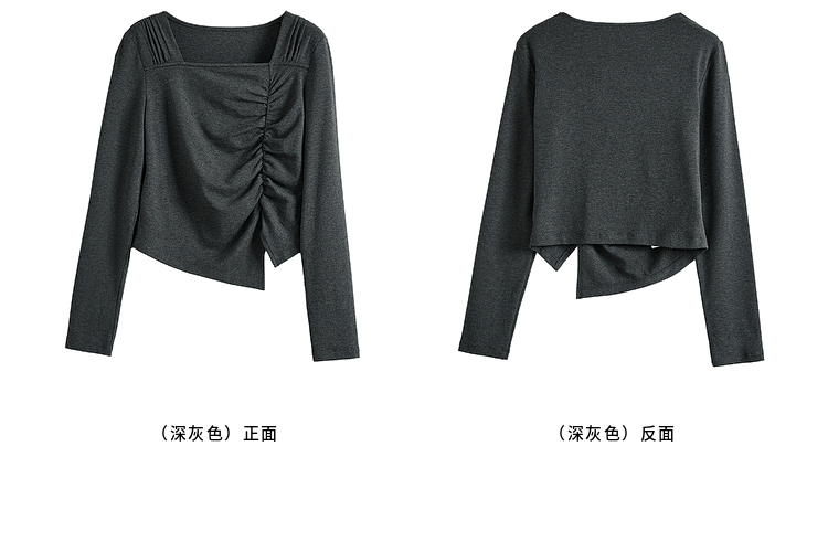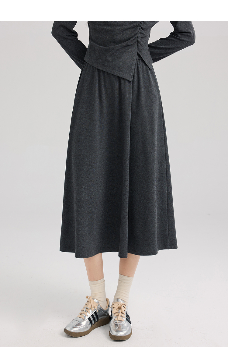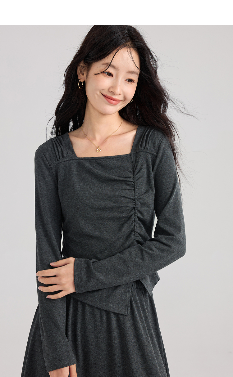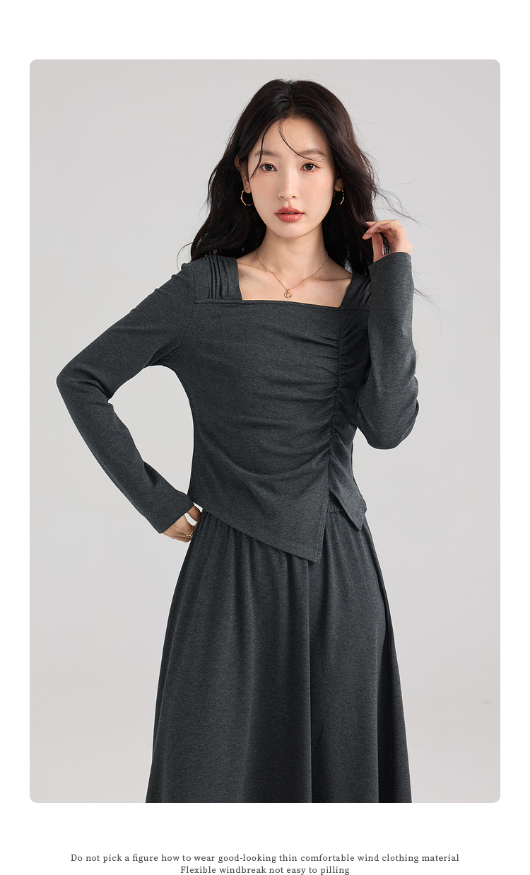 【专属特价】熙世界秋季穿搭一整套新款休闲捏褶针织方领上衣半身裙两件套装