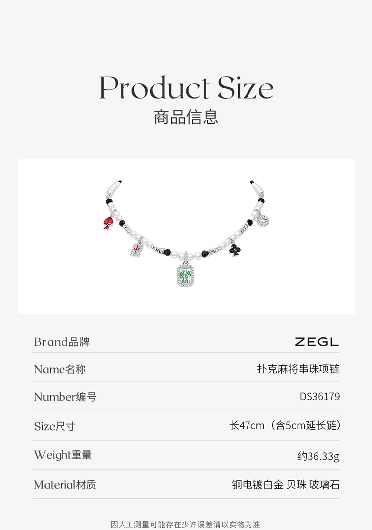 ZEGL设计师本命年礼物发财麻将毛衣链女高级感人造珍珠项链锁骨链
