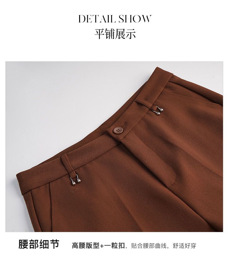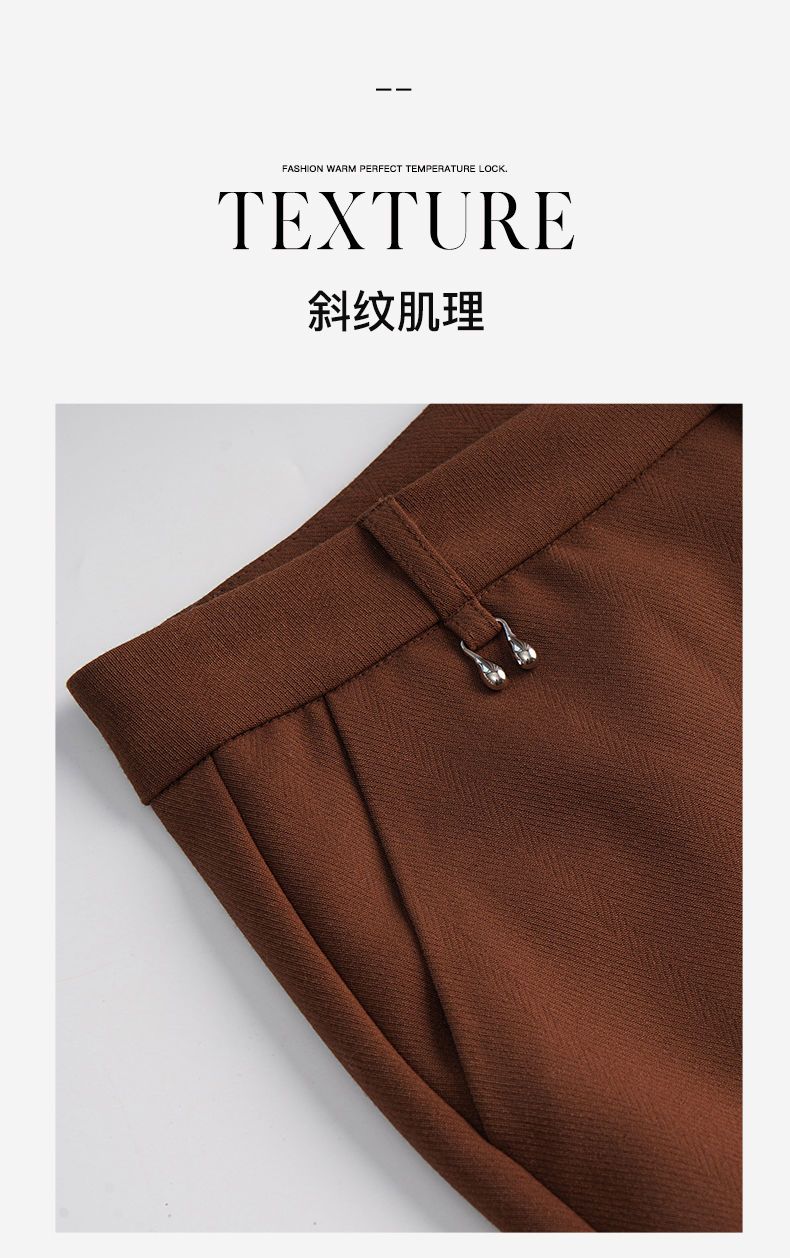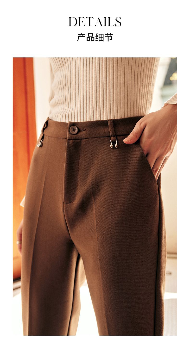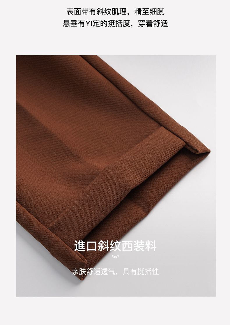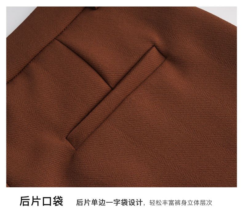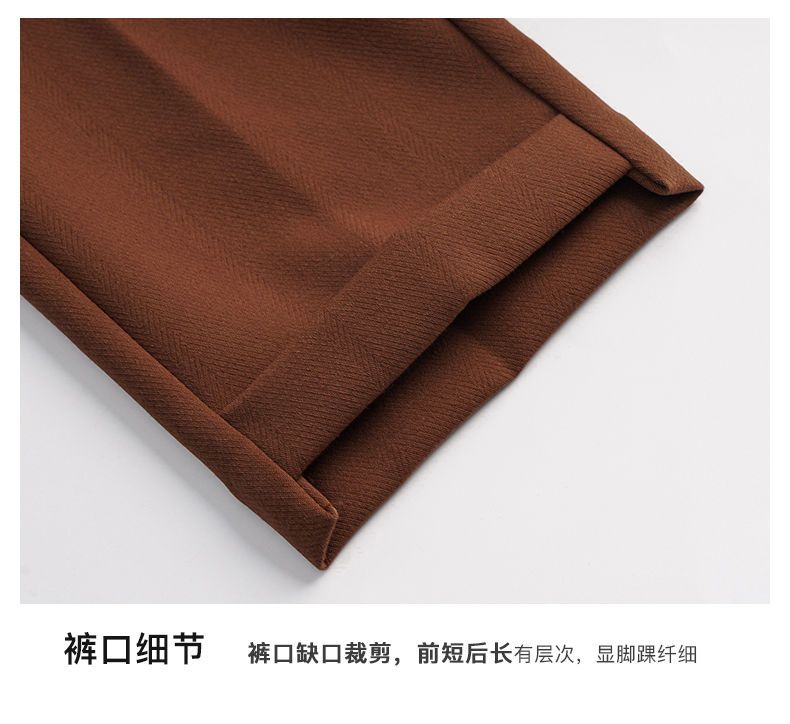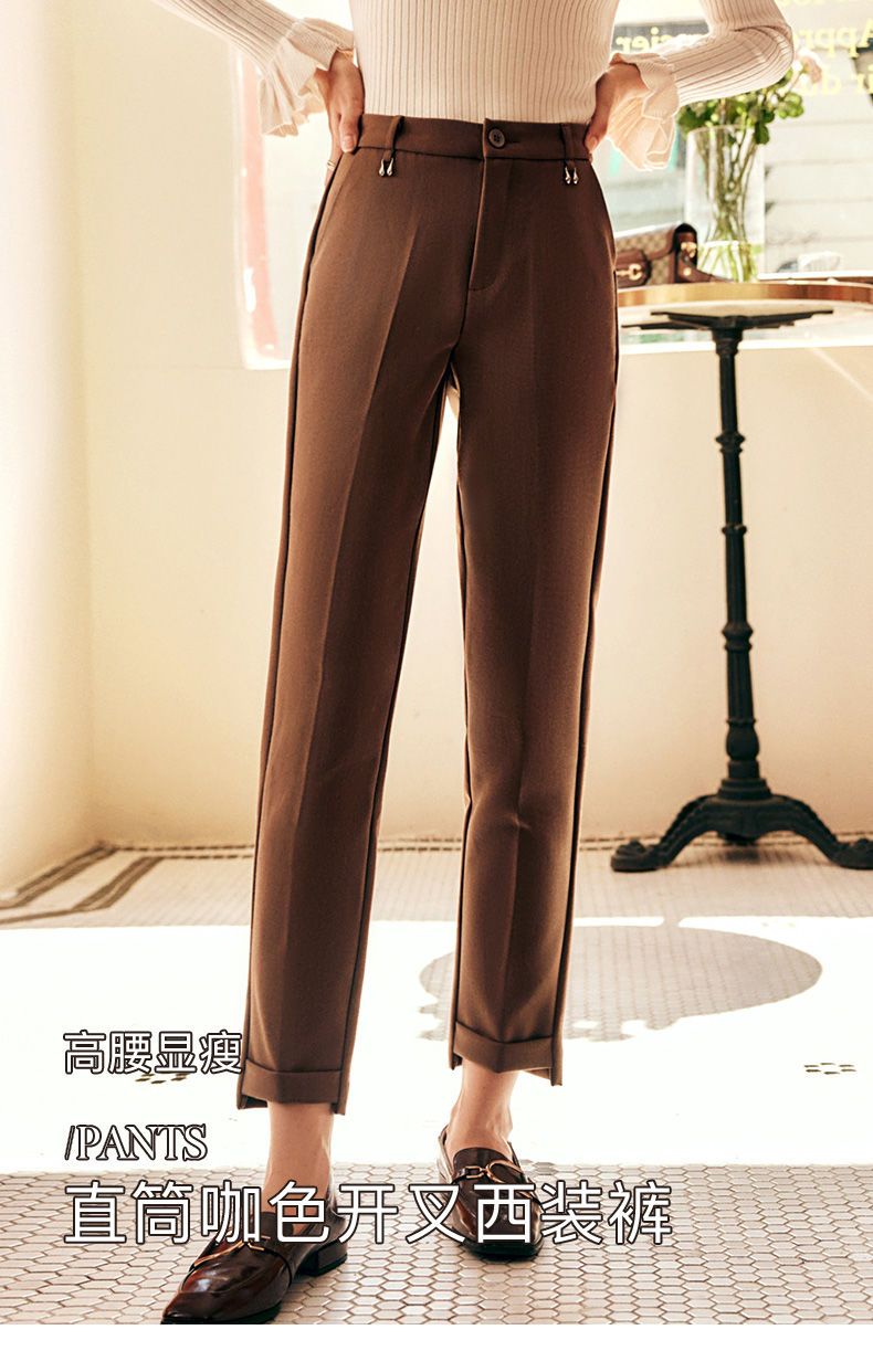 OLrain欧芮儿法式咖色西装休闲裤女秋季2022年新款直筒开叉烟管裤