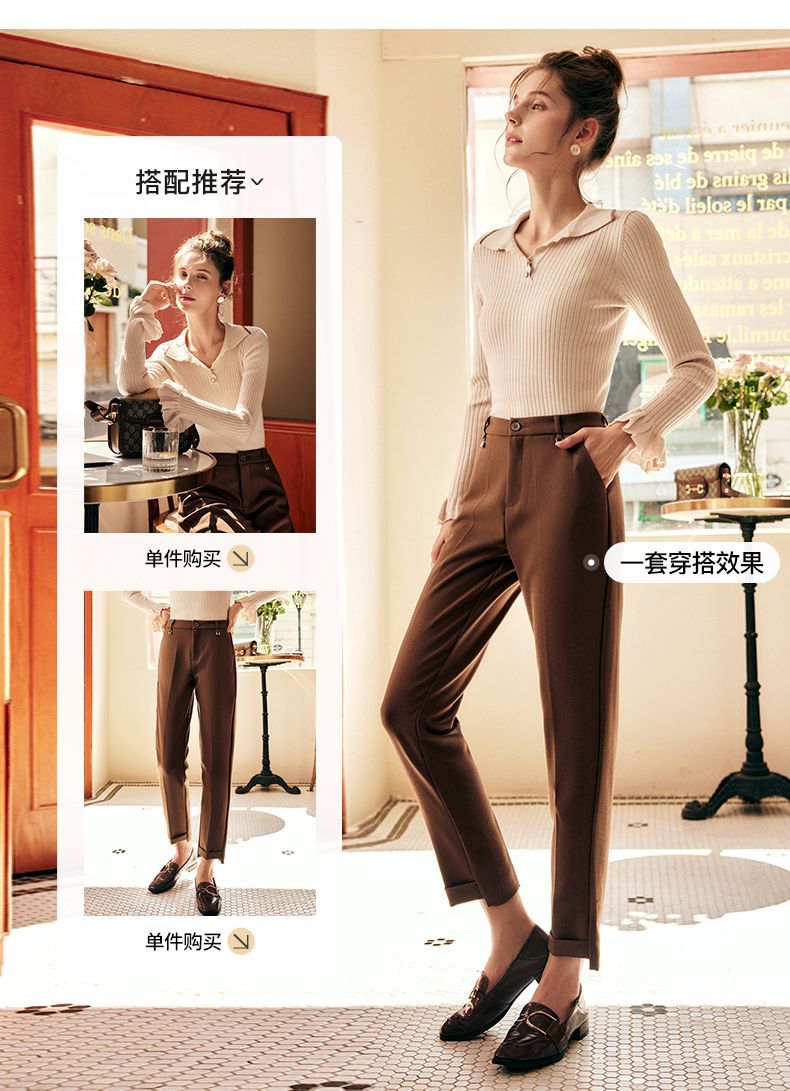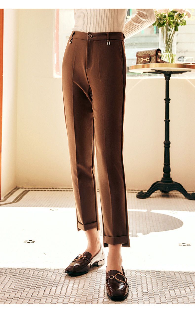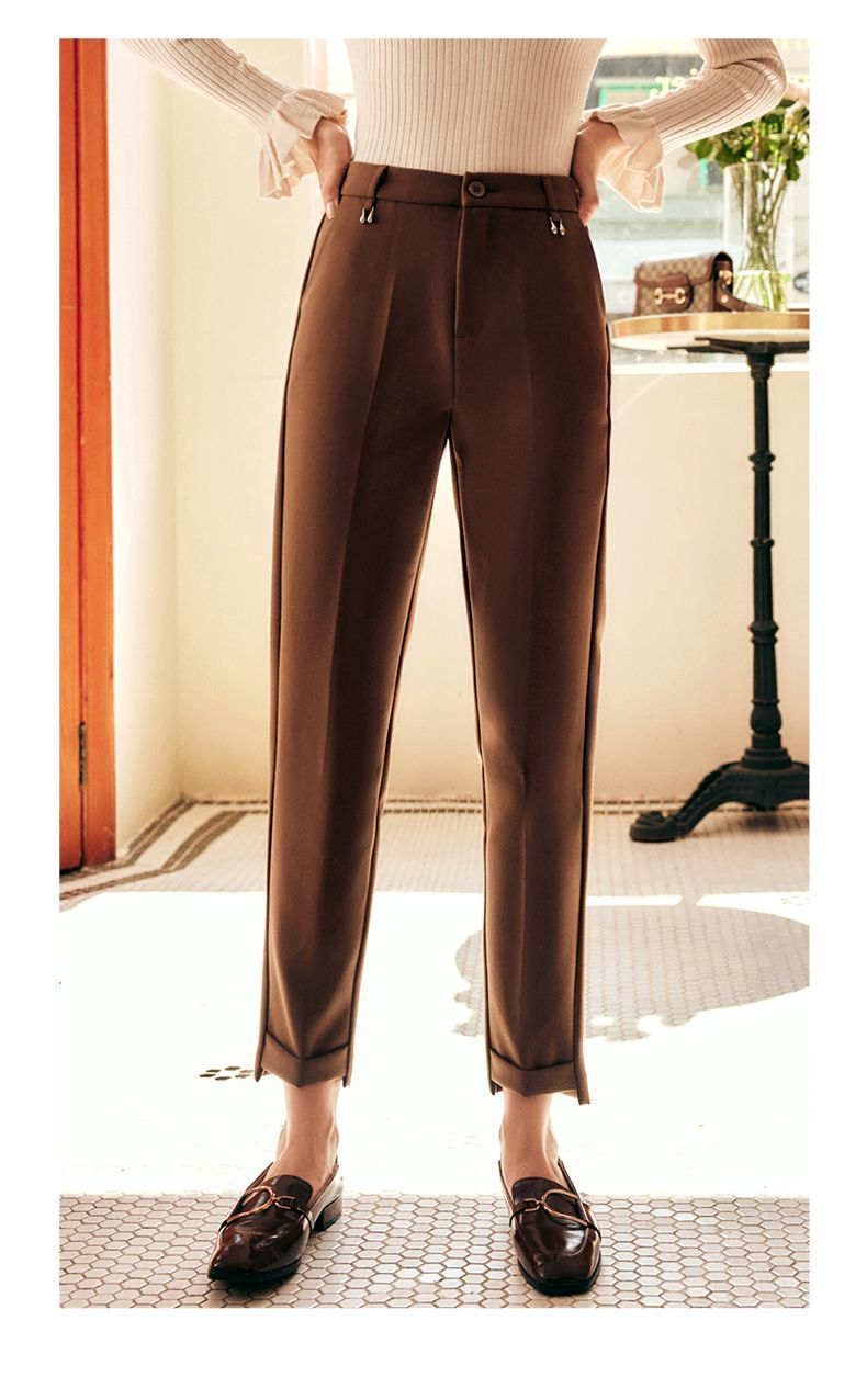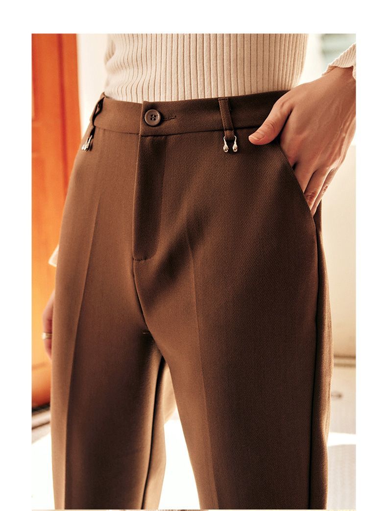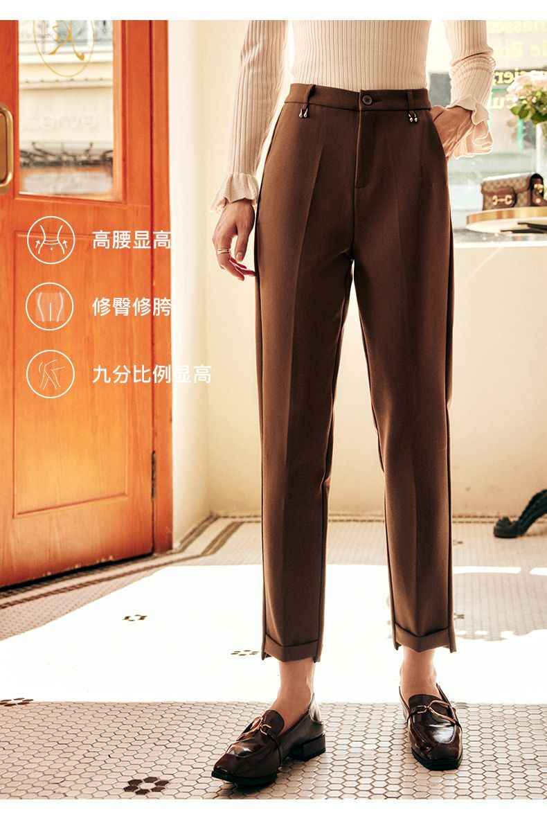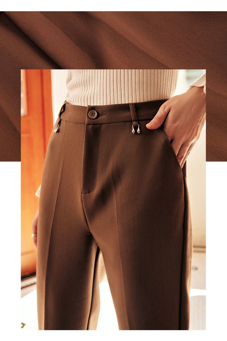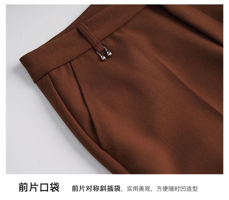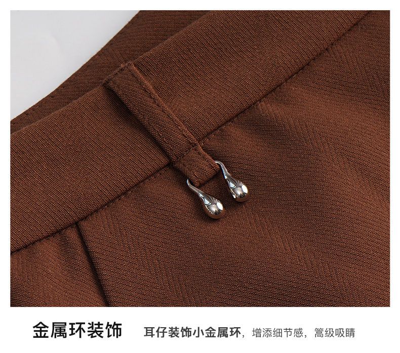 OLrain欧芮儿法式咖色西装休闲裤女秋季2022年新款直筒开叉烟管裤