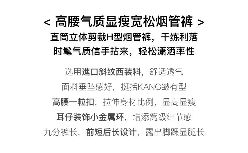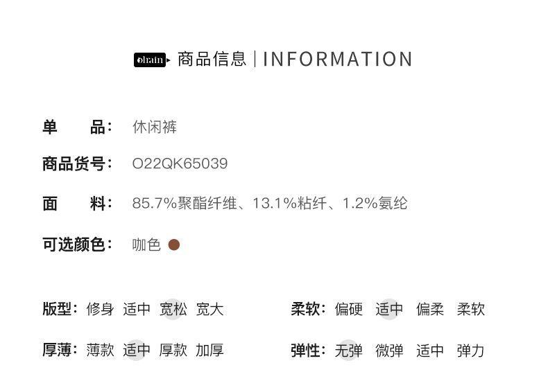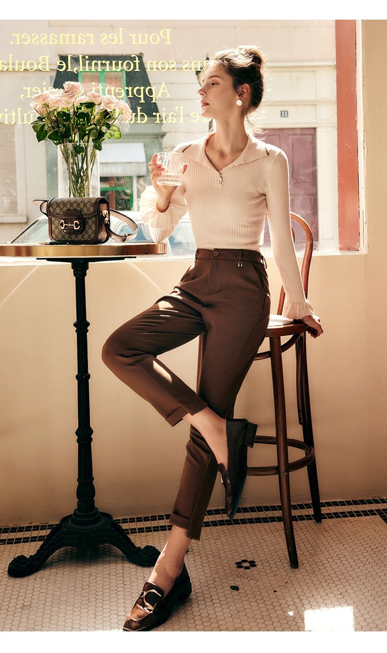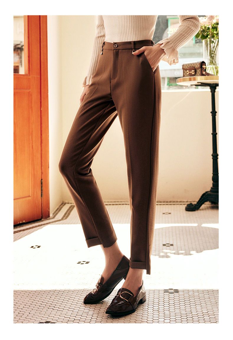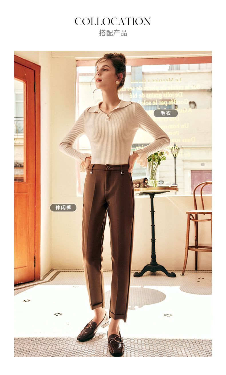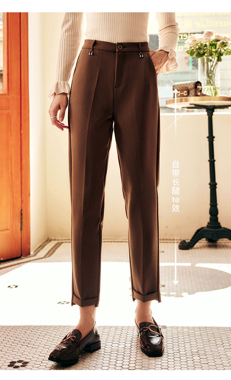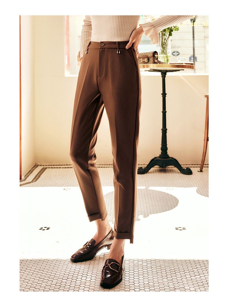 OLrain欧芮儿法式咖色西装休闲裤女秋季2022年新款直筒开叉烟管裤