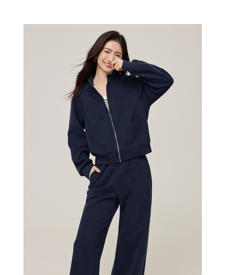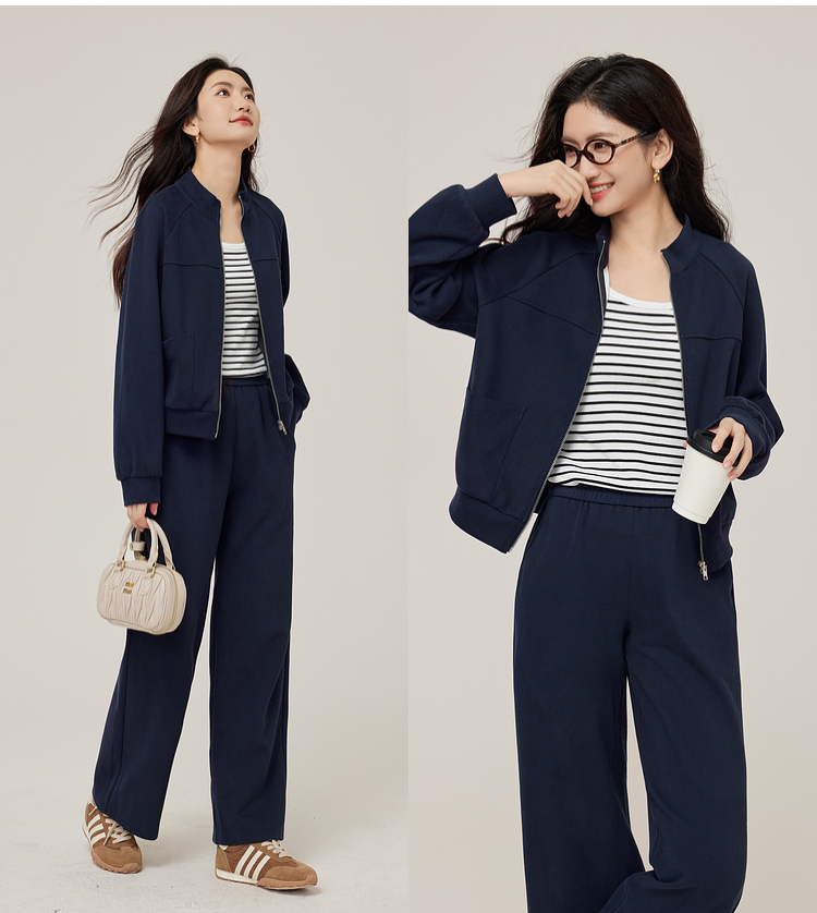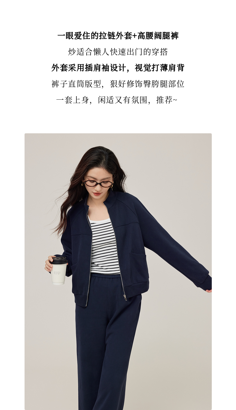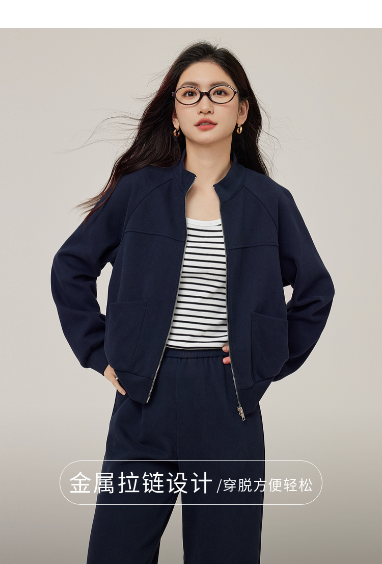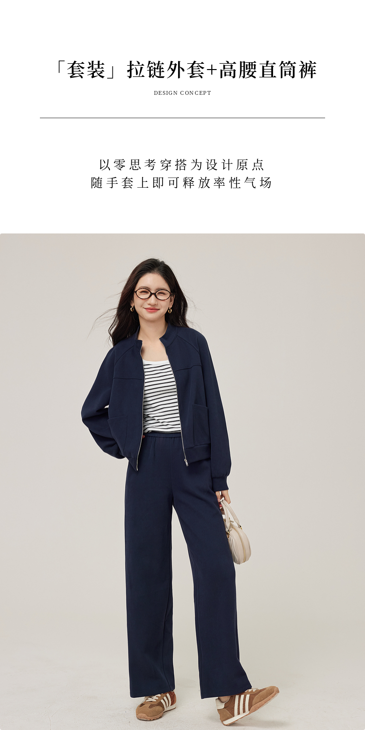 【09/03新品】熙世界休闲拉链开衫卫衣套装女2025秋女装运动风外套直筒裤两件套