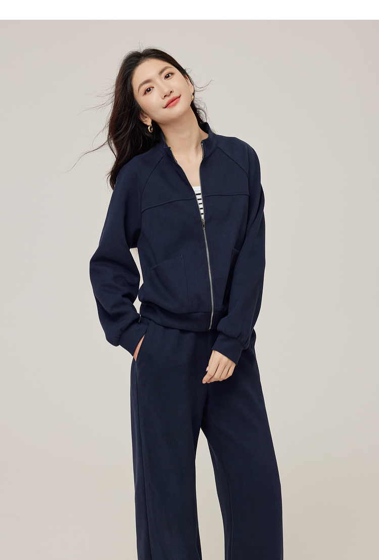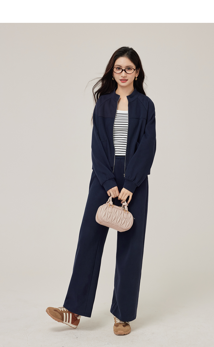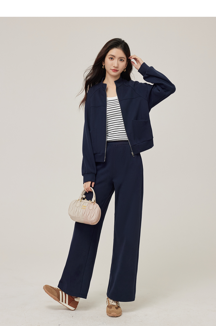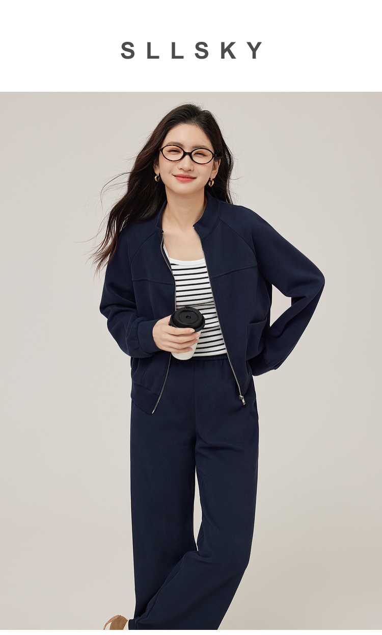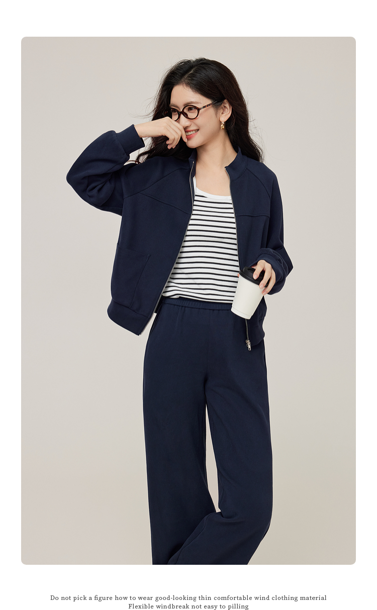 【09/03新品】熙世界休闲拉链开衫卫衣套装女2025秋女装运动风外套直筒裤两件套