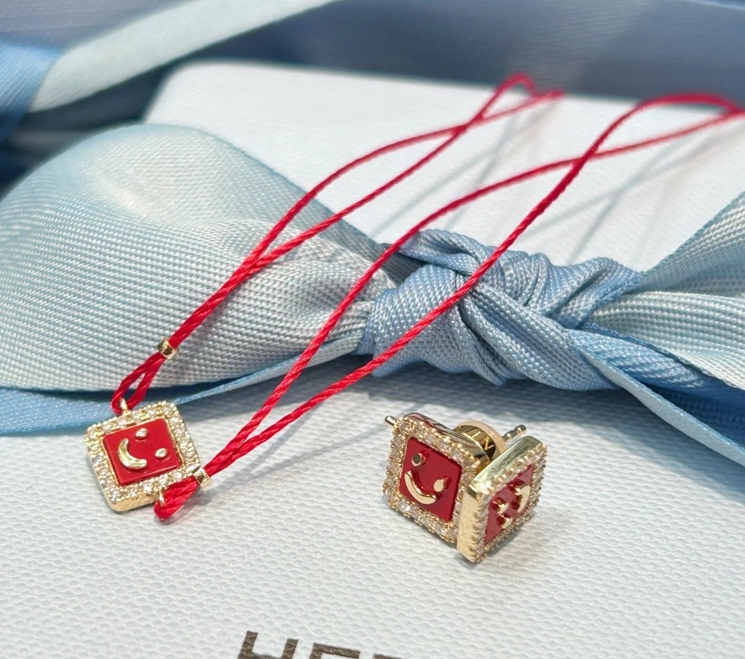 新年人们习惯佩戴红色手绳,聚集财运与福气!设计师特别推出笑脸红绳!小方牌笑脸四周镶嵌璀璨锆石绽放耀眼光芒,笑脸镶嵌红松石超级显白,搭配金色修饰肤色优雅显气质!简约大方,日常百搭!