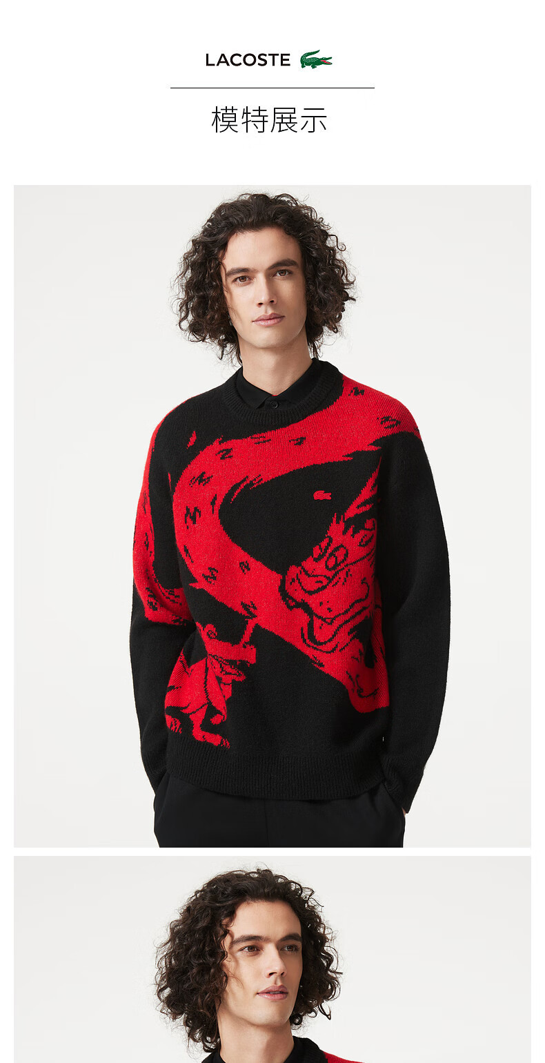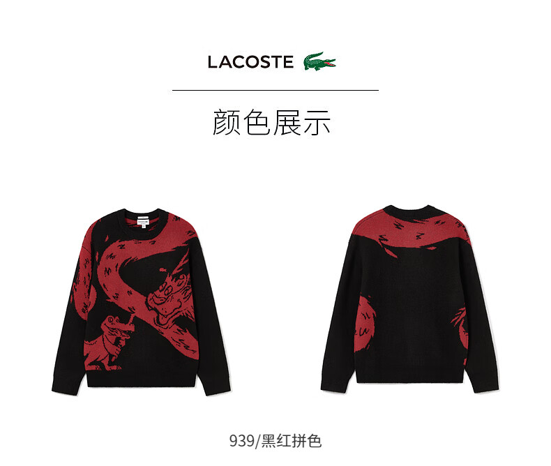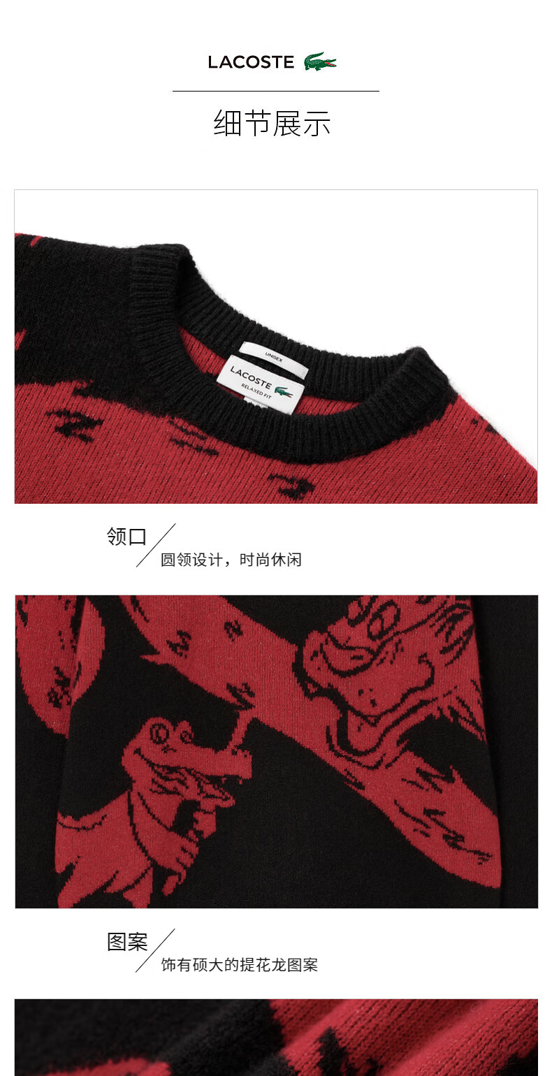 Lacoste法国鳄鱼新款龙年新春系列男女装时尚印花套头衫针织衫AH8266-98
