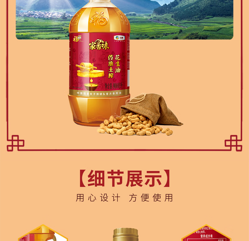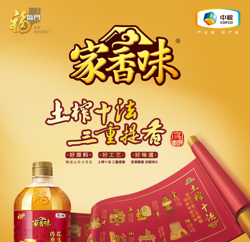福临门家香味传承土榨一级花生油900ML【有效期至2026年4月】