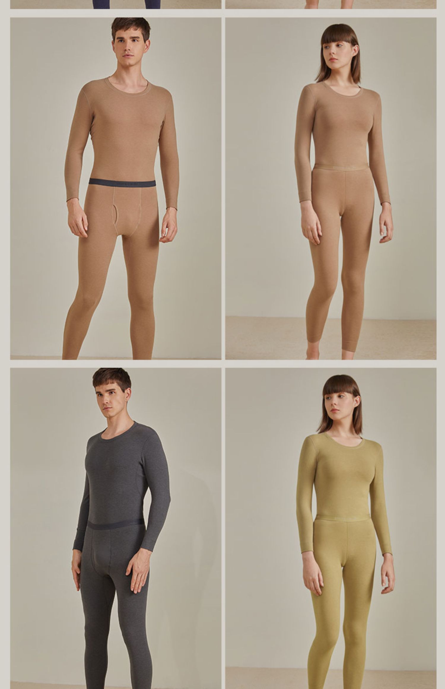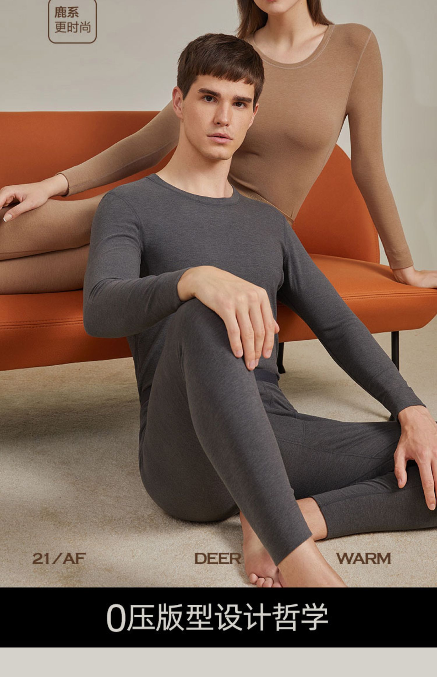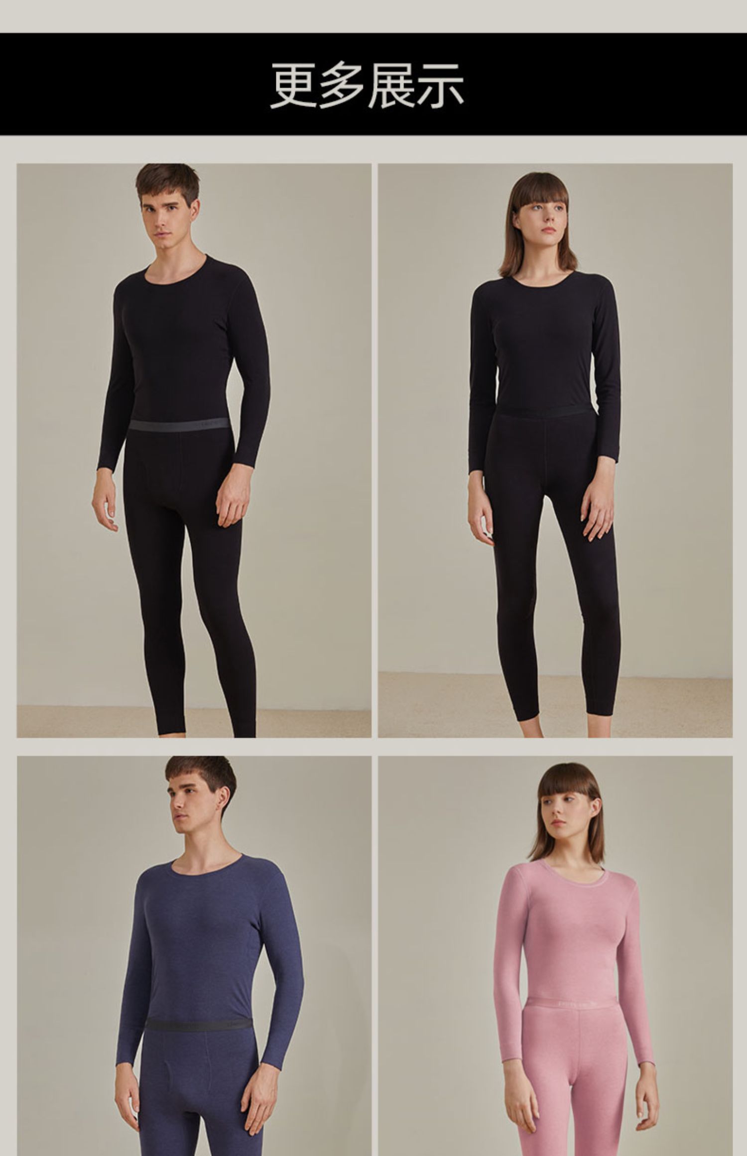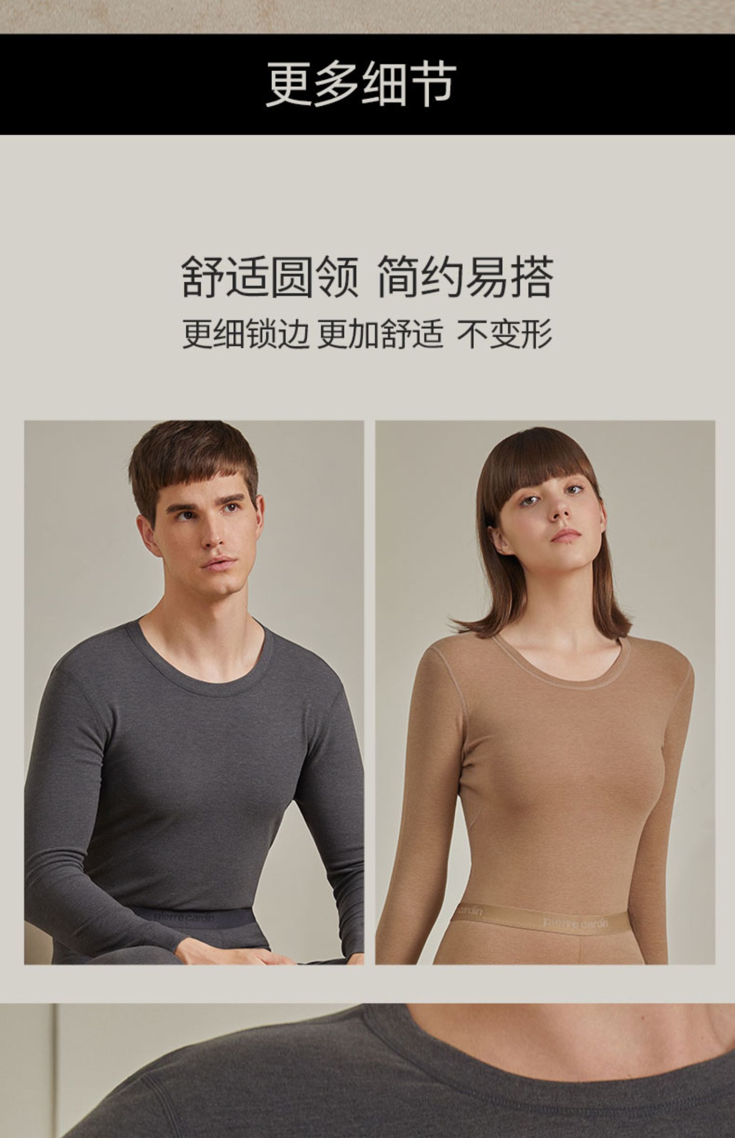 皮尔卡丹男女士保暖套装罗纹布保暖内衣秋衣秋裤圆领双面碳素磨绒WP374126/WP364126