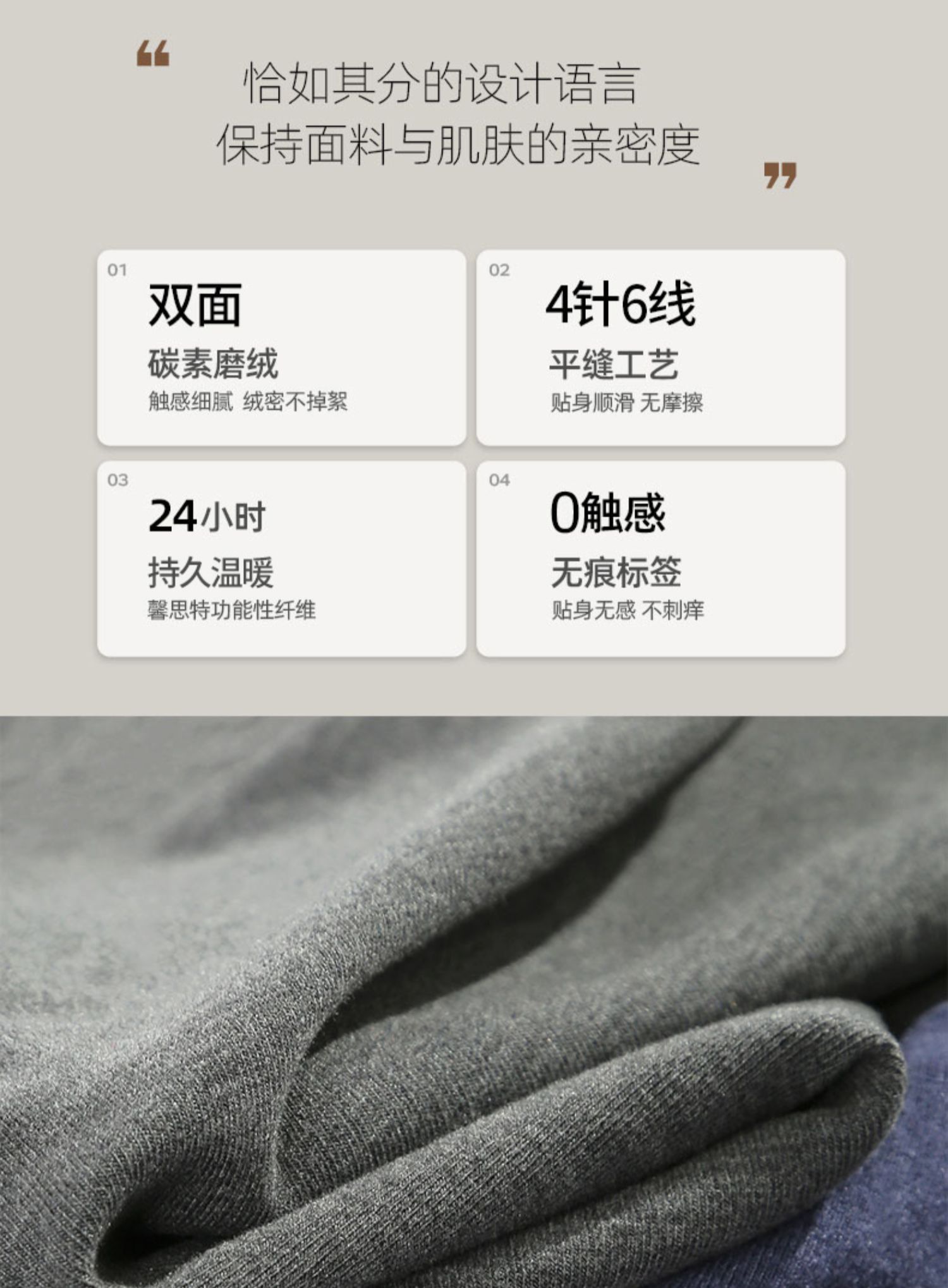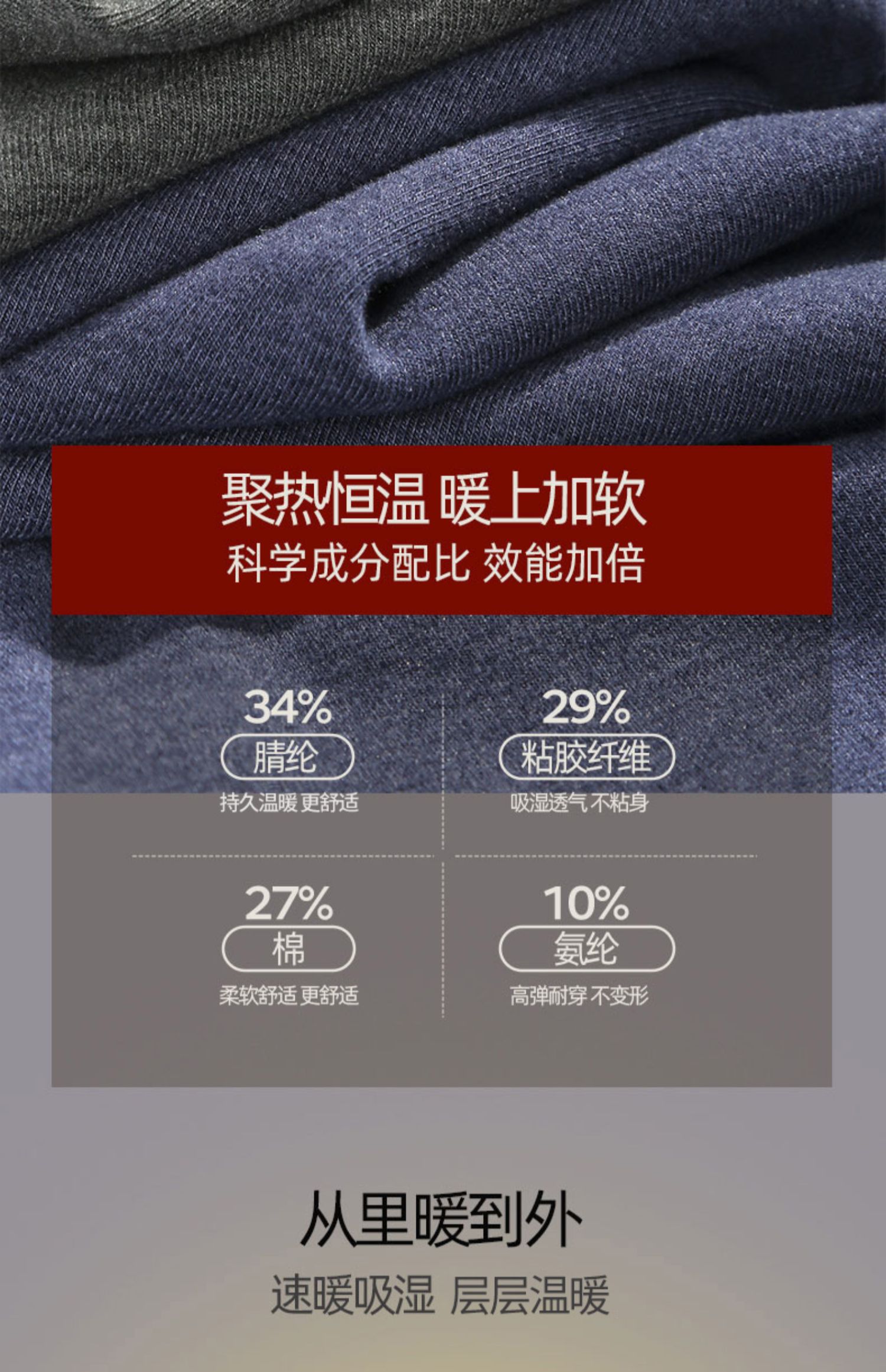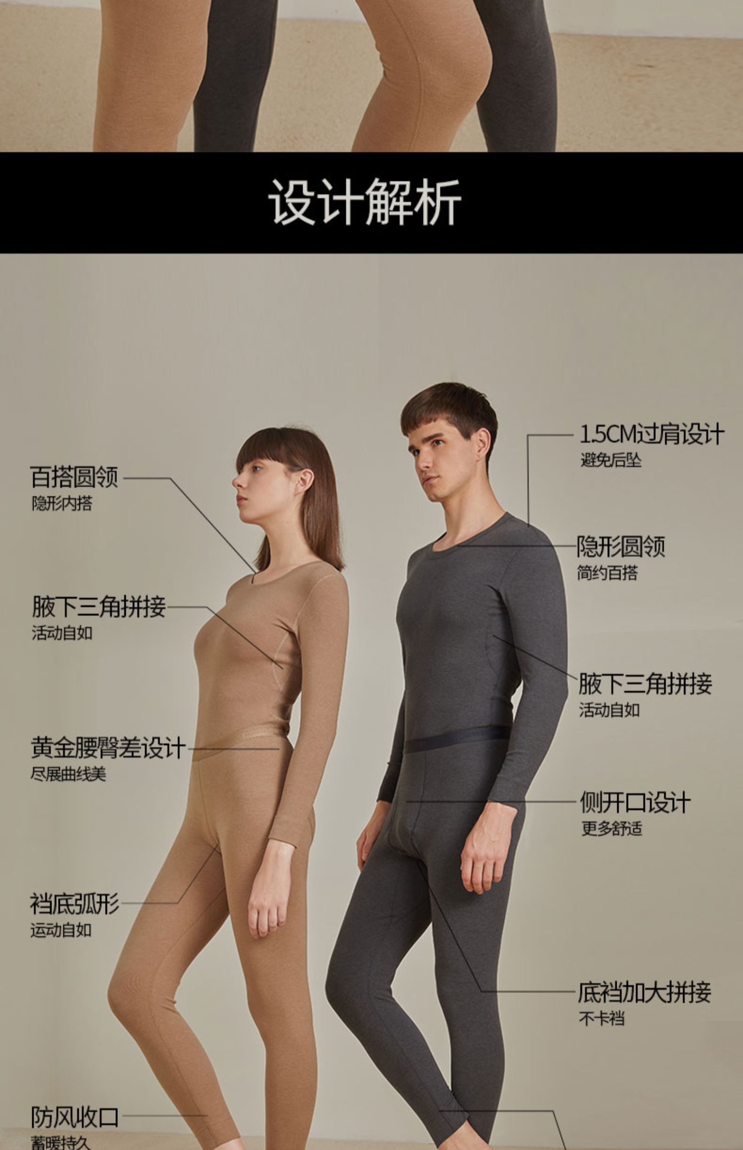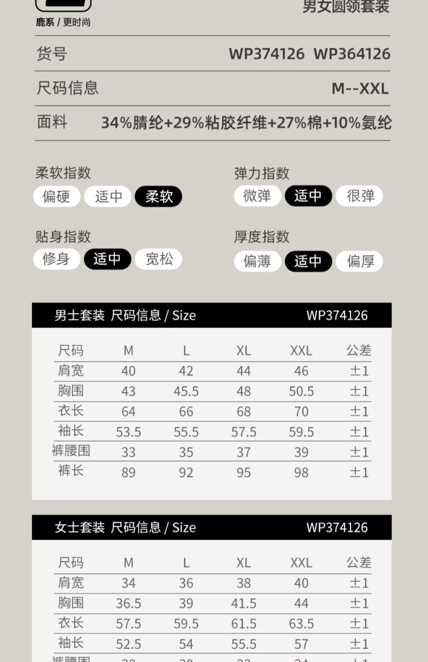 皮尔卡丹男女士保暖套装罗纹布保暖内衣秋衣秋裤圆领双面碳素磨绒WP374126/WP364126