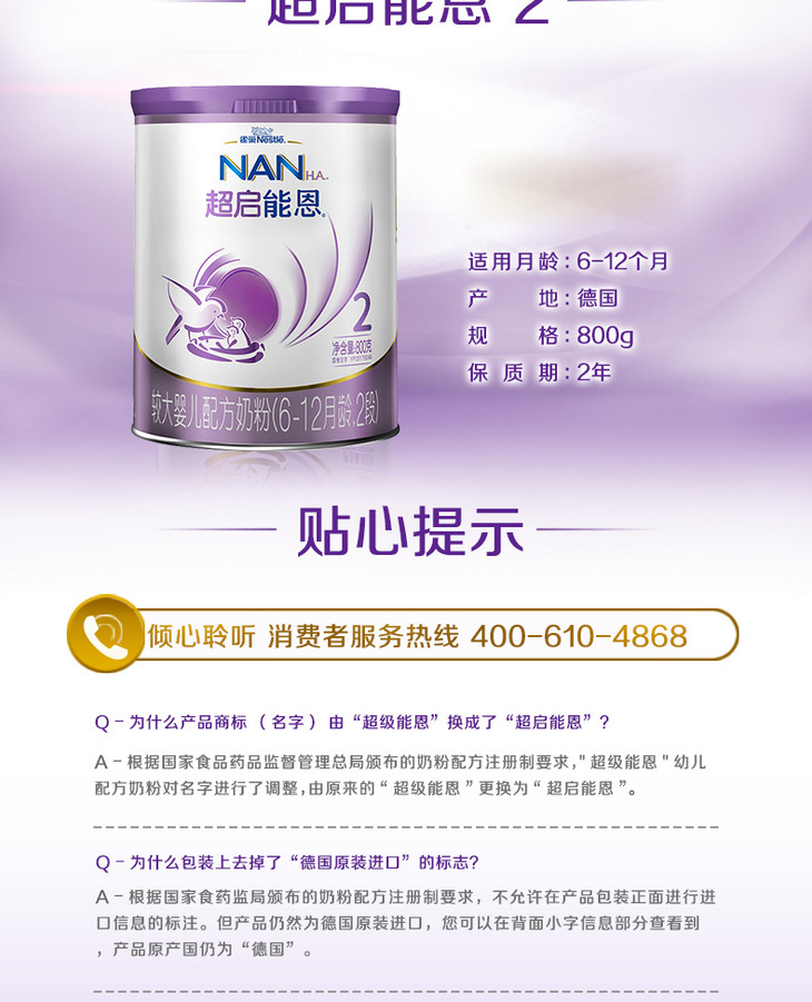 雀巢超启能恩2段800g