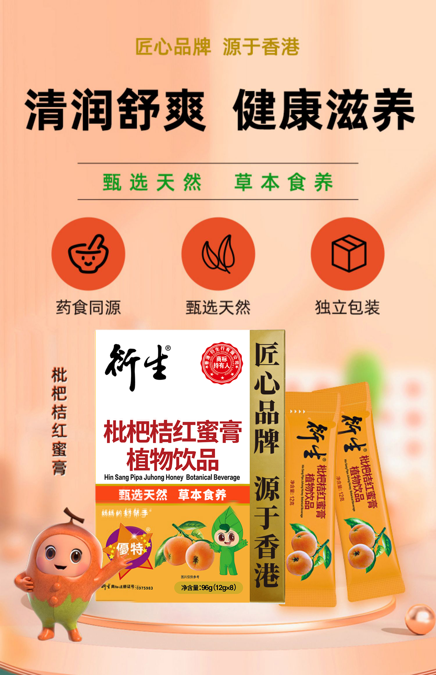 衍生枇杷桔红蜜膏植物饮品8包装