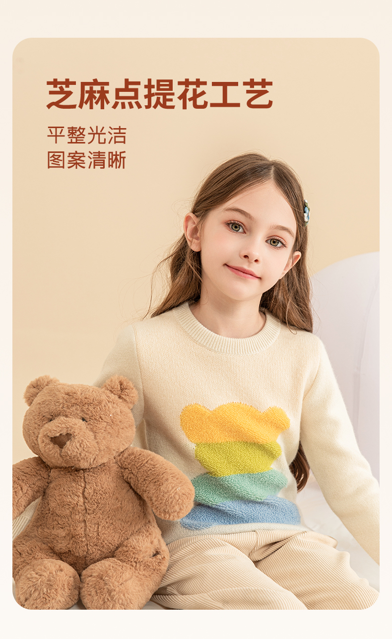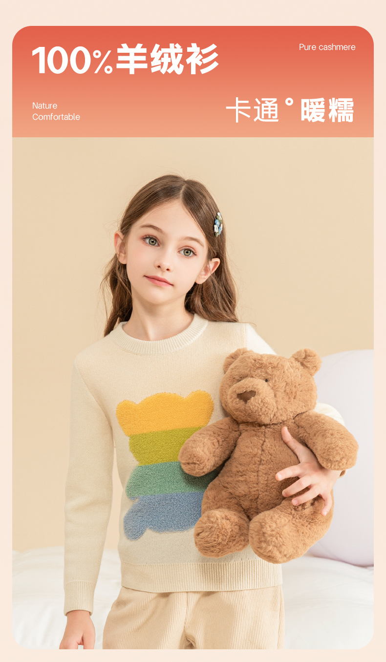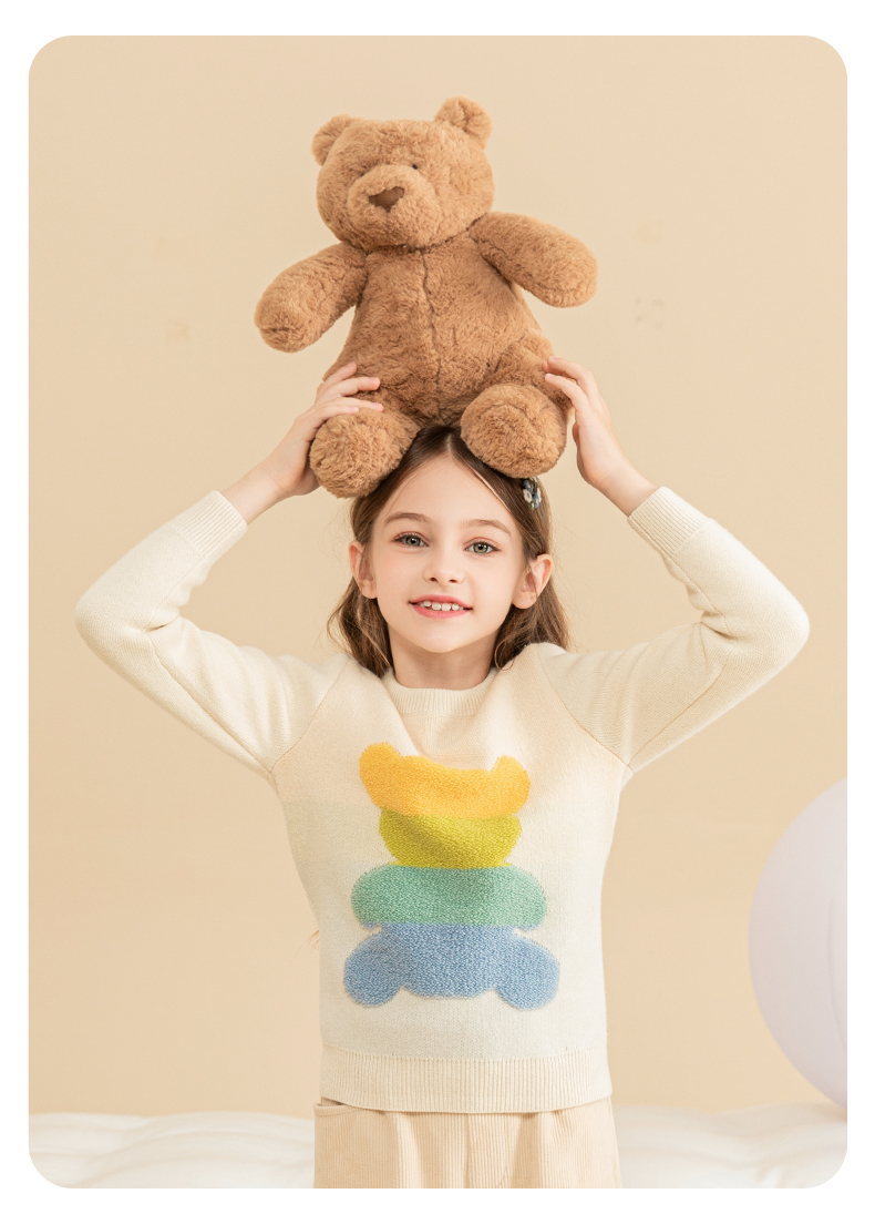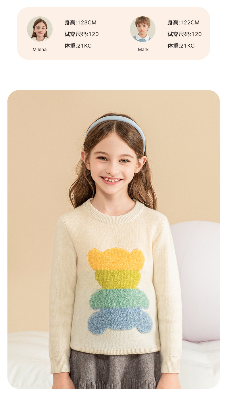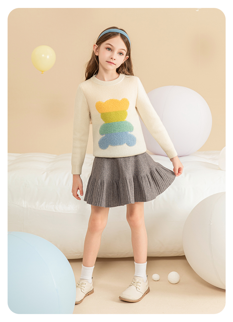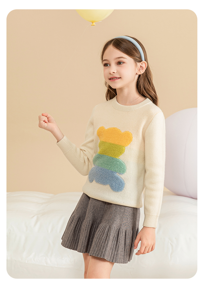 mettekids女童羊绒衫秋冬新款儿童加厚毛衣中大童卡通小熊针织衫