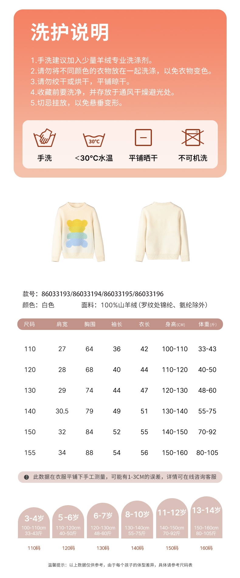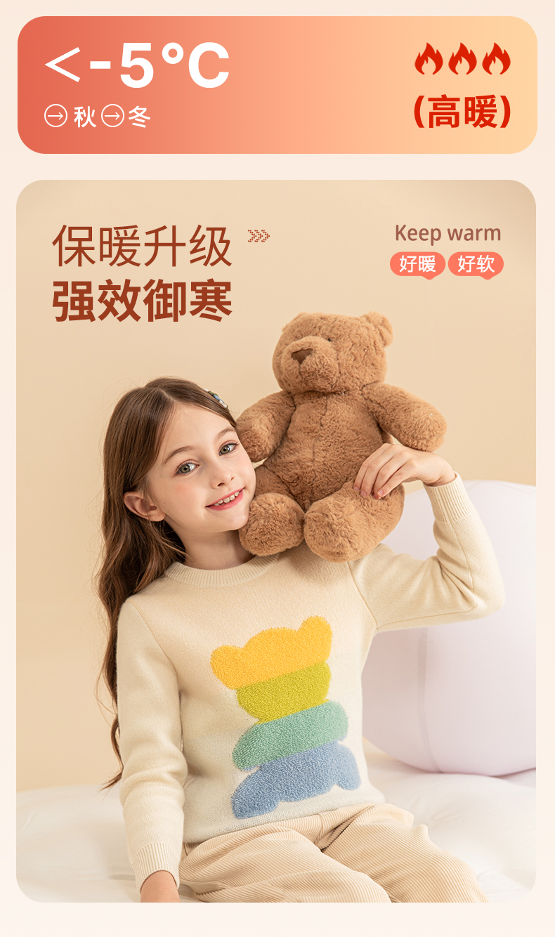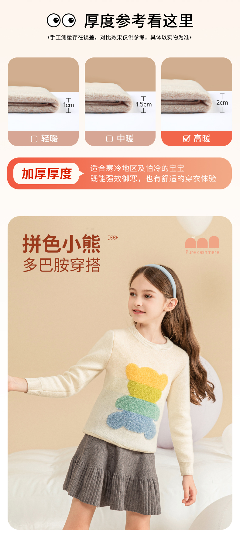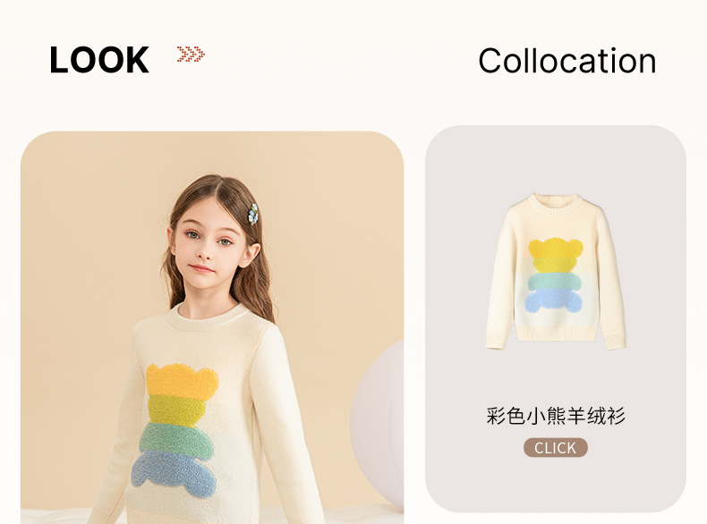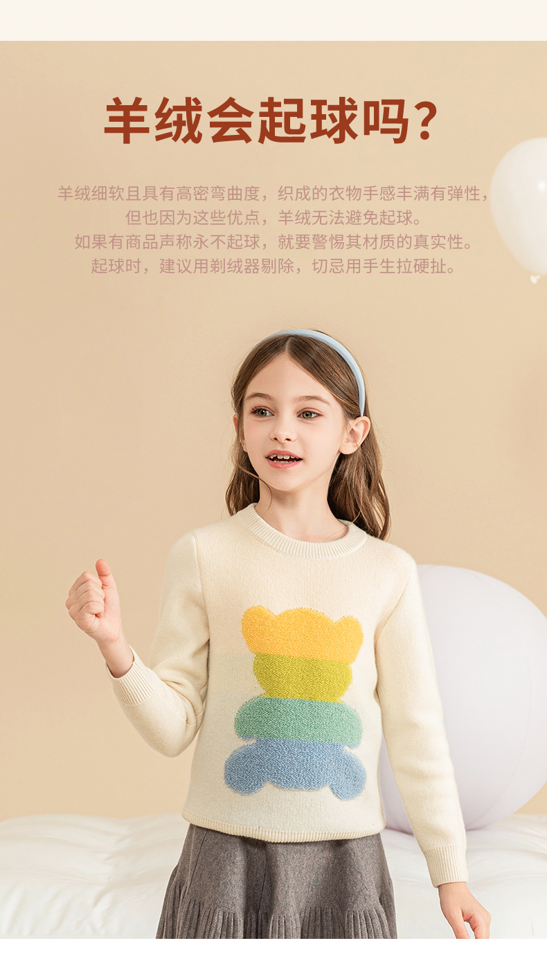 mettekids女童羊绒衫秋冬新款儿童加厚毛衣中大童卡通小熊针织衫