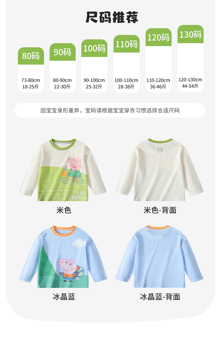 【80-130】【小猪佩奇】男童春秋长袖佩奇T恤