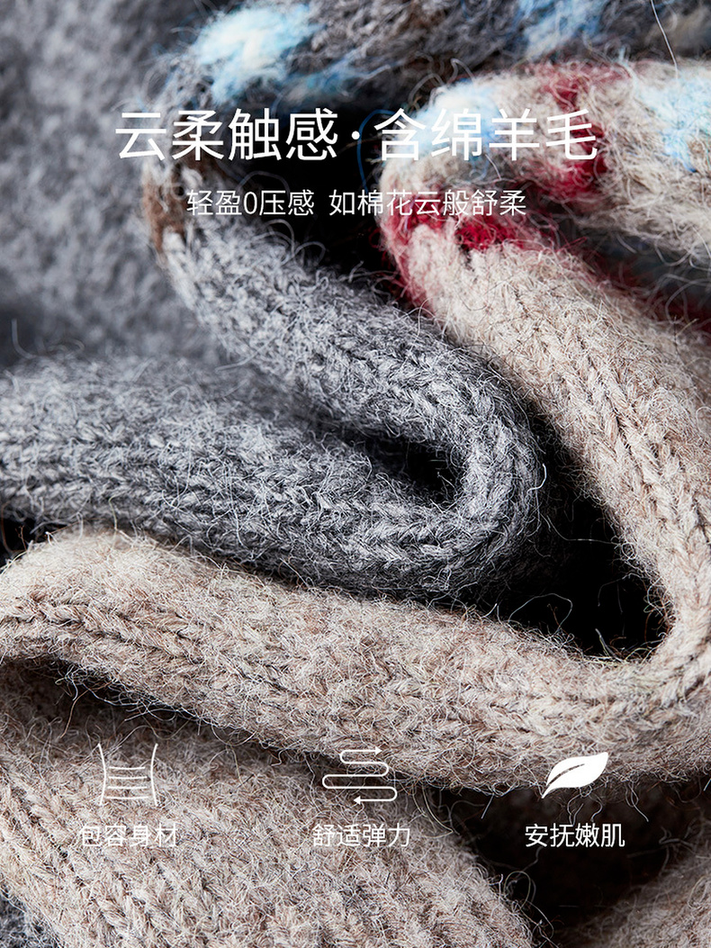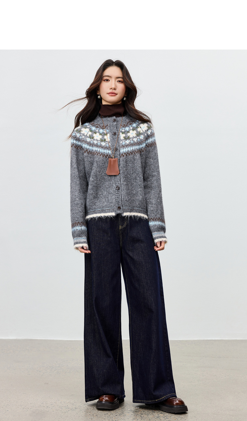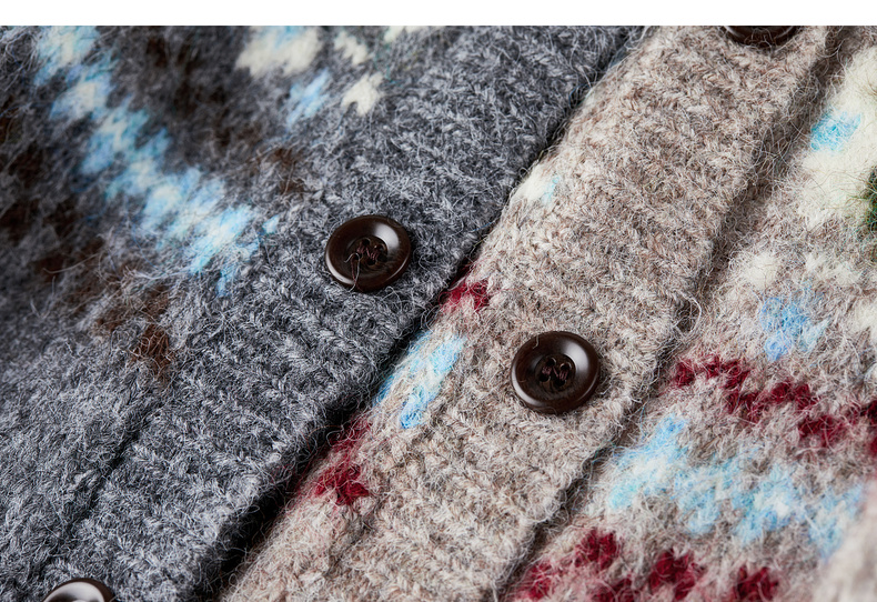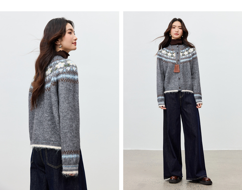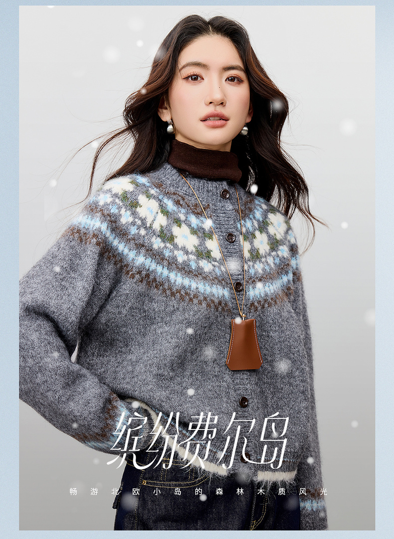 【内购】【费尔岛提花图案】圆领单排扣插肩袖含绵羊毛软糯弹力开衫毛衣-W54EB3649