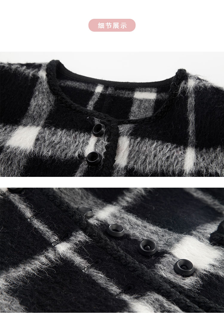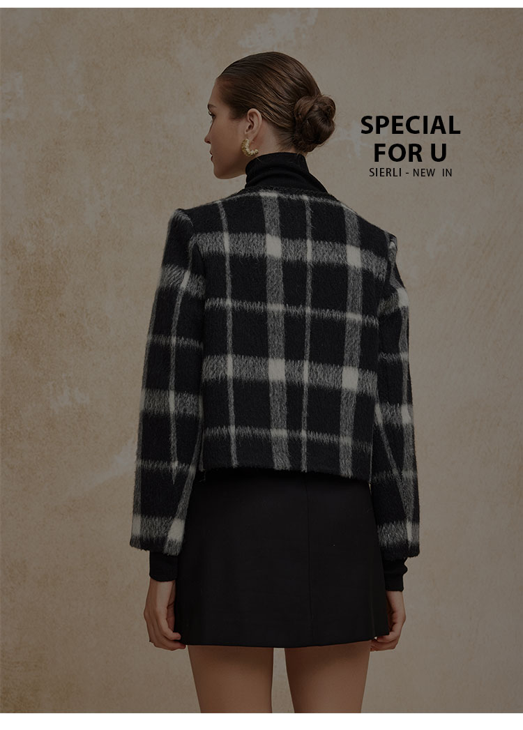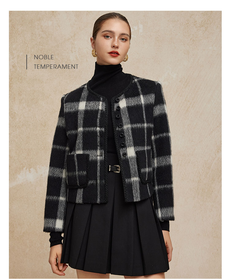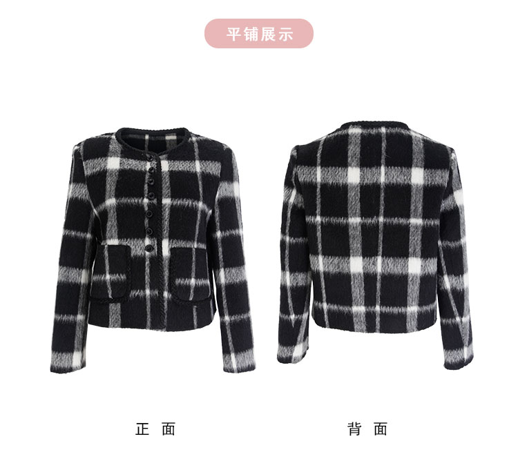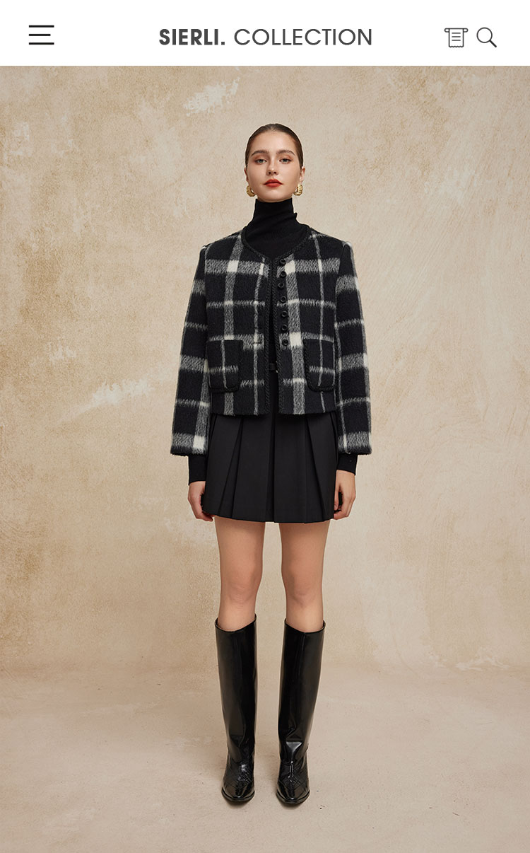 PH949斯尔丽24新款小香风格子时尚减龄小个子显瘦双面呢羊毛短大衣