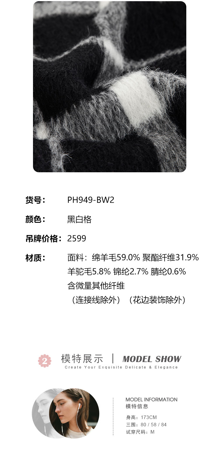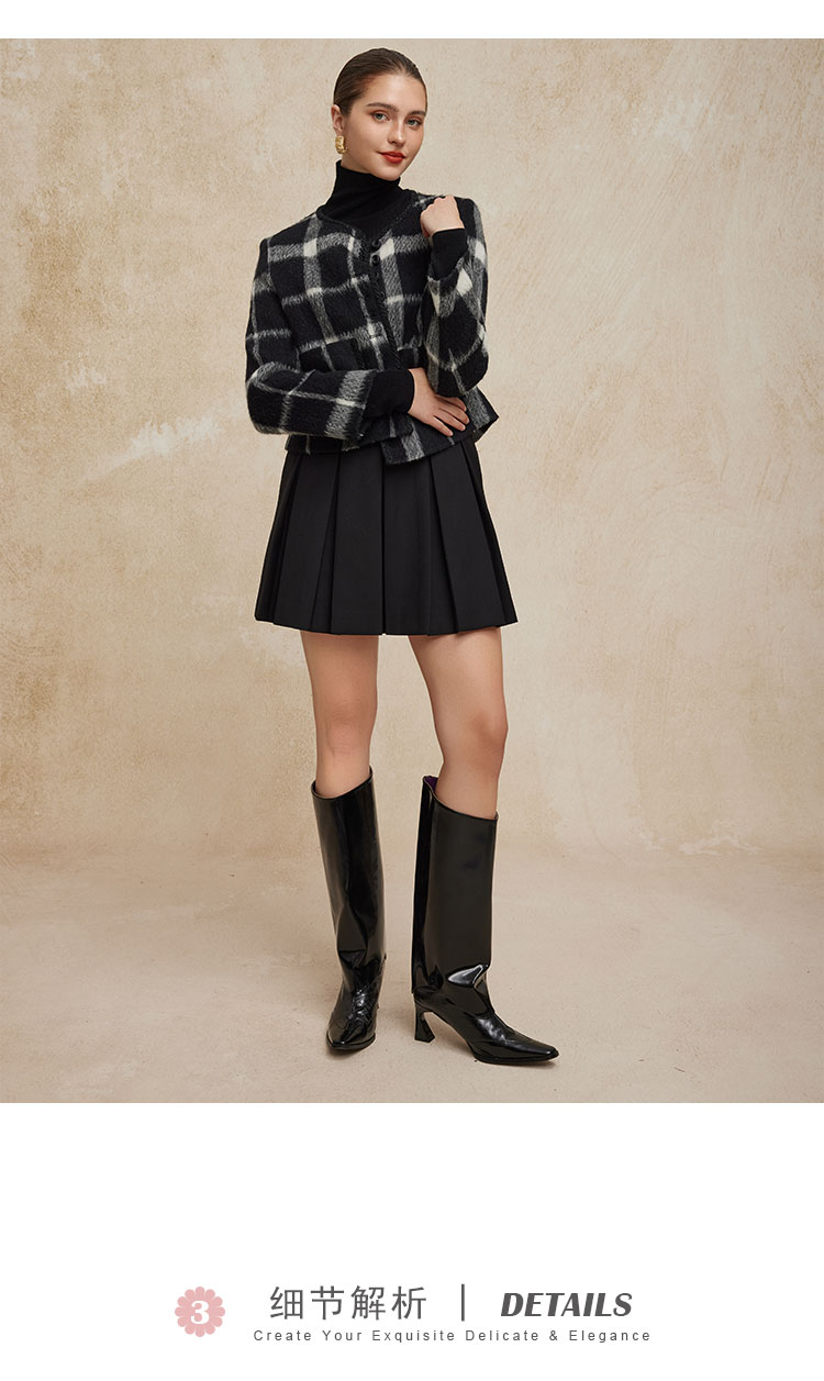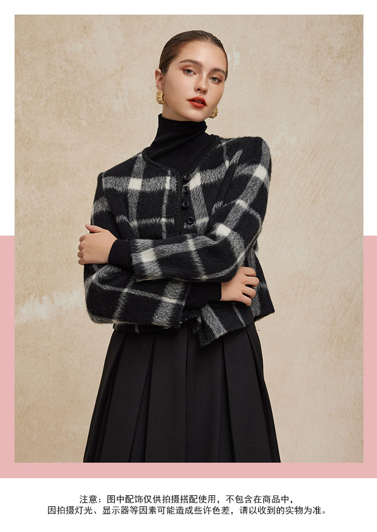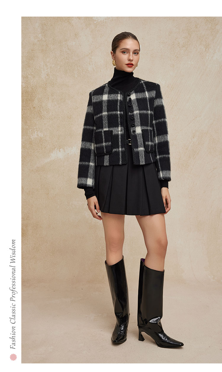PH949斯尔丽24新款小香风格子时尚减龄小个子显瘦双面呢羊毛短大衣