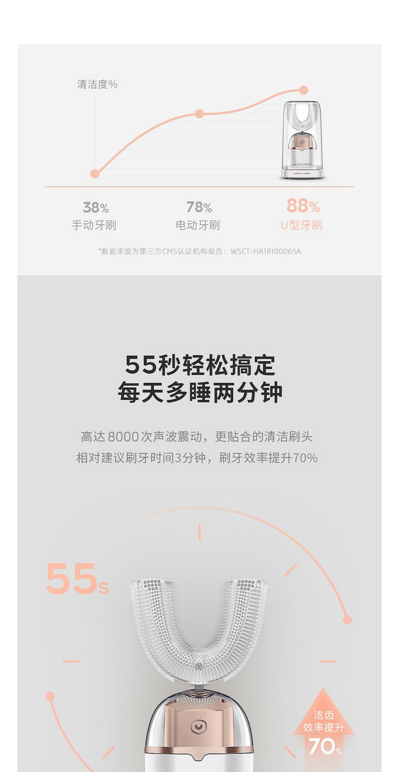 深爱懒人全自动U型电动牙刷成人男女情侣充电式声波美白洁牙神器