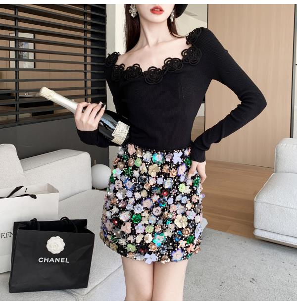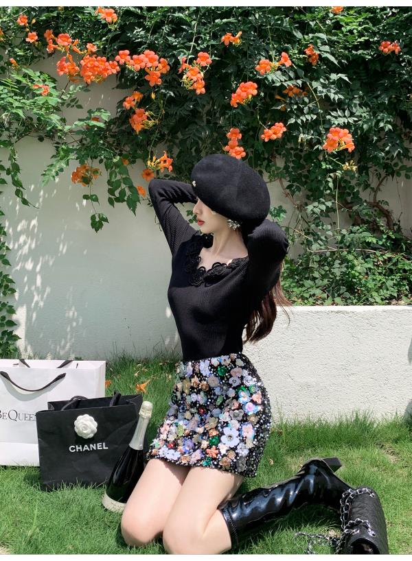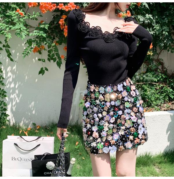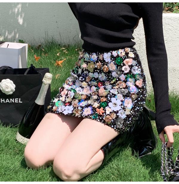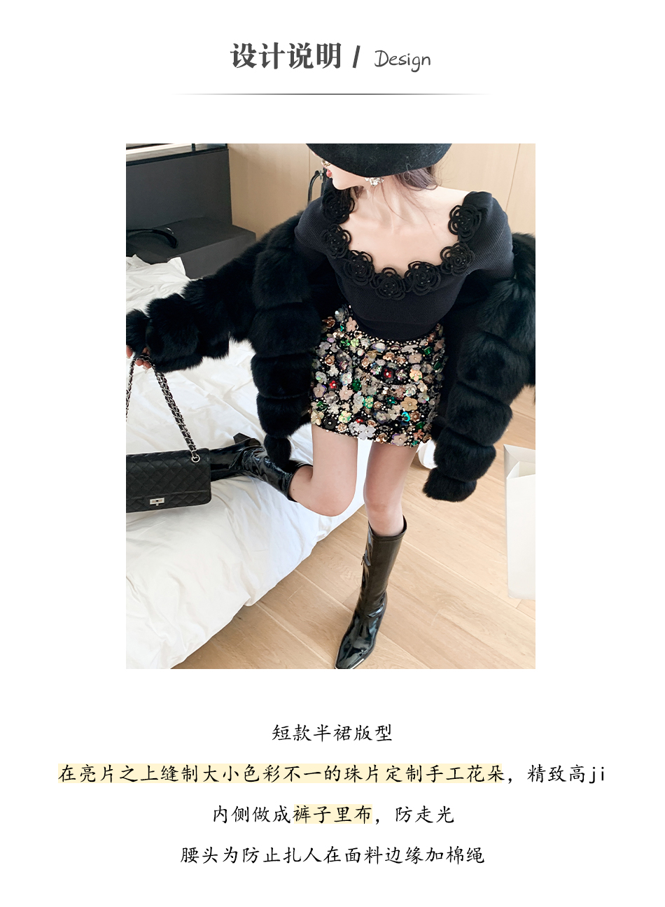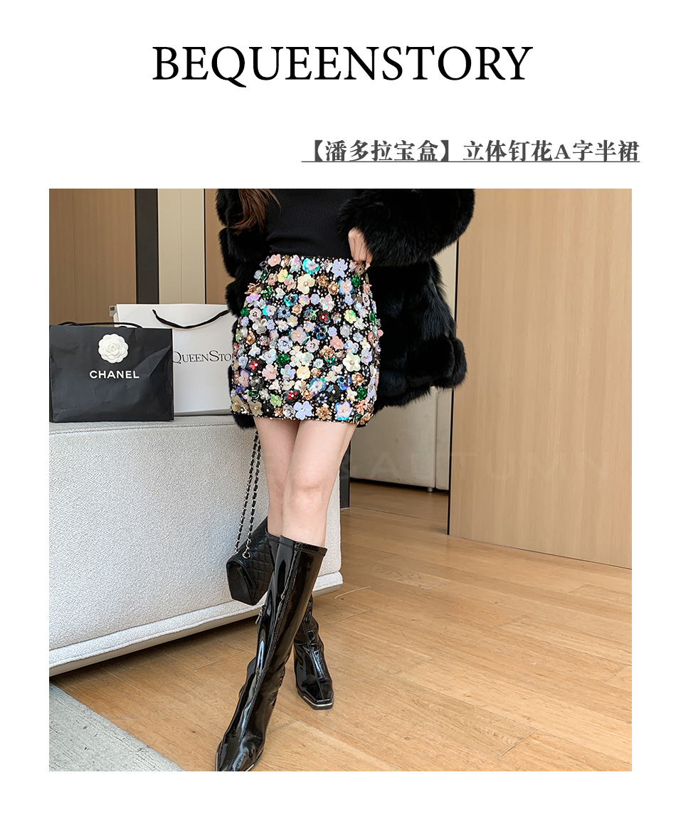 BeQueenStory【潘多拉宝盒】洋气立体钉花时尚设计感短款a字半身裙