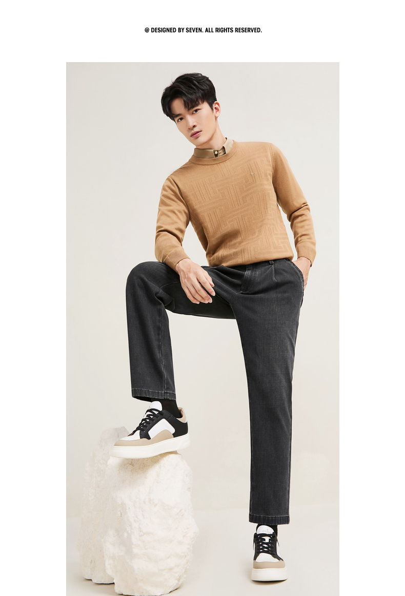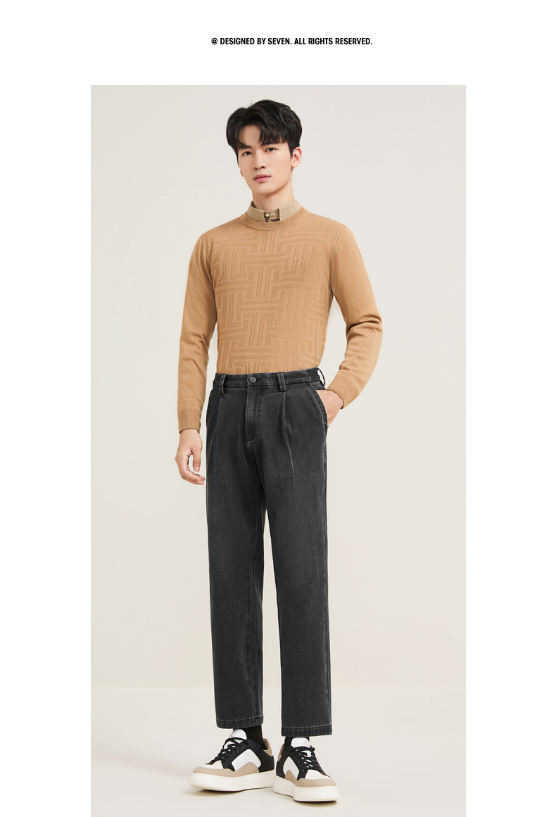【九分牛仔裤】柒牌牛仔长裤秋季新款中青年宽松休闲直筒裤子男裤129H73700