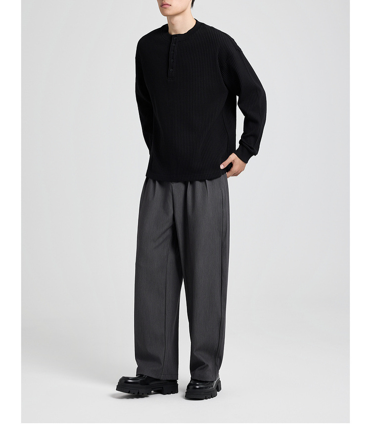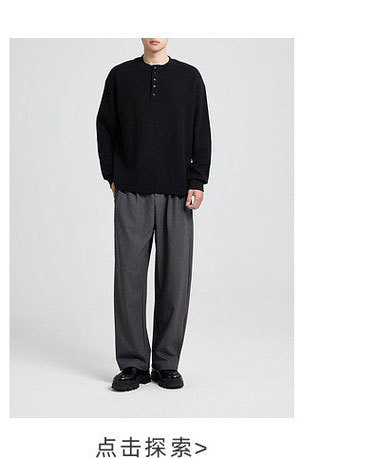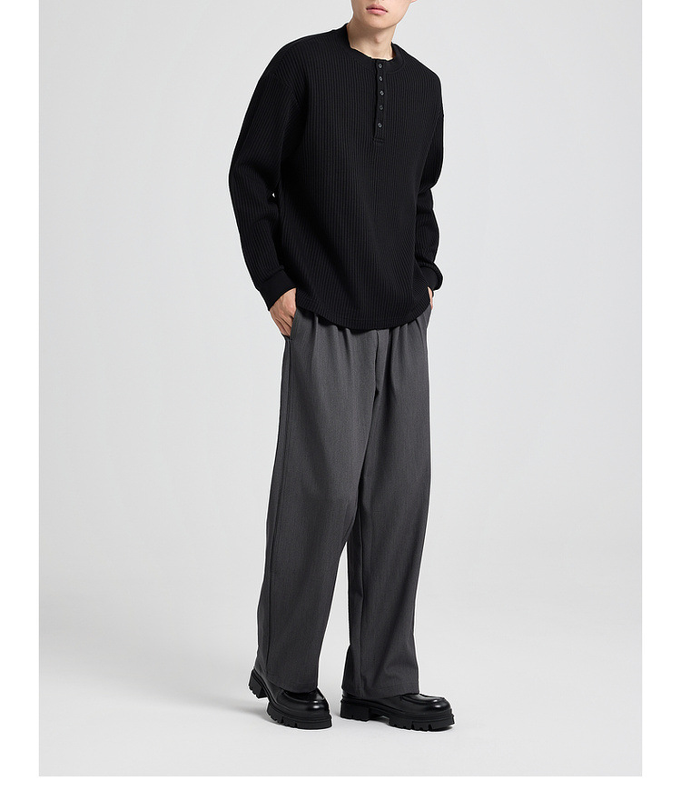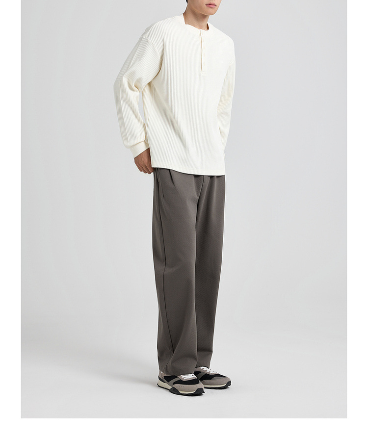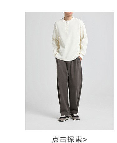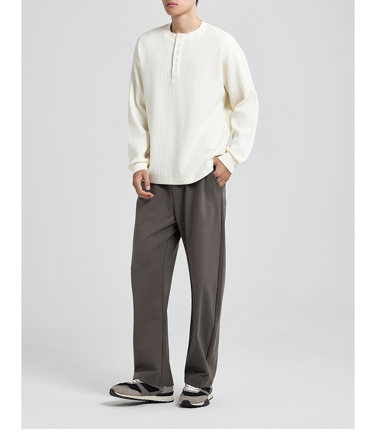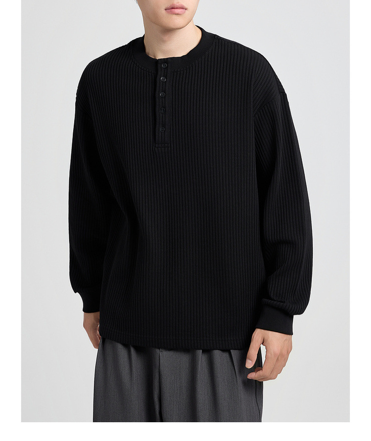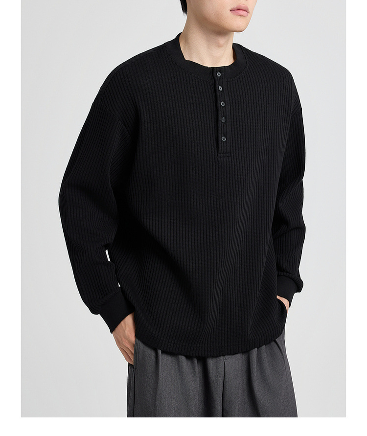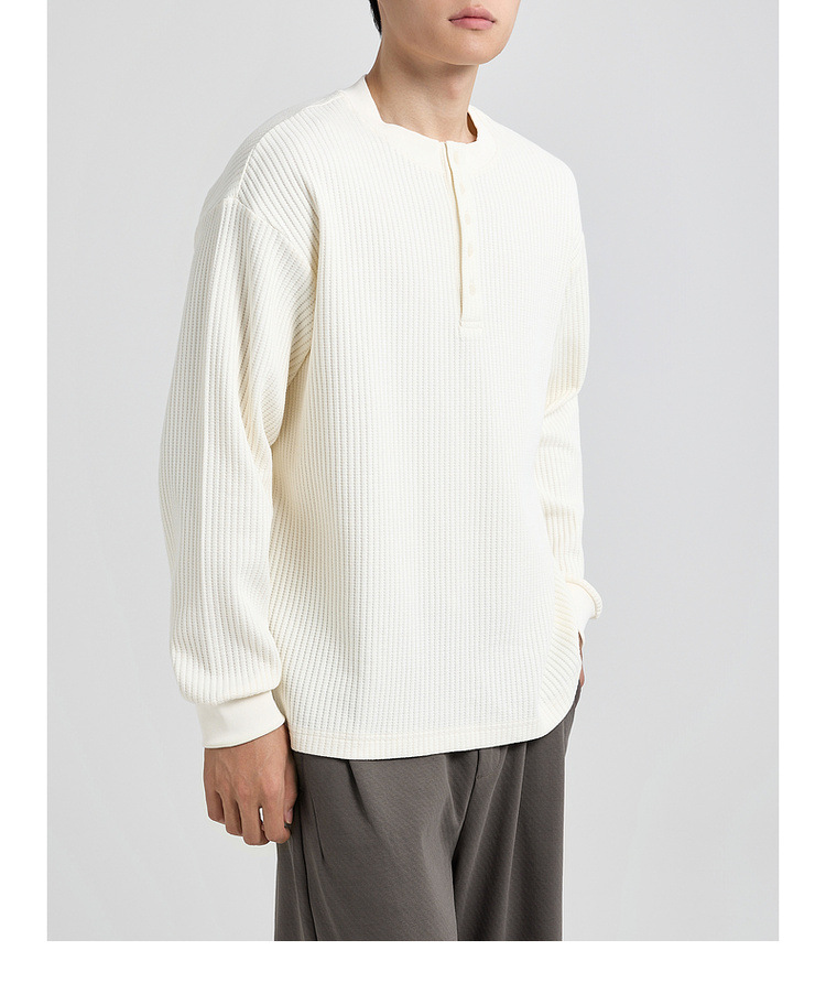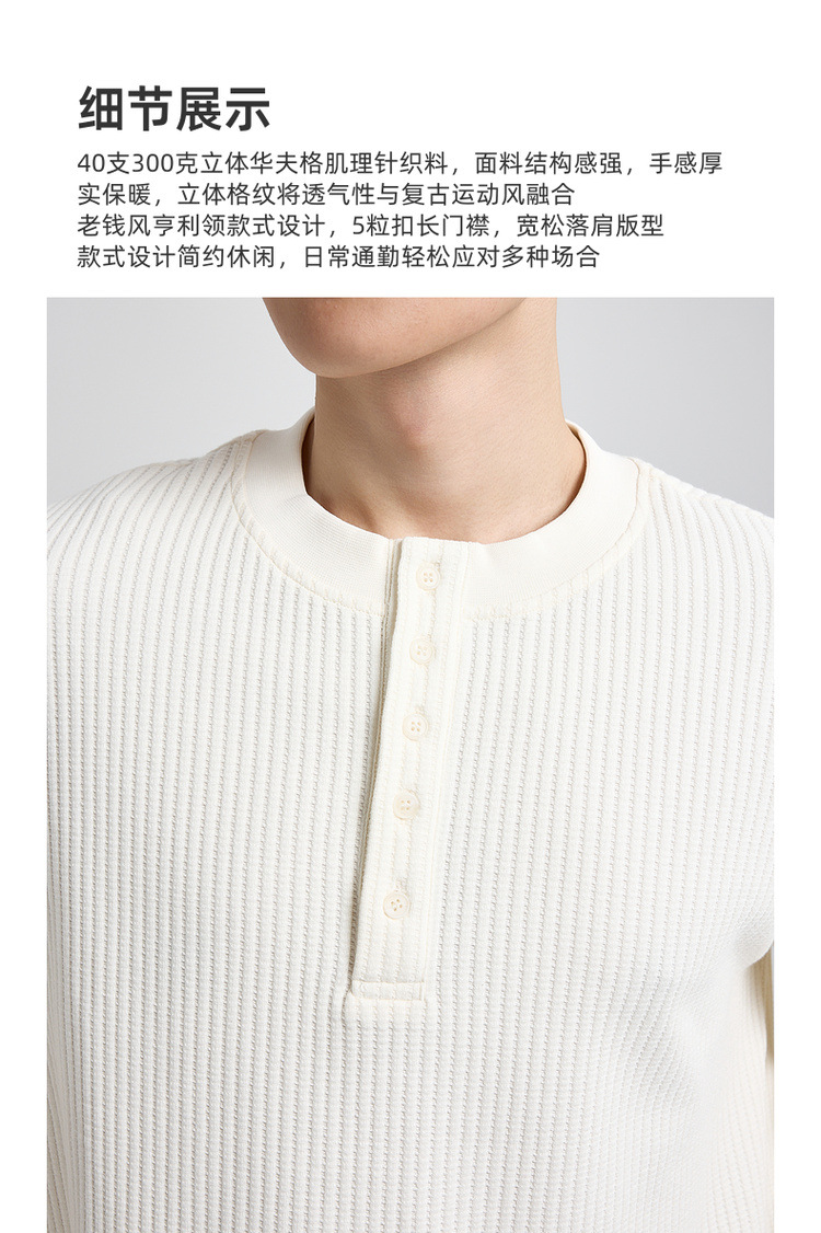 墨麦客男装老钱风亨利领卫衣男2025秋款华夫格肌理男士卫衣55841