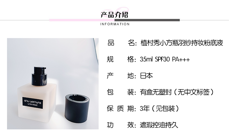 【授权商品】shu uemura植村秀新品小方瓶羽纱持妆粉底液王一博同款