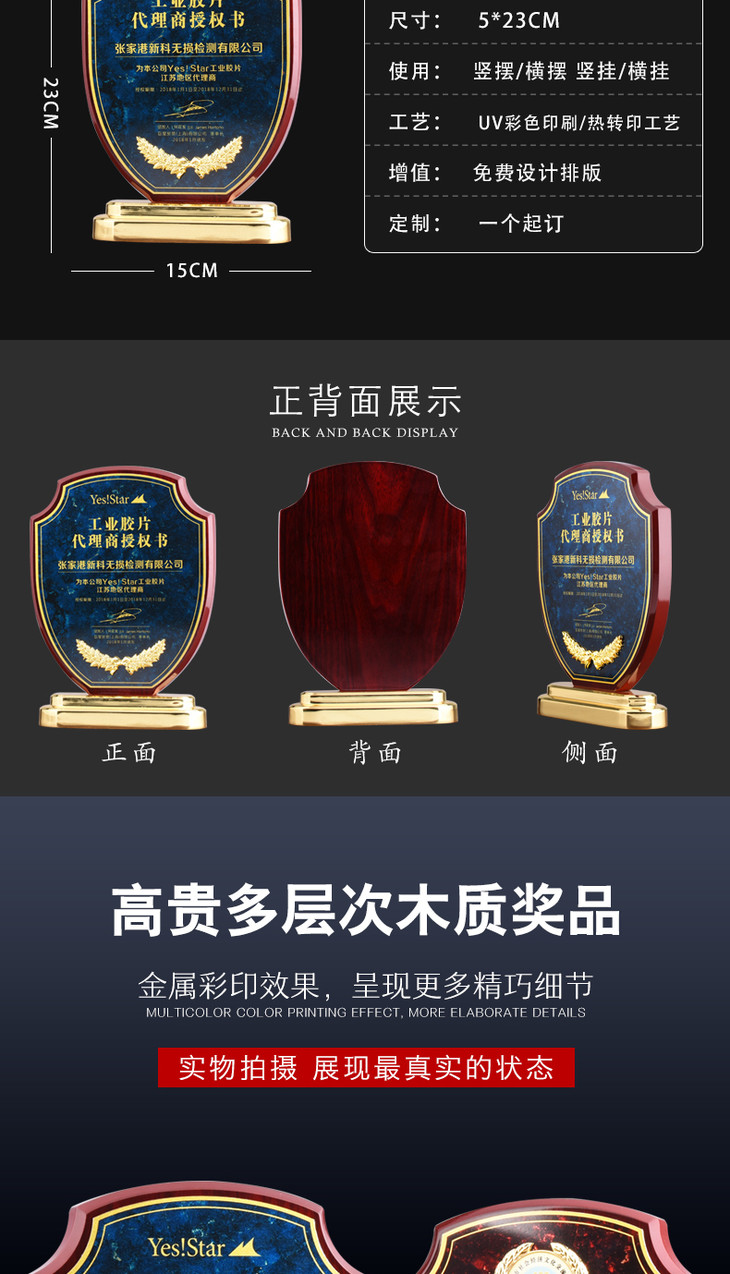 木质奖牌定制定做代理加盟经销仿木授权牌证书荣誉证书牌匾制作