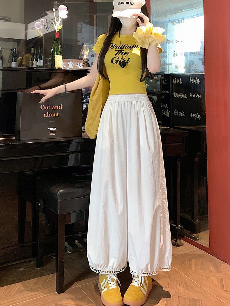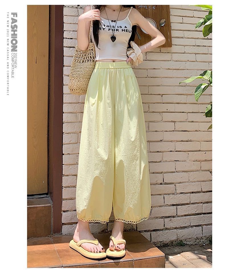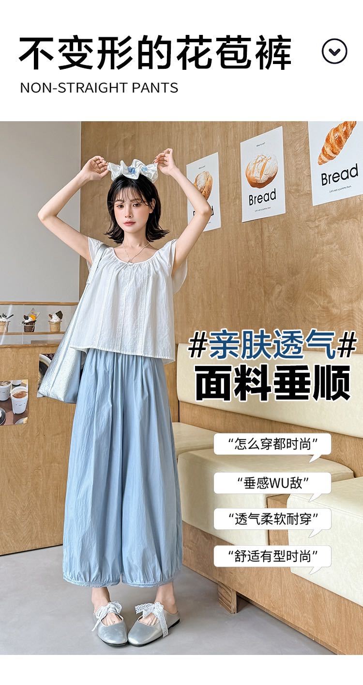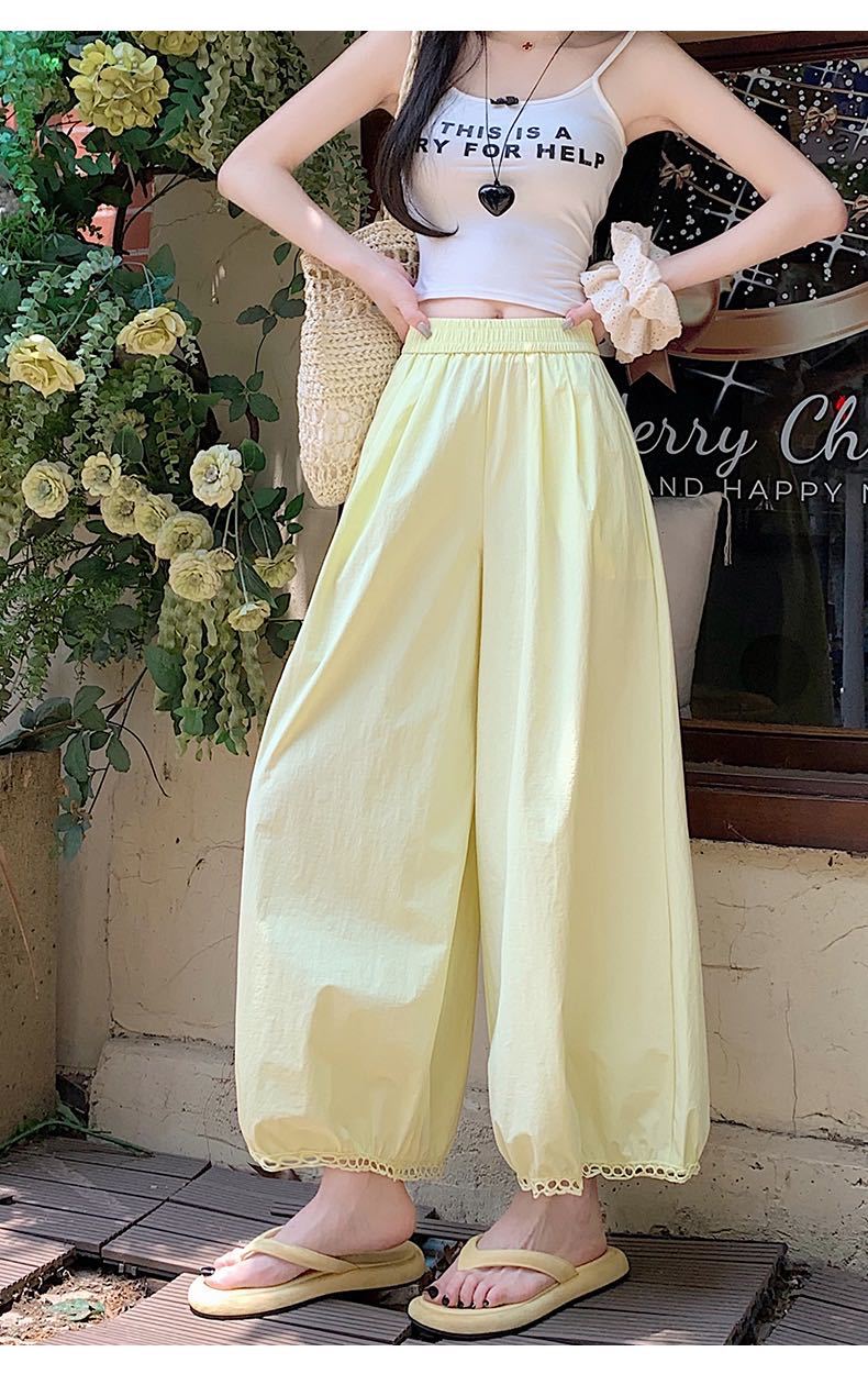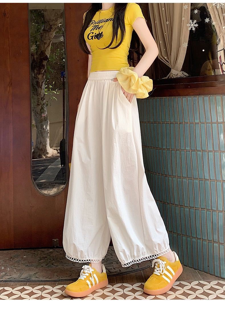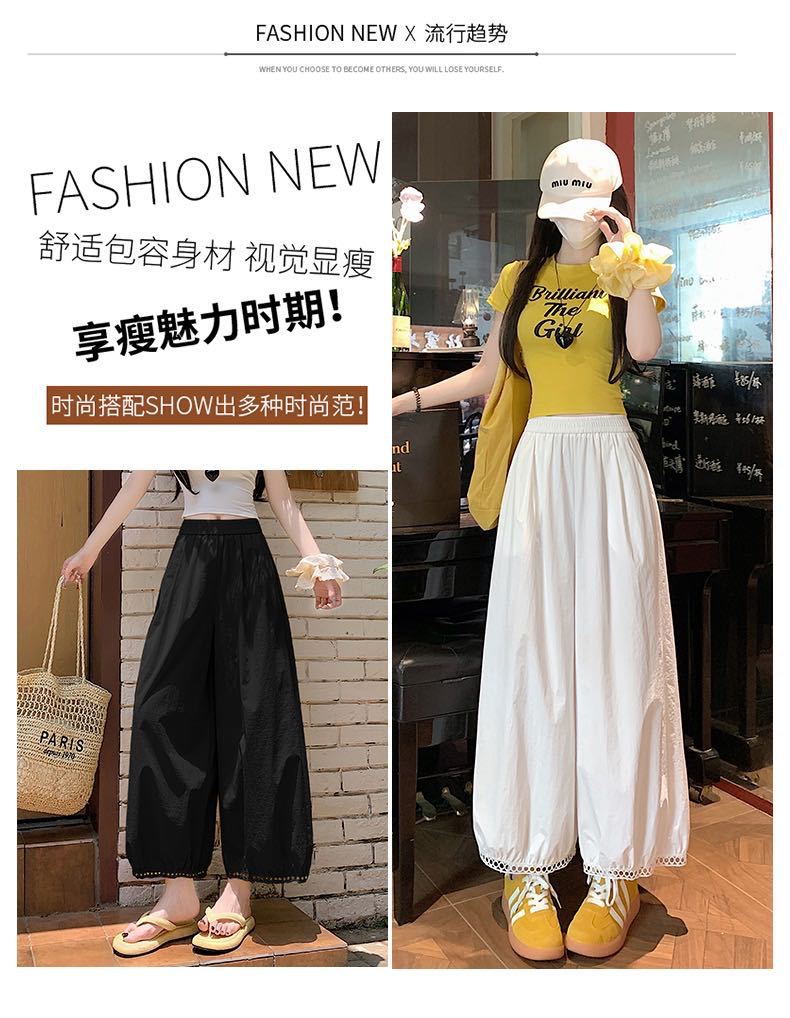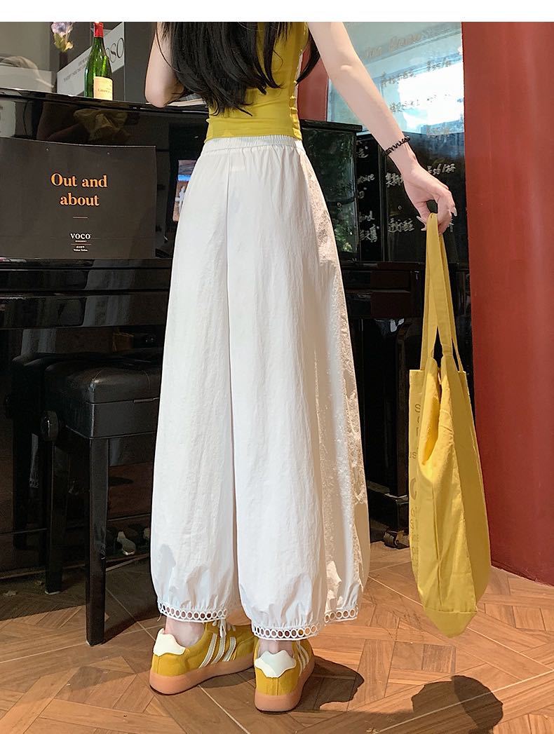 蕾丝镂空花苞阔腿裤 蕾丝花边设计感灯笼裤女2025新款高腰显瘦显高阔腿裤小个子九分裤